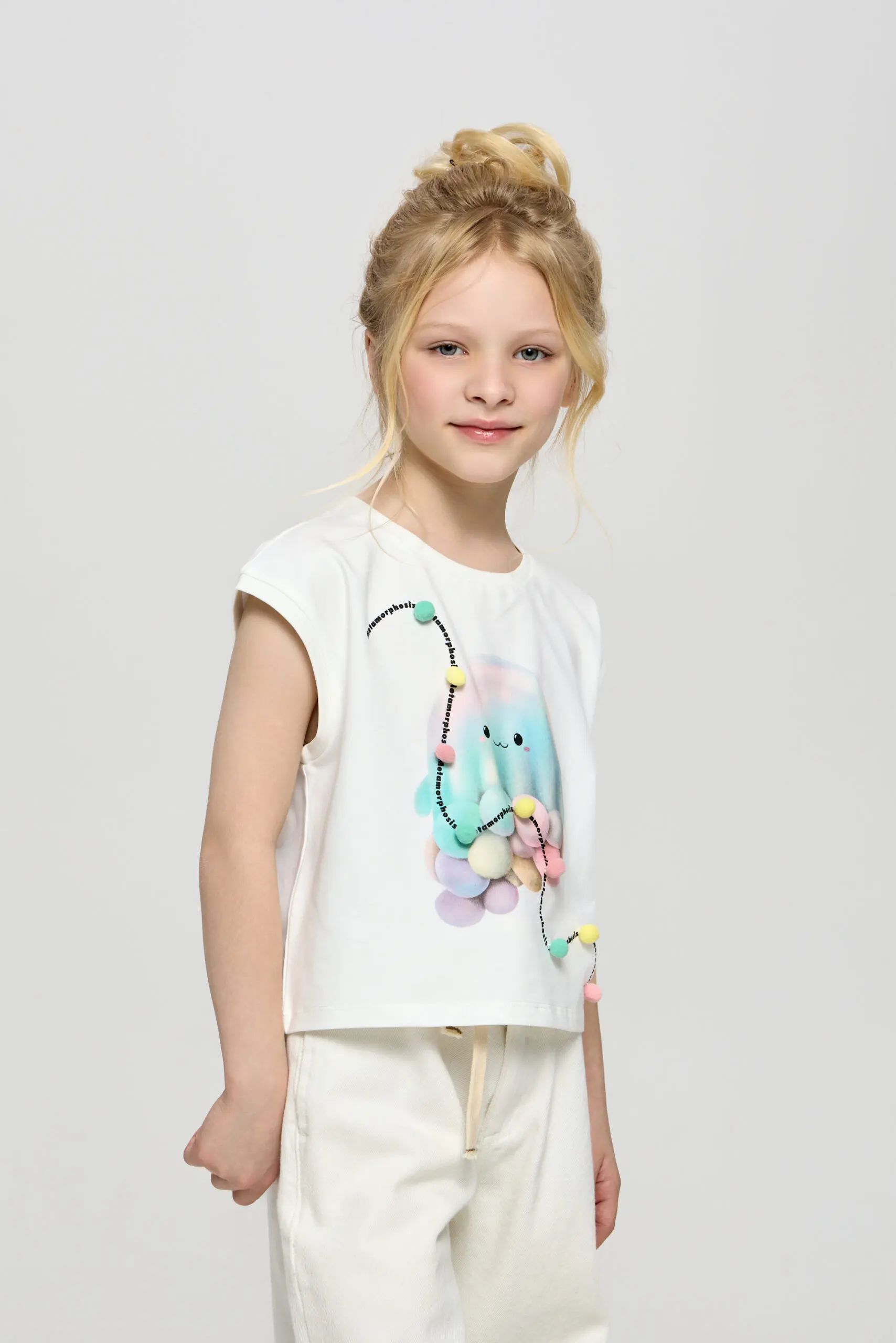Футболка с ярким и забавным принтом - это идеальный выбор для создания яркого и стильного образа. Свободный крой и короткие рукава делают эту футболку отличным вариантом ... для теплой летней погоды. Оригинальный дизайнерский принт добавляет модели уникальности. Благодаря своему универсальному дизайну, футболка легко сочетается с различными элементами гардероба, такими как джинсы, шорты, юбки или леггинсы. Это позволяет создавать разнообразные и интересные образы.