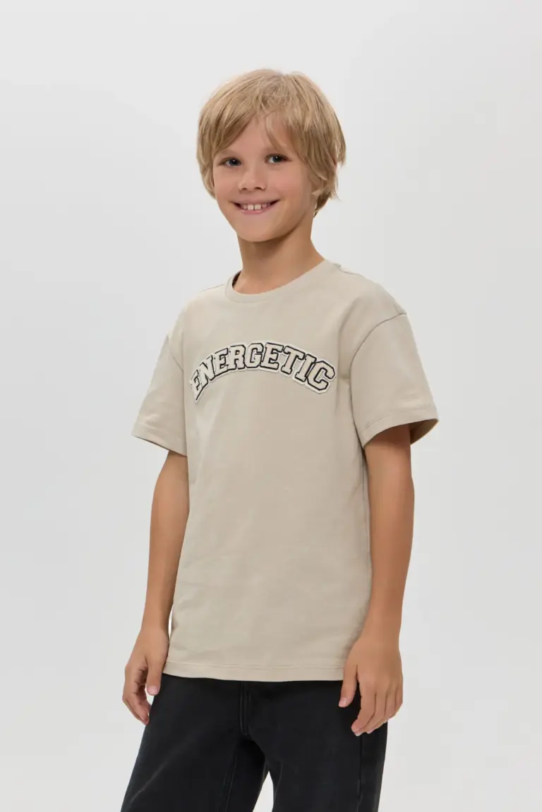 Детская футболка в молочном цвете — идеальный выбор для маленьких модников! Футболка имеет классический круглый вырез горловины, что делает её удобной для детей. Короткие рукава обеспечивают ... хорошую вентиляцию и подходят для теплой погоды, позволяя ребенку чувствовать себя комфортно во время активных игр. Основным акцентом модели является текстовый принт. Молочный цвет футболки делает её универсальной: она отлично сочетается с различными брюками и шортами.
