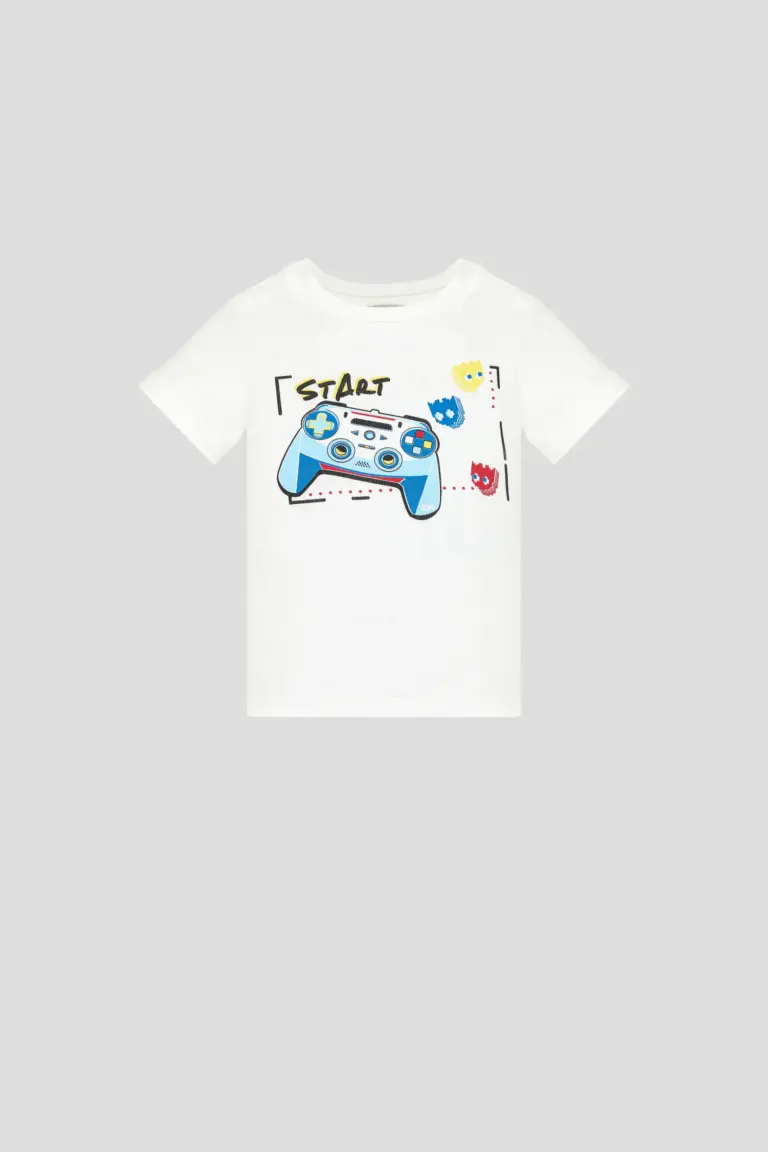 Оригинальная футболка для мальчика отличается оригинальным рисунком и выполнена в универсальном белом цвете, что позволяет легко сочетать ее с разными стилями. Выразительный и интересный принт делает ... эту вещь уникальной и привлекающей внимание. Свободный прямой крой не сковывает движения и дарит ощущение комфорта. Практичная застежка с кнопками на плече упрощает процесс переодевания. Короткий рукав идеален для теплой погоды и обеспечивает дополнительный комфорт. Футболка сшита из мягкого, дышащего хлопкового материала, который отлично впитывает влагу и приятен к телу.