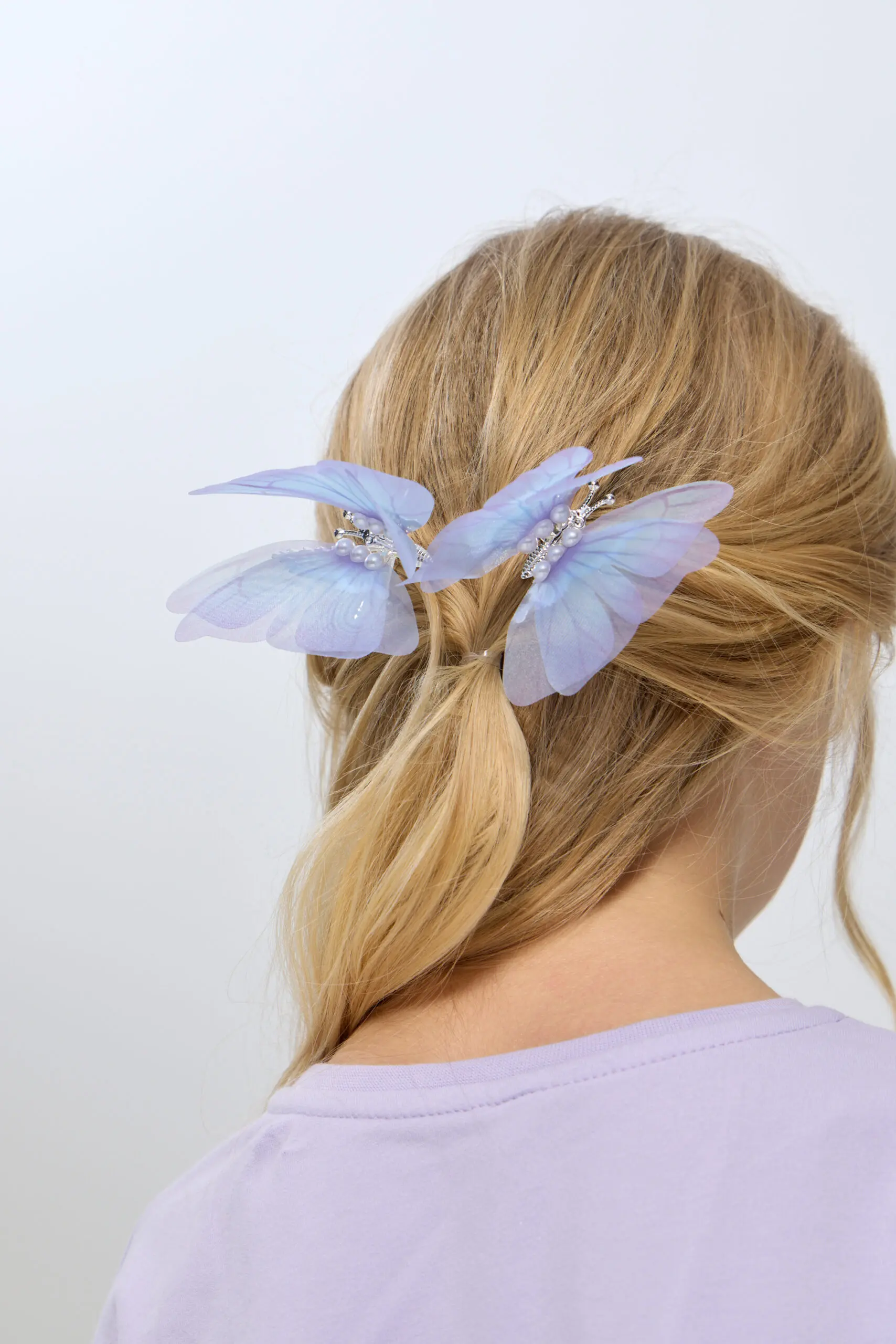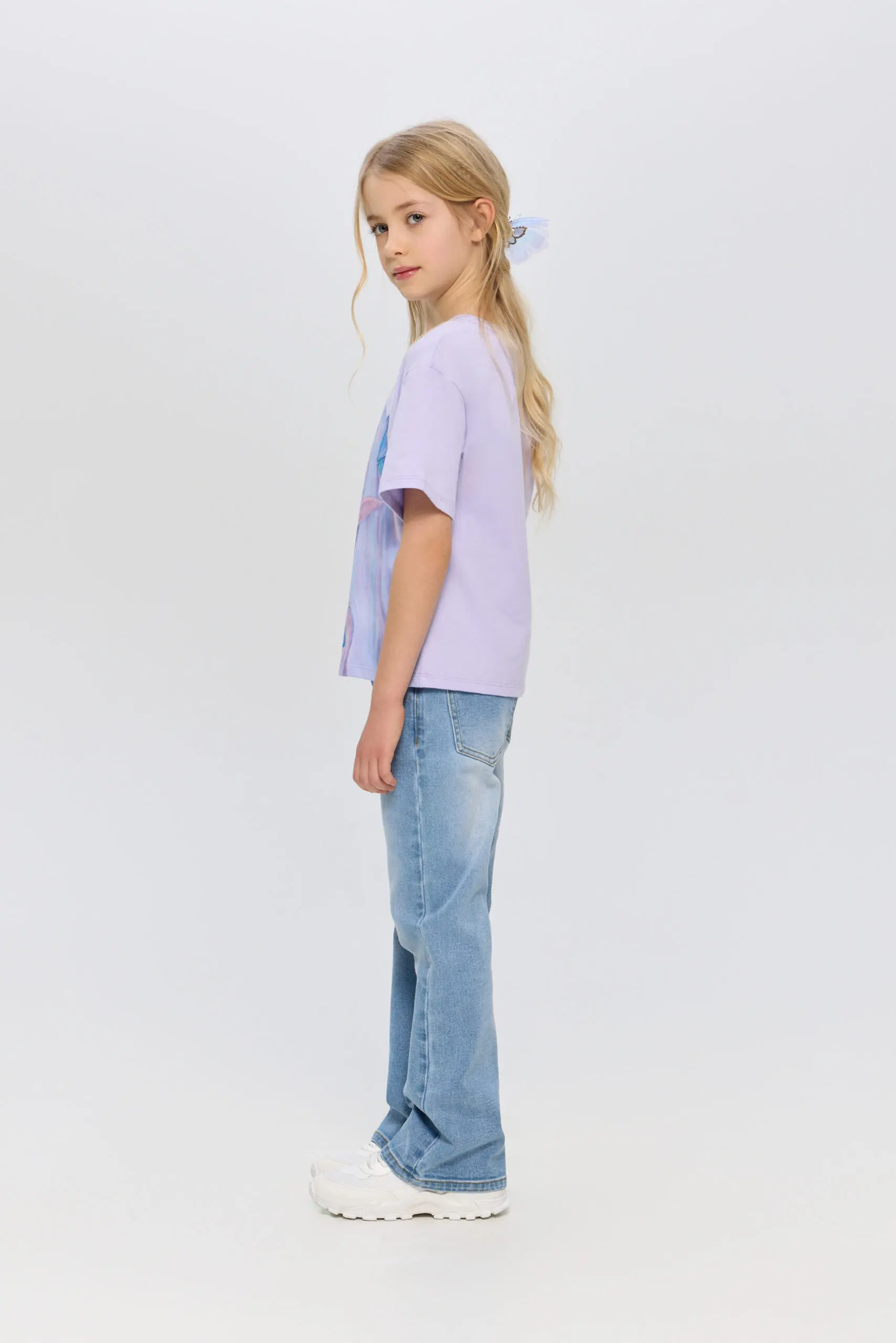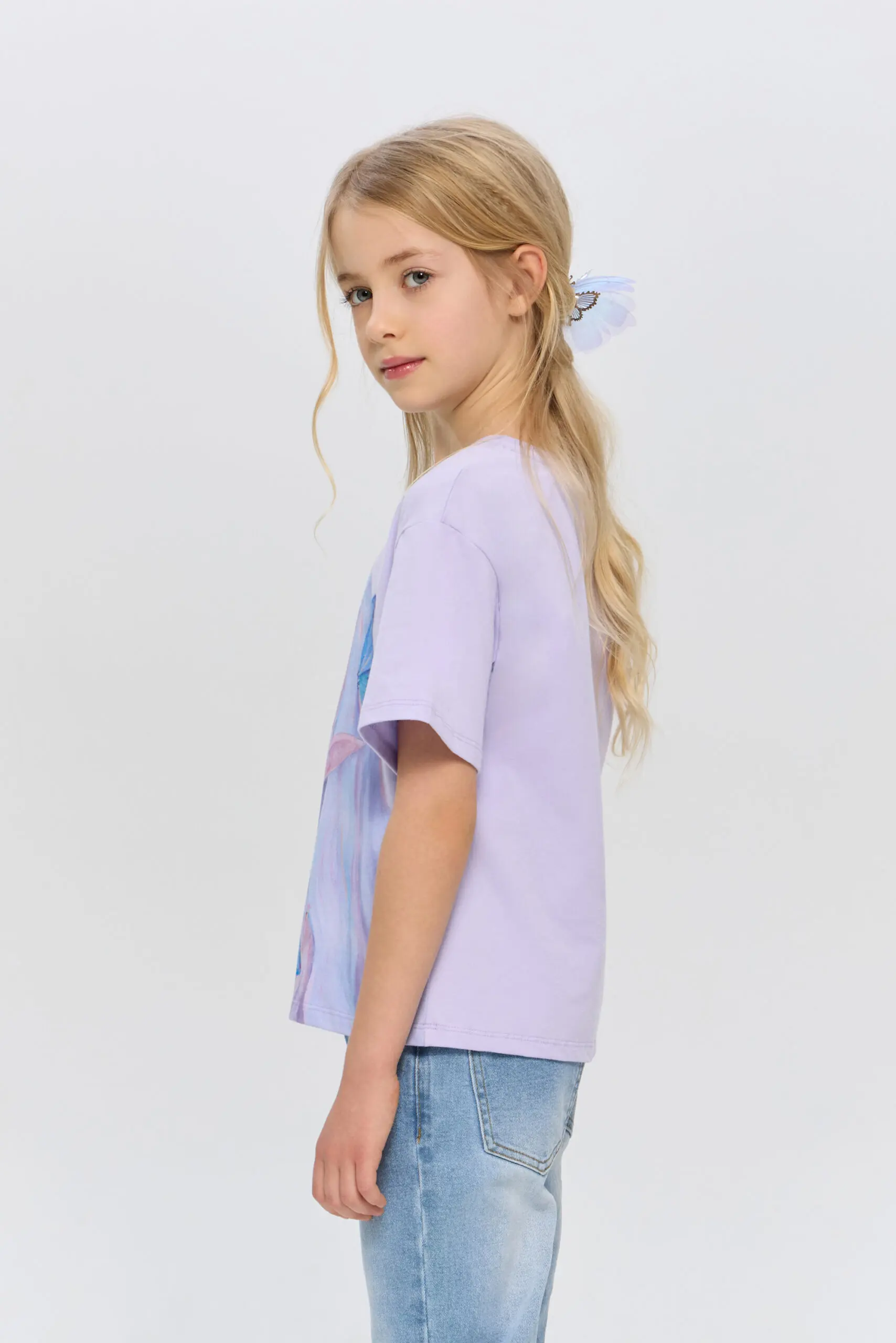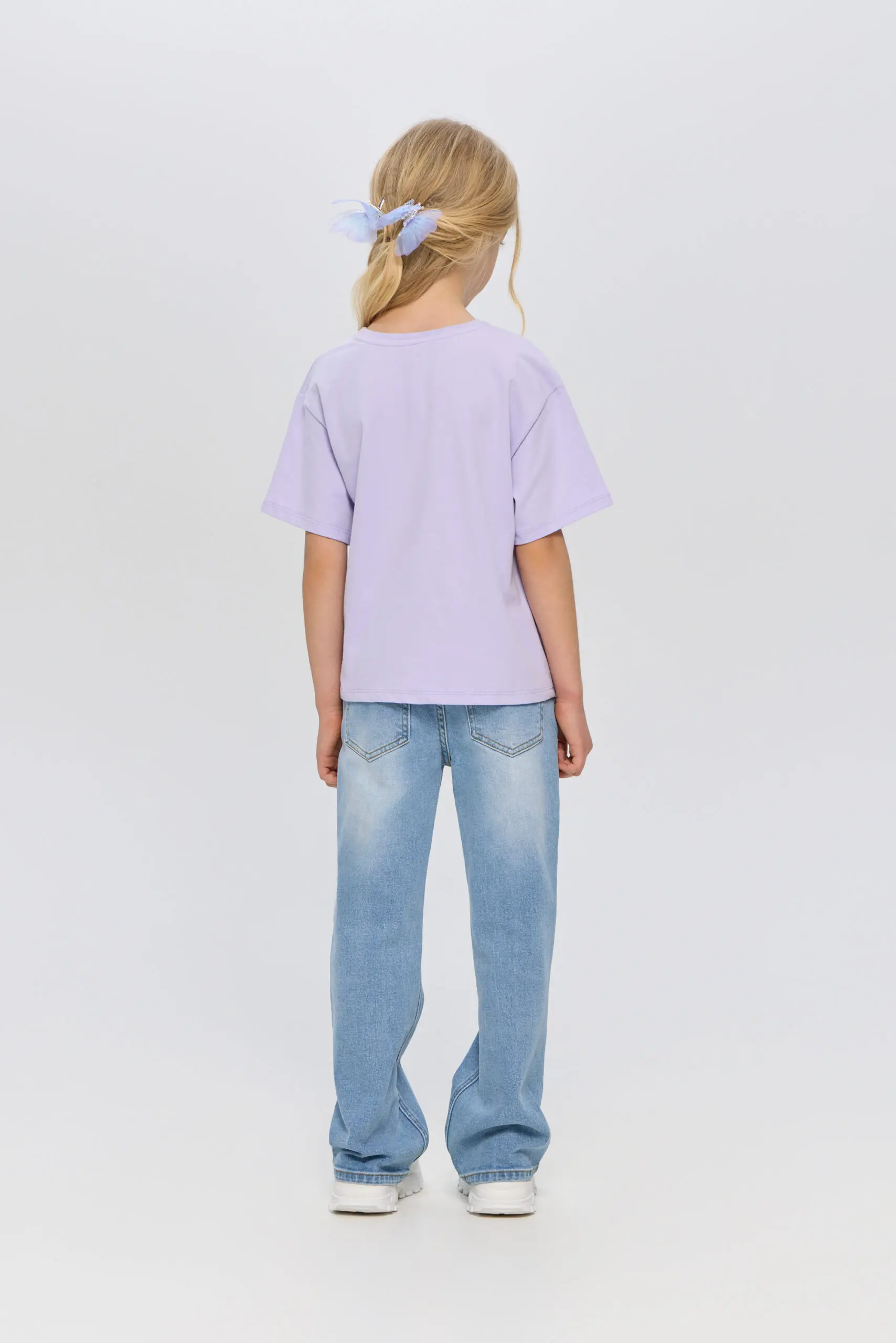 Принт на футболке добавляет индивидуальности ... и делает изделие более выразительным. В комплекте с футболкой идут заколки в виде бабочек. Они идеально подходят для создания стильных причесок и добавляют завершающий штрих к образу.