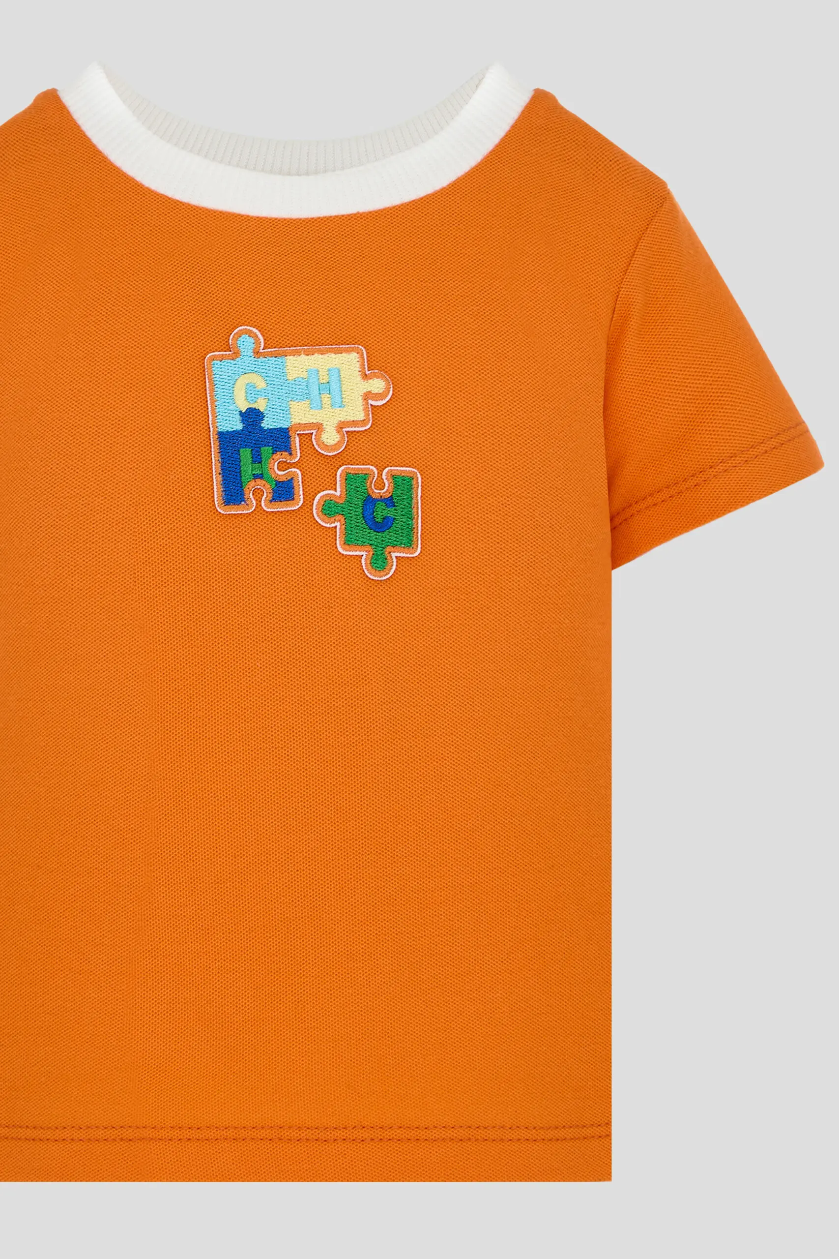 Футболка, украшенная вышивкой, станет выразительным и модным акцентом в одежде для мальчика. Насыщенный оранжевый оттенок приковывает взгляды и дарит позитивные эмоции. На передней части футболки присутствует ... изящная вышивка. Свободный прямой крой не сковывает движений, позволяя ребенку активно двигаться и наслаждаться играми. Практичная застежка на пуговицах расположена на плече, упрощая процесс переодевания. Модель выполнена из нежного и воздухопроницаемого хлопка, который бережно относится к чувствительной коже малыша. Благодаря отличным впитывающим свойствам хлопка, ребенку будет комфортно в течение всего дня.