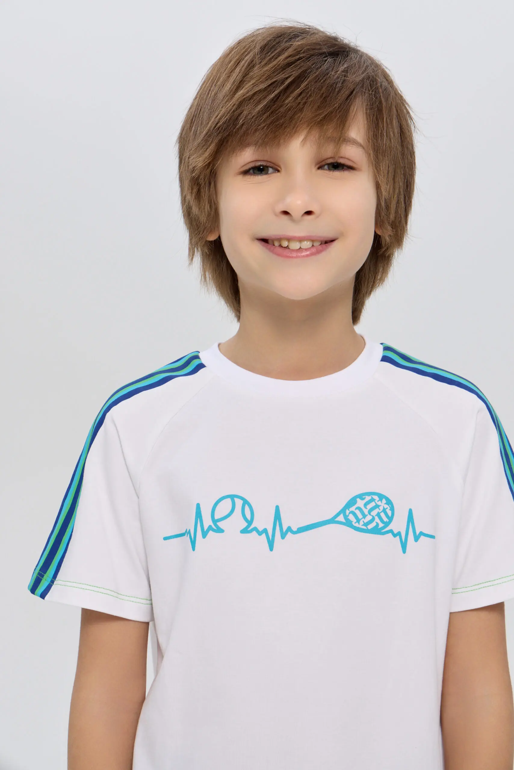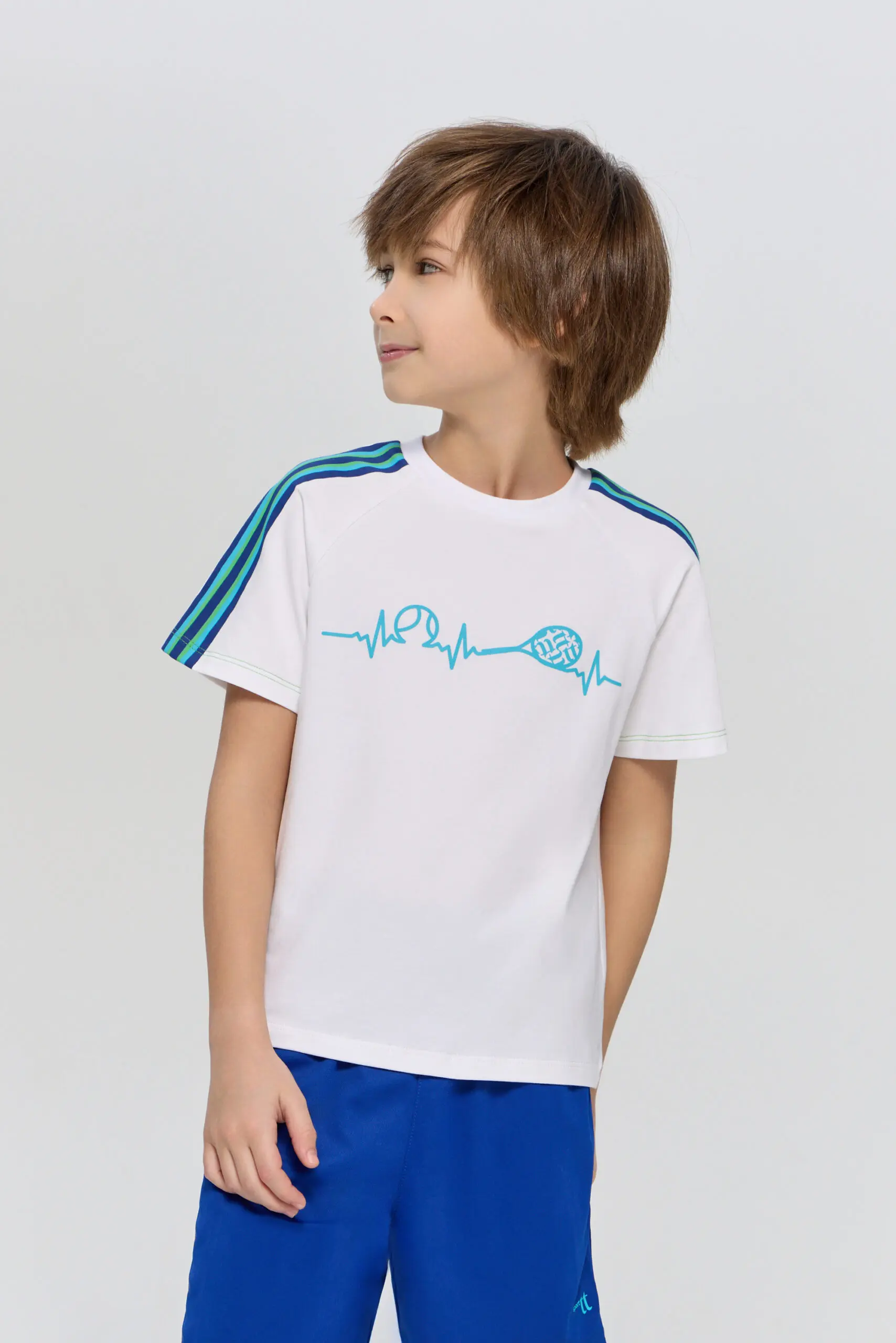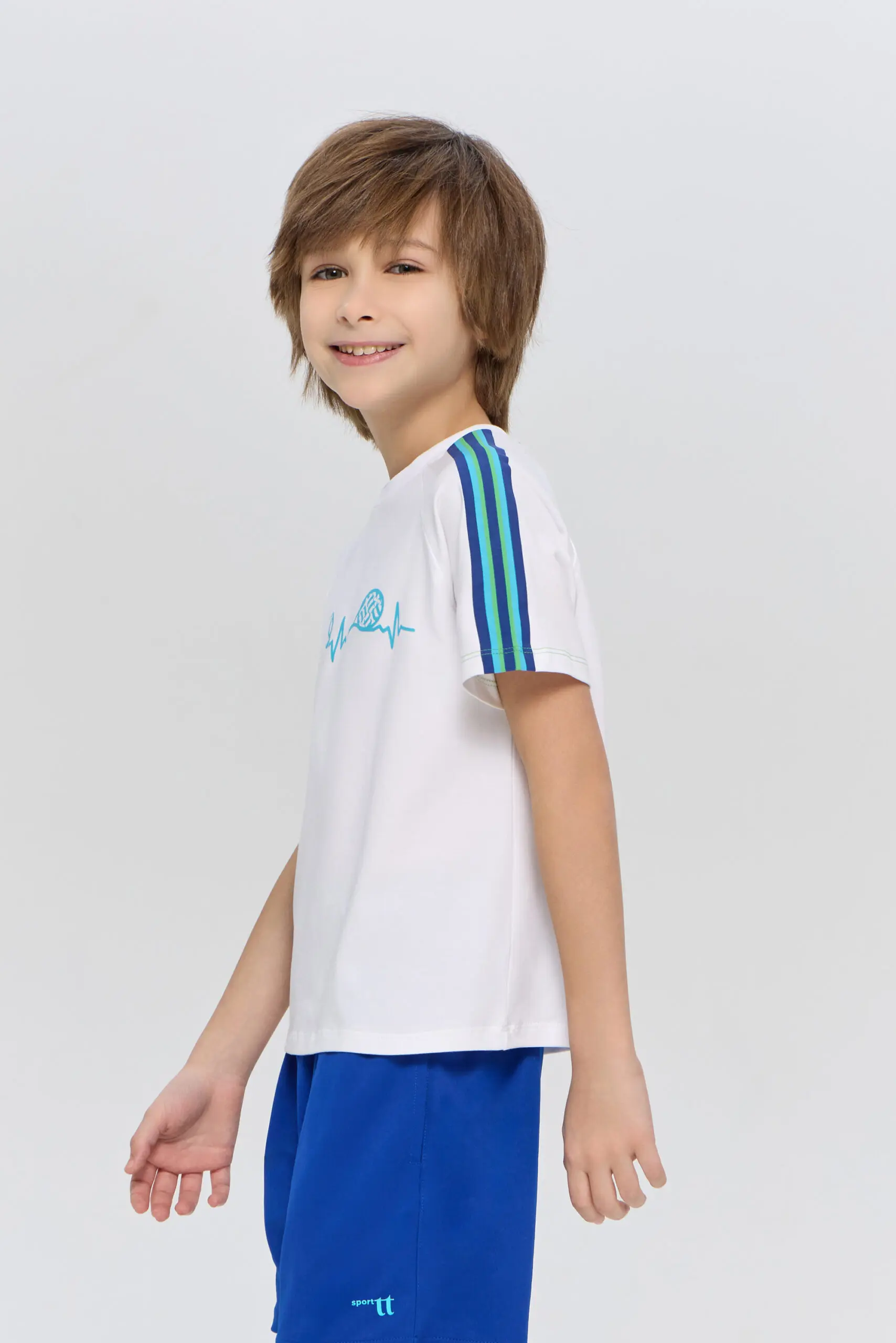 Спортивная футболка для мальчиков – отличный выбор для футбола, баскетбола и других активных игр. Свободный крой и продуманный дизайн обеспечивает удобство и не сковывают движений во ... время тренировок. Стильный принт и яркие вставки на рукавах выделяют эту модель среди прочих. Изготовленная из высококачественного хлопкового материала, она приятна на ощупь и не раздражает кожу. Эта футболка подходит как для занятий спортом, так и для создания повседневного образа.
