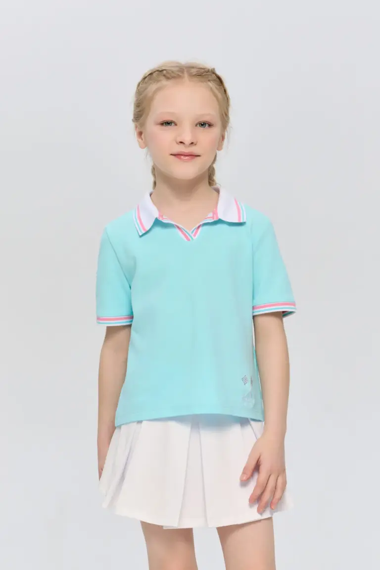 Спортивная футболка для девочек идеально подойдет для занятий теннисом. Модель украшена элегантными декоративными элементами, такими как контрастные вставки на воротнике и манжетах, которые придают ей стильный ... и современный вид. Классический крой с короткими рукавами и удобным отложным воротником обеспечивает комфортную посадку и легкость в носке. Все детали продуманы до мелочей, чтобы обеспечить максимальный комфорт во время тренировок или повседневного использования.
