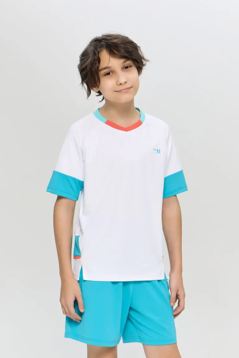Спортивная футболка для мальчика станет идеальным выбором для любителей игры в теннис и других активных игр. Модель выполнена из современного эластичного материала с технологией влагоотведения, создаст ... ощущение комфорта во время тренировок. Свободный фасон футболки не ограничивает свободу движений. Яркие акценты на рукавах и воротнике придают этой футболке актуальный и модный вид.