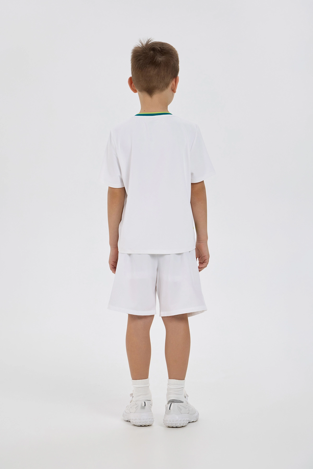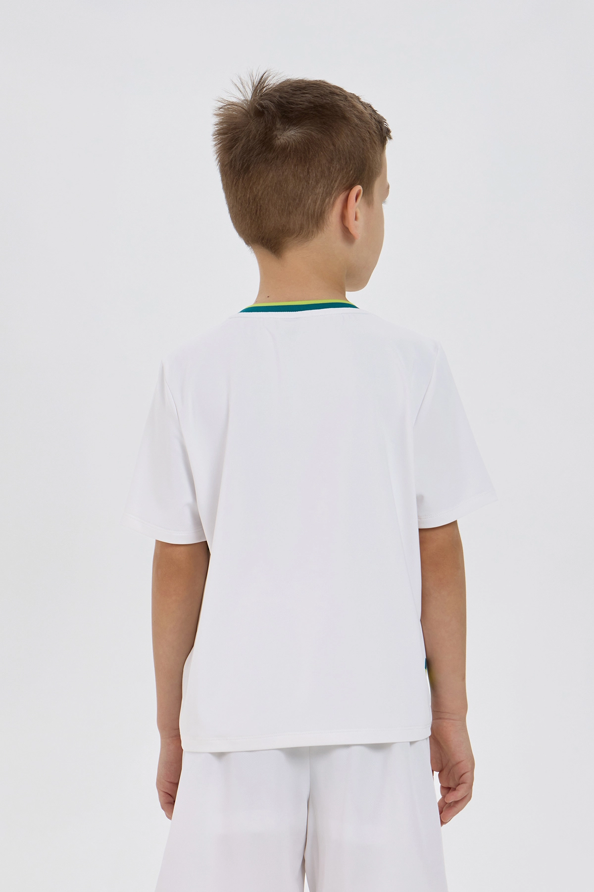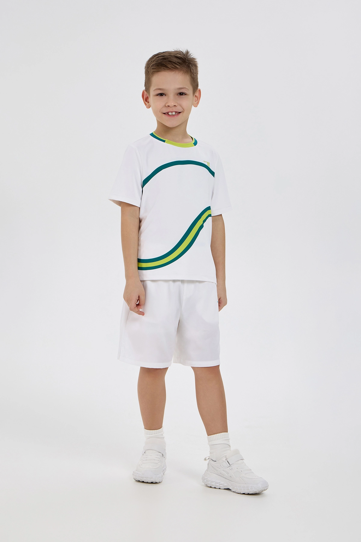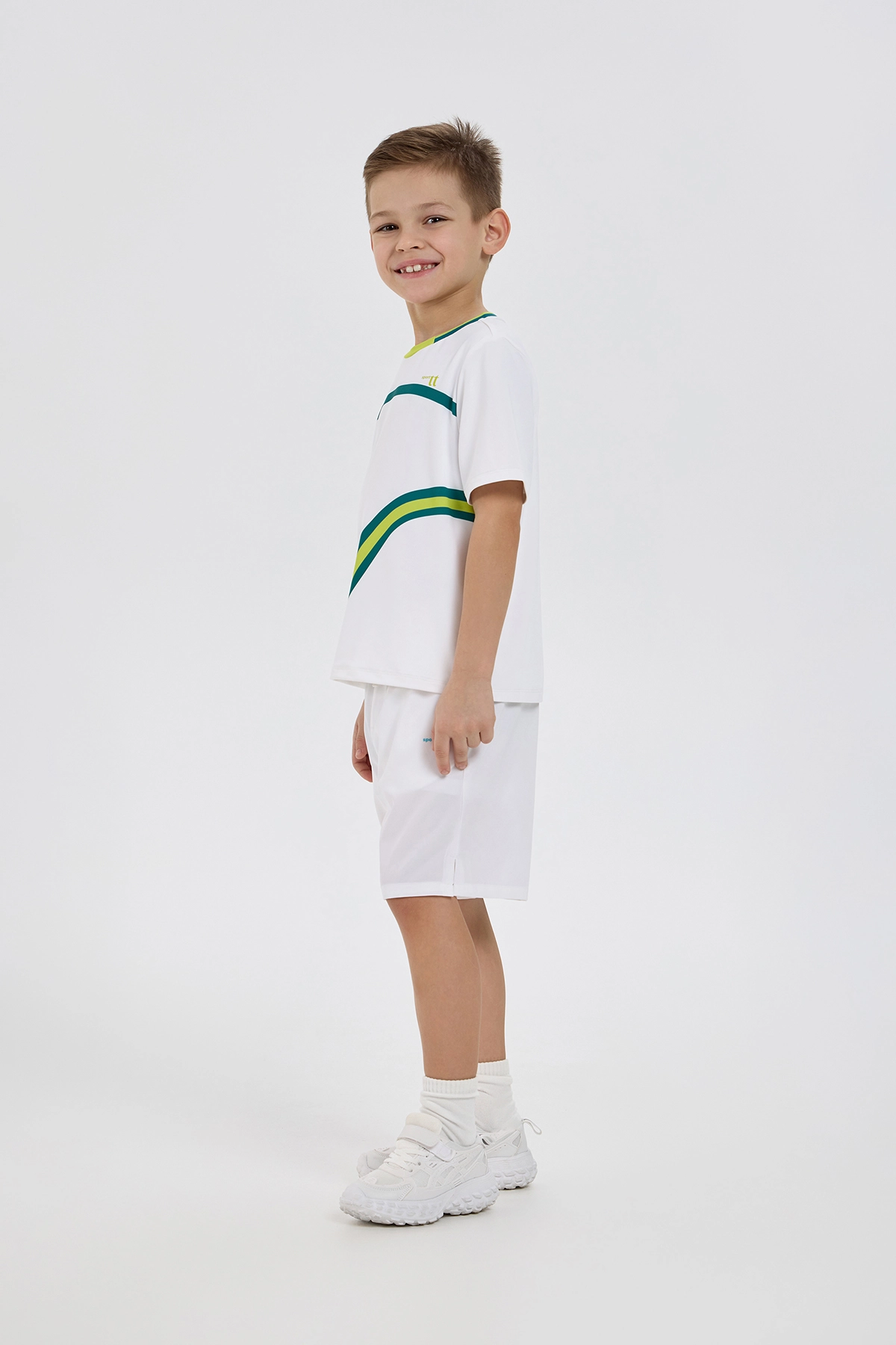 Яркая динамичная спортивная футболка свободного кроя выполнена из эластичного спортивного трикотажа. Модель с короткими рукавами, округлый вырез горловины обработан контрастной бейкой. Яркий принт в виде салатовых ... и темно-зеленых полосок акцентирует внимание и подчеркивает спортивный характер. Футболка отлично подойдет для занятий спортом, танцами, тренировок, студийных выступлений.