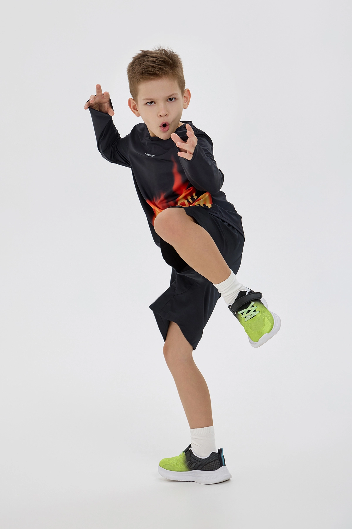 Лонгслив для мальчиков — стильное решение для тренировок и активного отдыха. Модель свободного кроя выполнена из мягкого эластичного материала с применением технологии влагоотведения. Длинные рукава и ... удобная посадка делают лонгслив практичным для повседневной носки в прохладную погоду. Яркий дизайнерский принт на черном фоне привлекает внимание. Лонгслив прекрасно впишется как в спортивный, так и повседневный гардероб мальчика. Отлично подойдет для занятий спортом на свежем воздухе, тренировок в зале и для повседневного использования.
