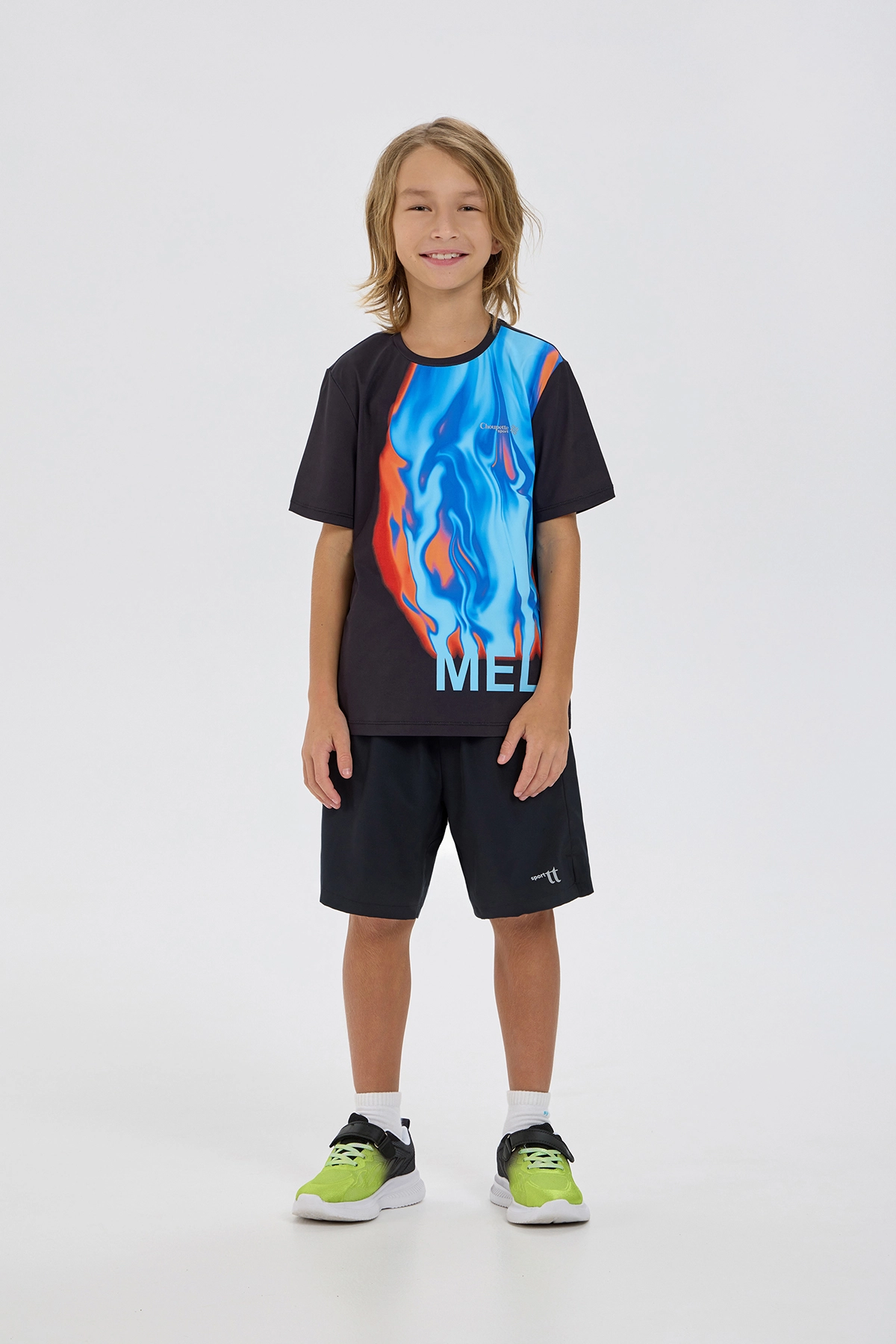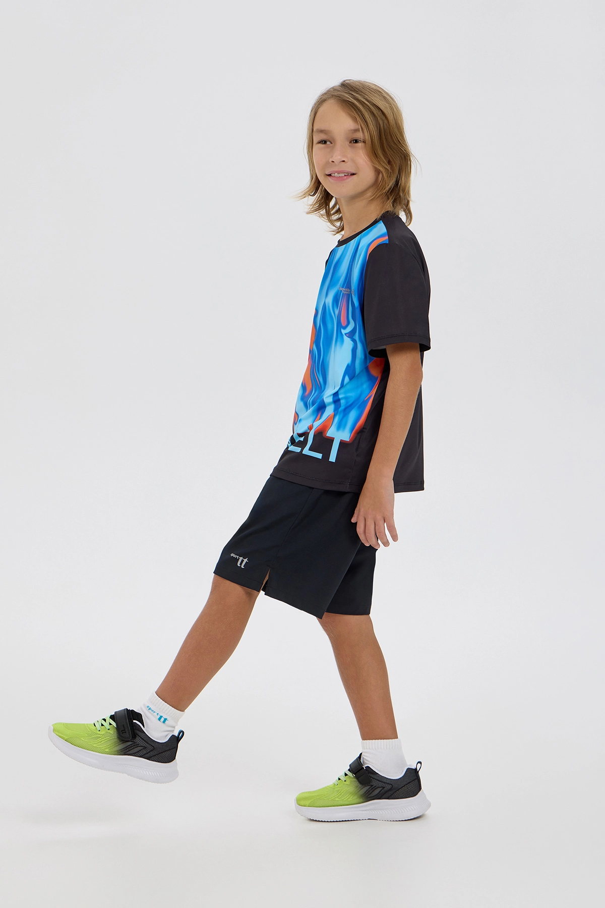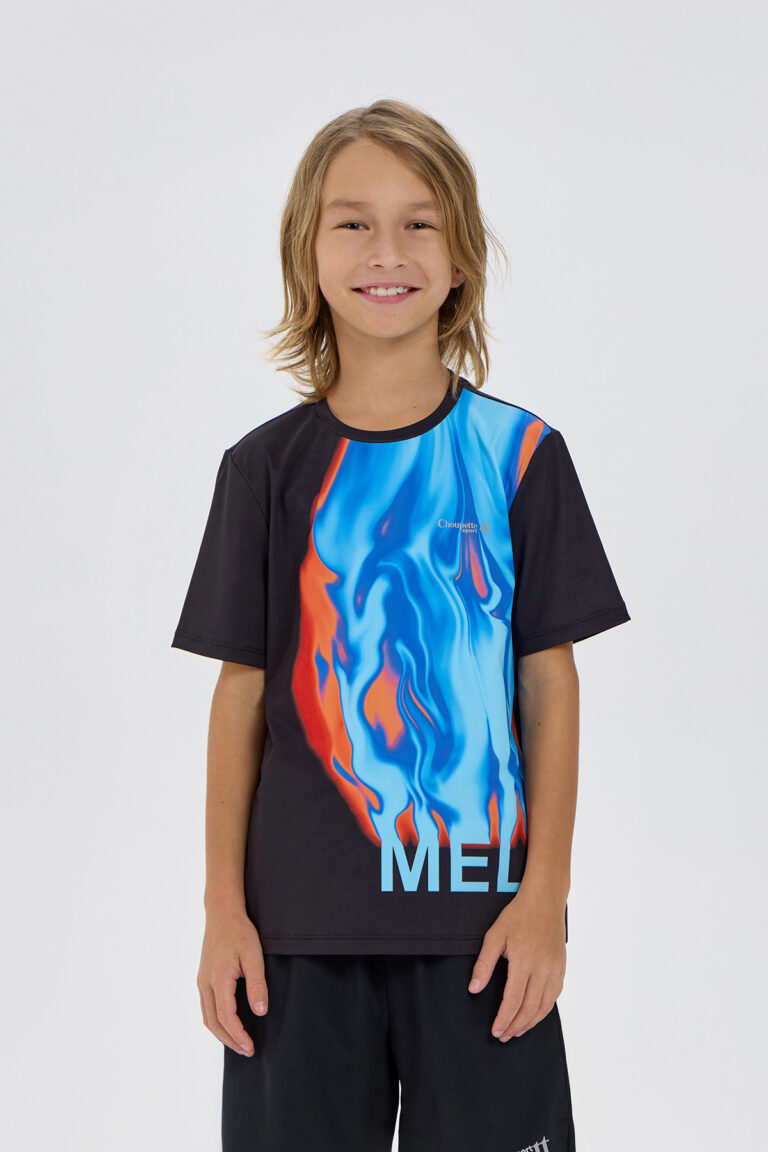 Дизайнерская футболка для мальчика — стильная модель для занятий спортом, уличными танцами и активного отдыха. Модель прямого кроя с короткими рукавами выполнена из современного эластичного материала ... с использованием технологии влагоотведения. Внимание привлекает яркий акцент в виде абстрактного дизайнерского принта. Футболка представляет собой отличный вариант для повседневной носки, тренировок или динамичных спортивных занятий.