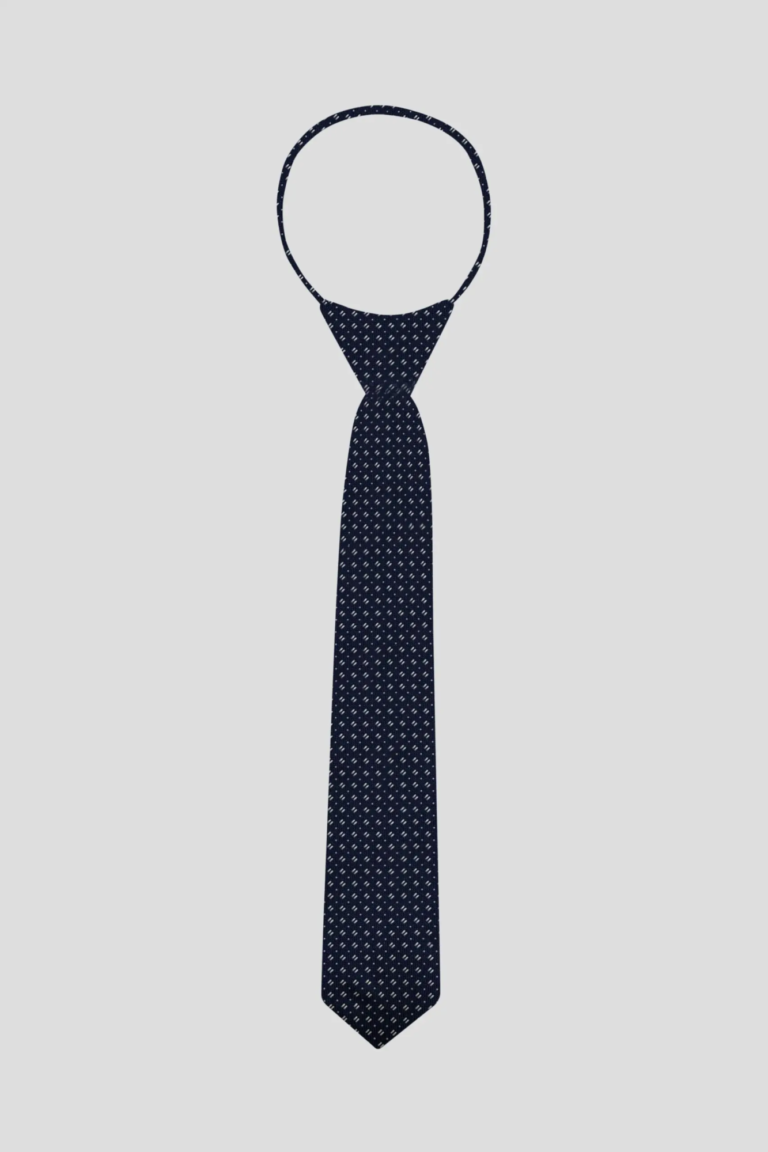 Великолепный аксессуар из жаккарда тёмно-синего цвета ... с контрастным дизайнерским принтом идеально подходит к классическому гардеробу мальчика-школьника.