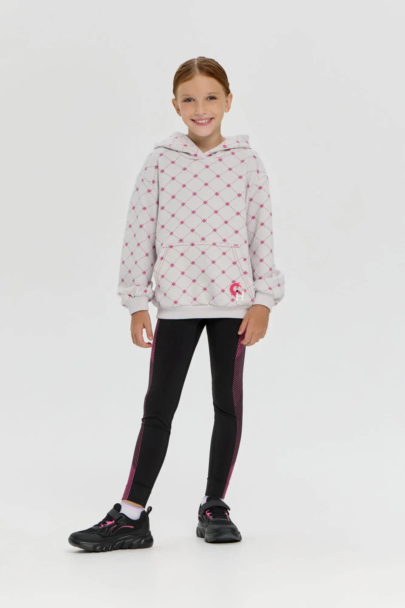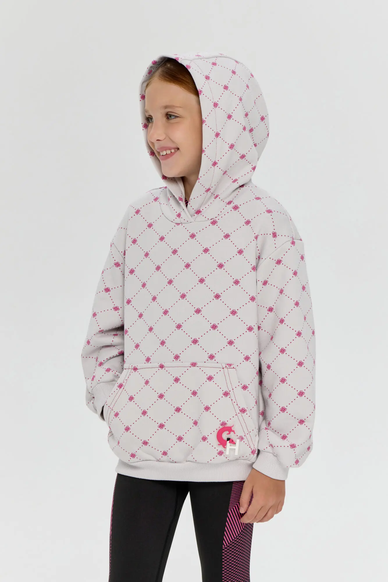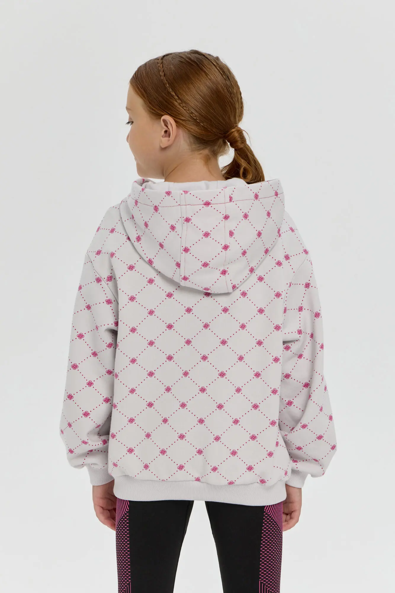 Яркое худи с уникальным фирменным принтом преобразит гардероб девочки. Эта модель изготовлена из хлопкового футера, что обеспечивает мягкость и долговечность. Капюшон с регулируемым шнурком защитит от ... непогоды, а карман-кенгуру спереди позволит согреть руки или положить небольшие предметы. Рисунок, покрывающий всю поверхность, создаёт ощущение энергичного и актуального стиля, а свободный фасон гарантирует свободу движений на тренировках и прогулках.