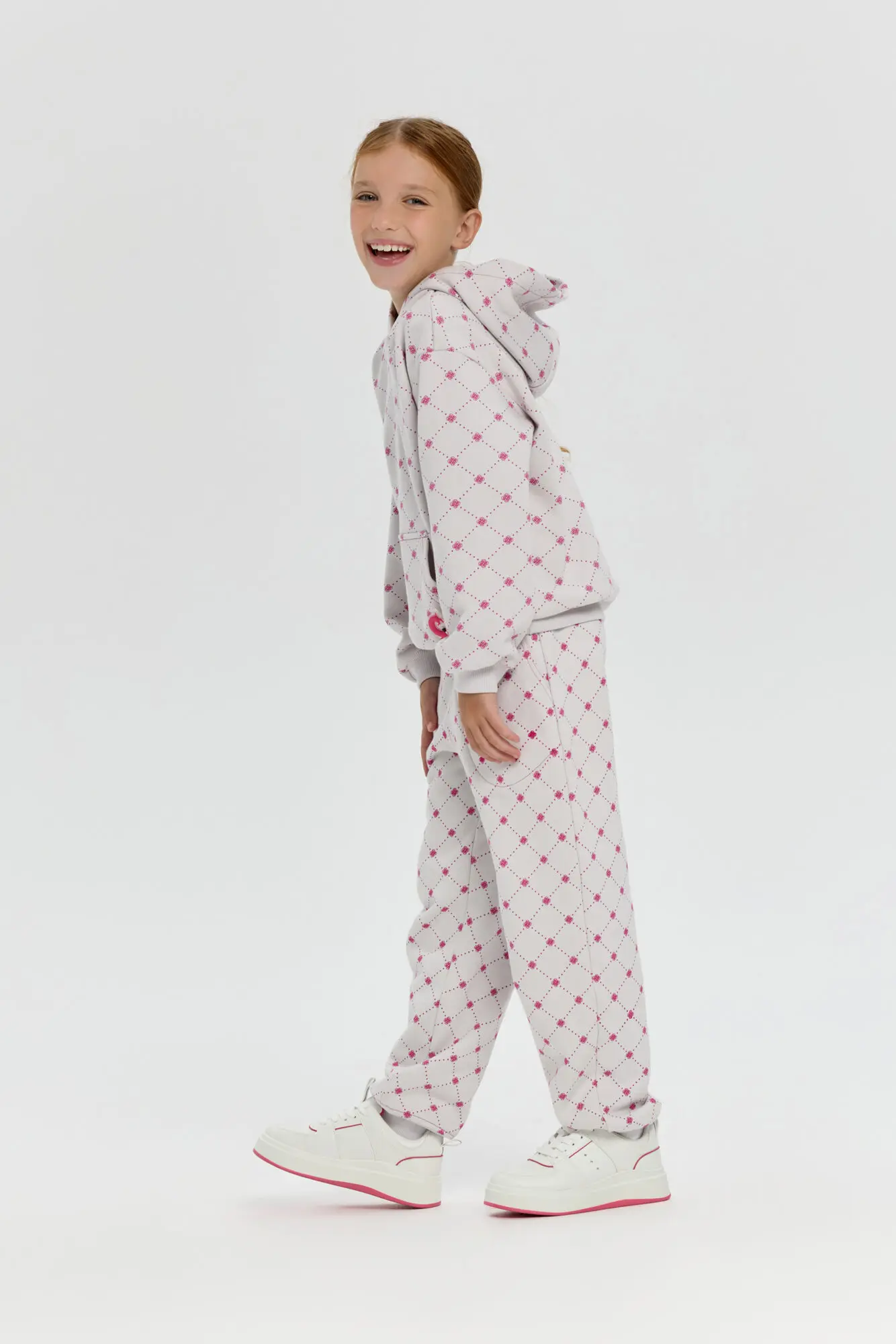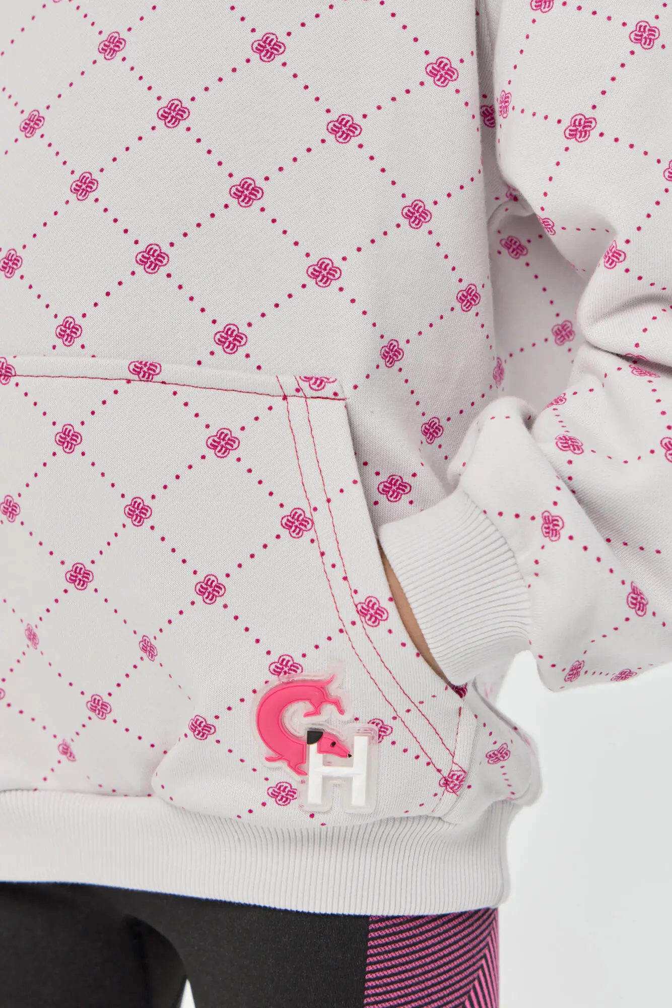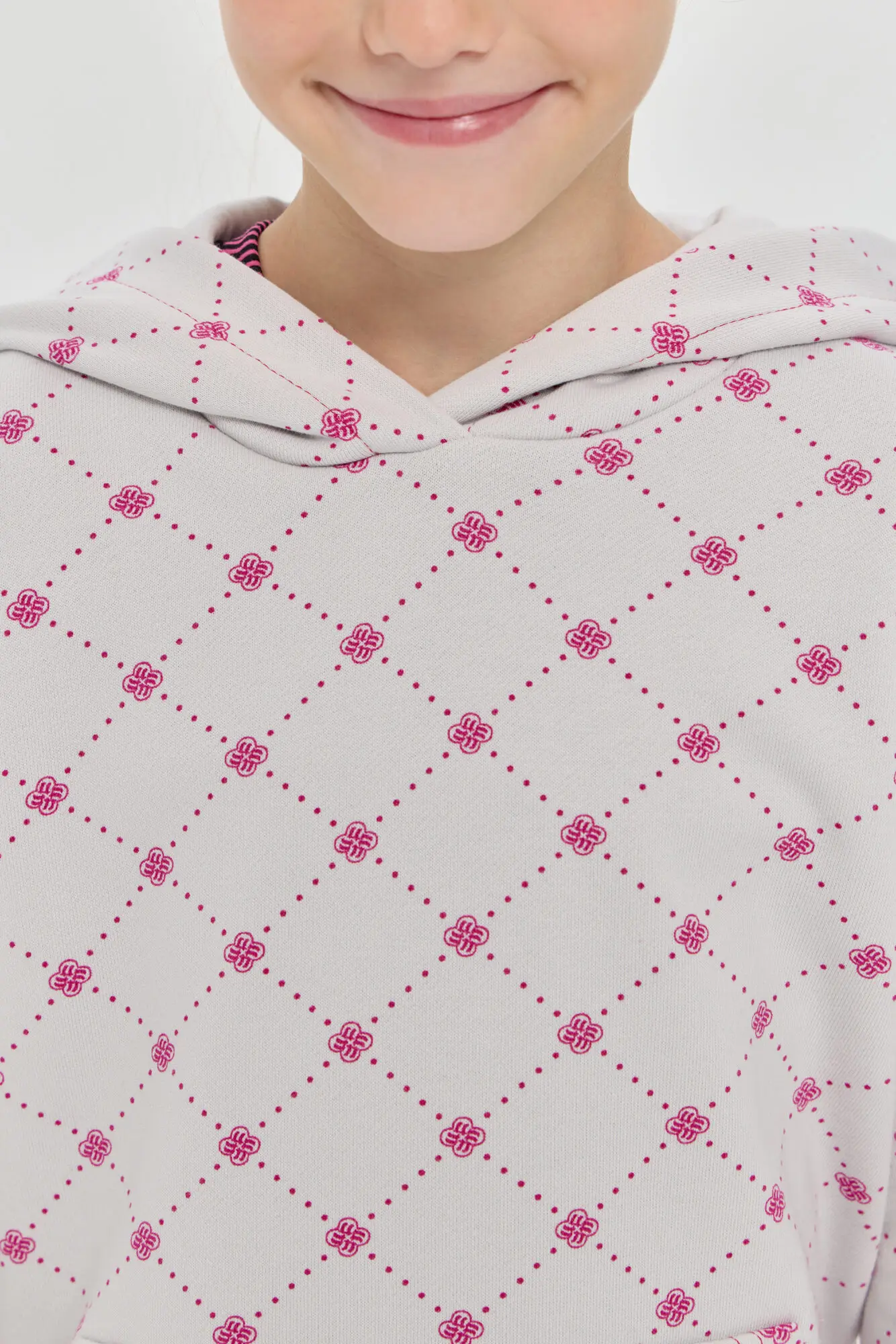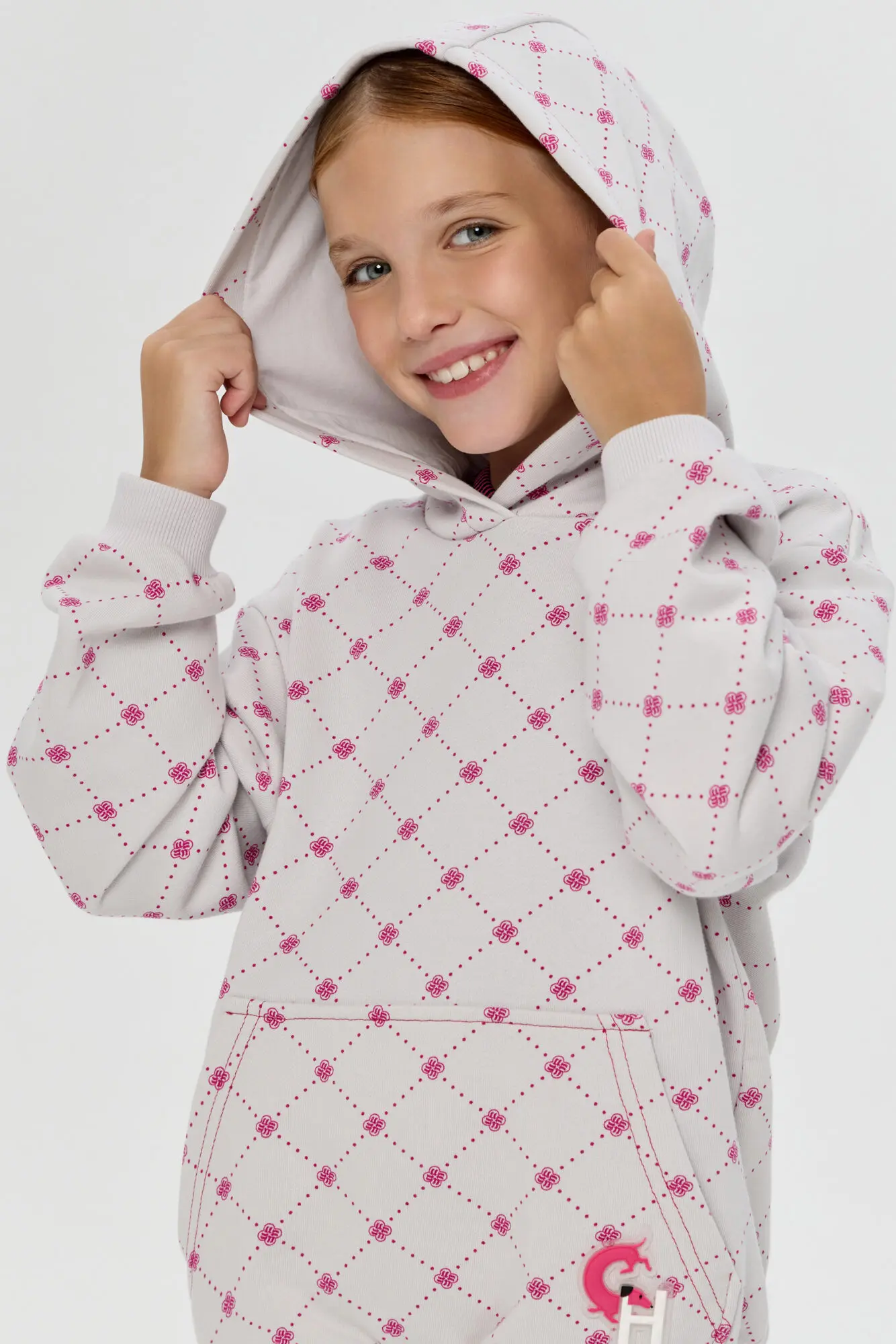 Яркое худи с уникальным фирменным принтом преобразит гардероб девочки. Эта модель изготовлена из хлопкового футера, что обеспечивает мягкость и долговечность. Капюшон с регулируемым шнурком защитит от ... непогоды, а карман-кенгуру спереди позволит согреть руки или положить небольшие предметы. Рисунок, покрывающий всю поверхность, создаёт ощущение энергичного и актуального стиля, а свободный фасон гарантирует свободу движений на тренировках и прогулках.