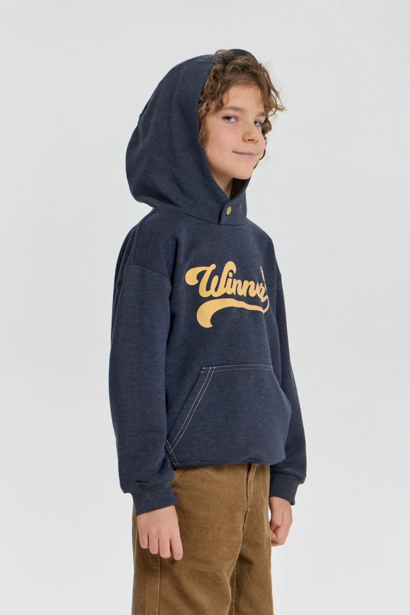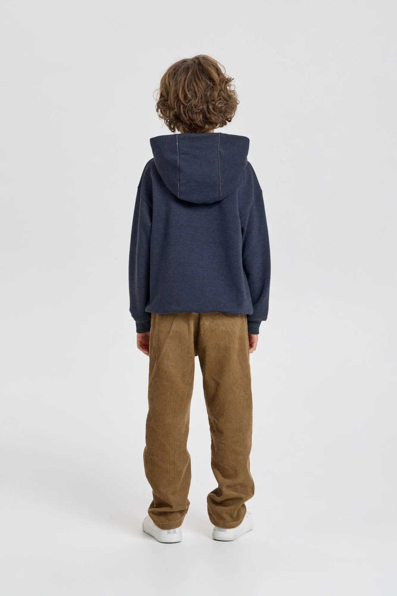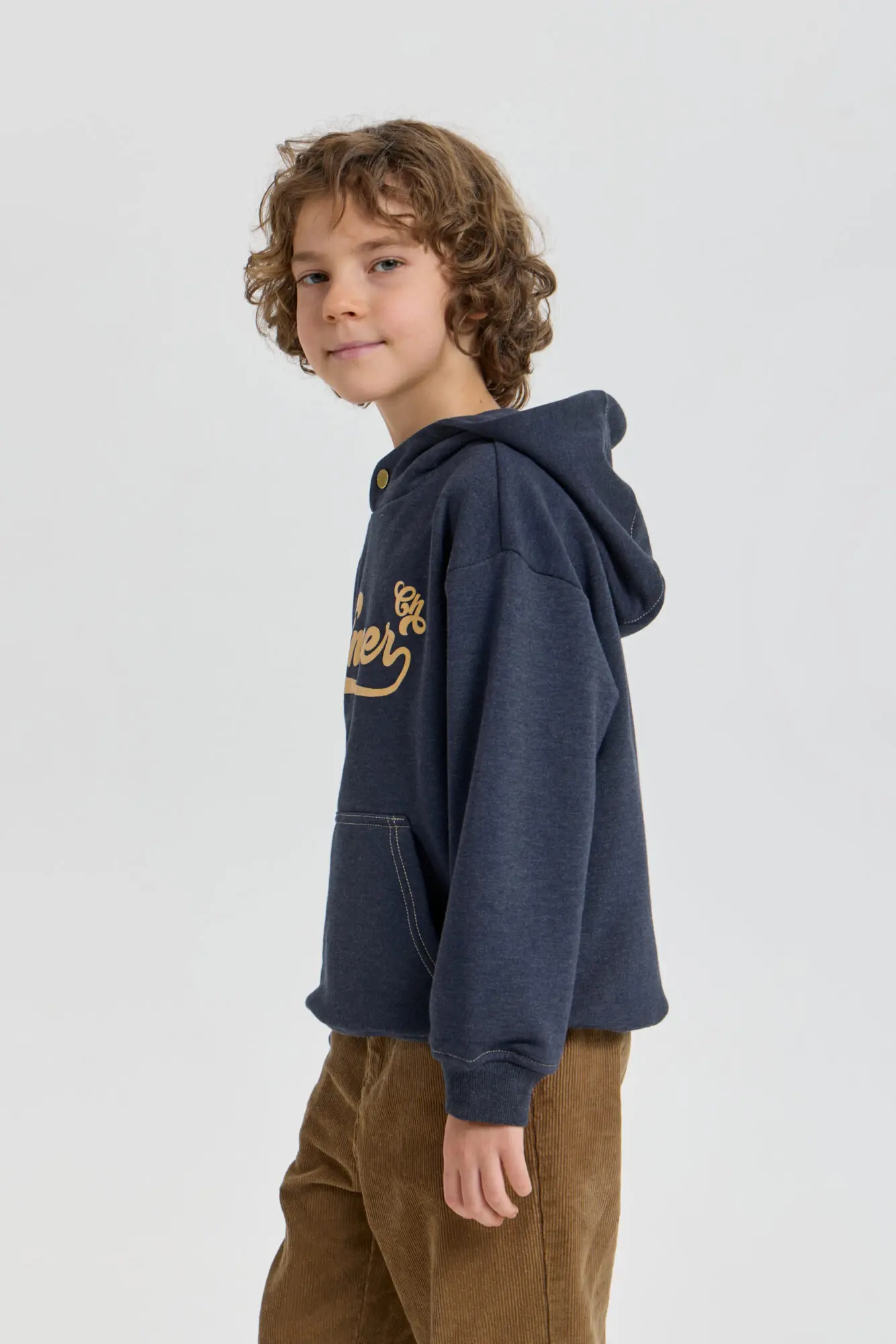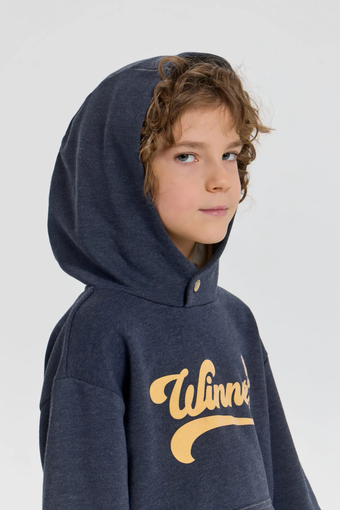 Современное худи для мальчика сочетает в себе актуальные тренды: свободный силуэт в стиле oversize, модный внешний вид и внимание к деталям. Капюшон модели застегивается на пуговицу, образуя ... высокий воротник, обеспечивающий дополнительную защиту от прохладного ветра. Практичный карман-кенгуру идеально подходит для хранения телефона и других мелочей. Декоративный буквенный принт добавляет изделию выразительности. Однотонная толстовка изготовлена из высококачественного хлопка, чтобы обеспечить максимальный уровень комфорта на прогулках и во время активного отдыха . Благодаря своей универсальности, худи легко комбинируется с различными предметами одежды.