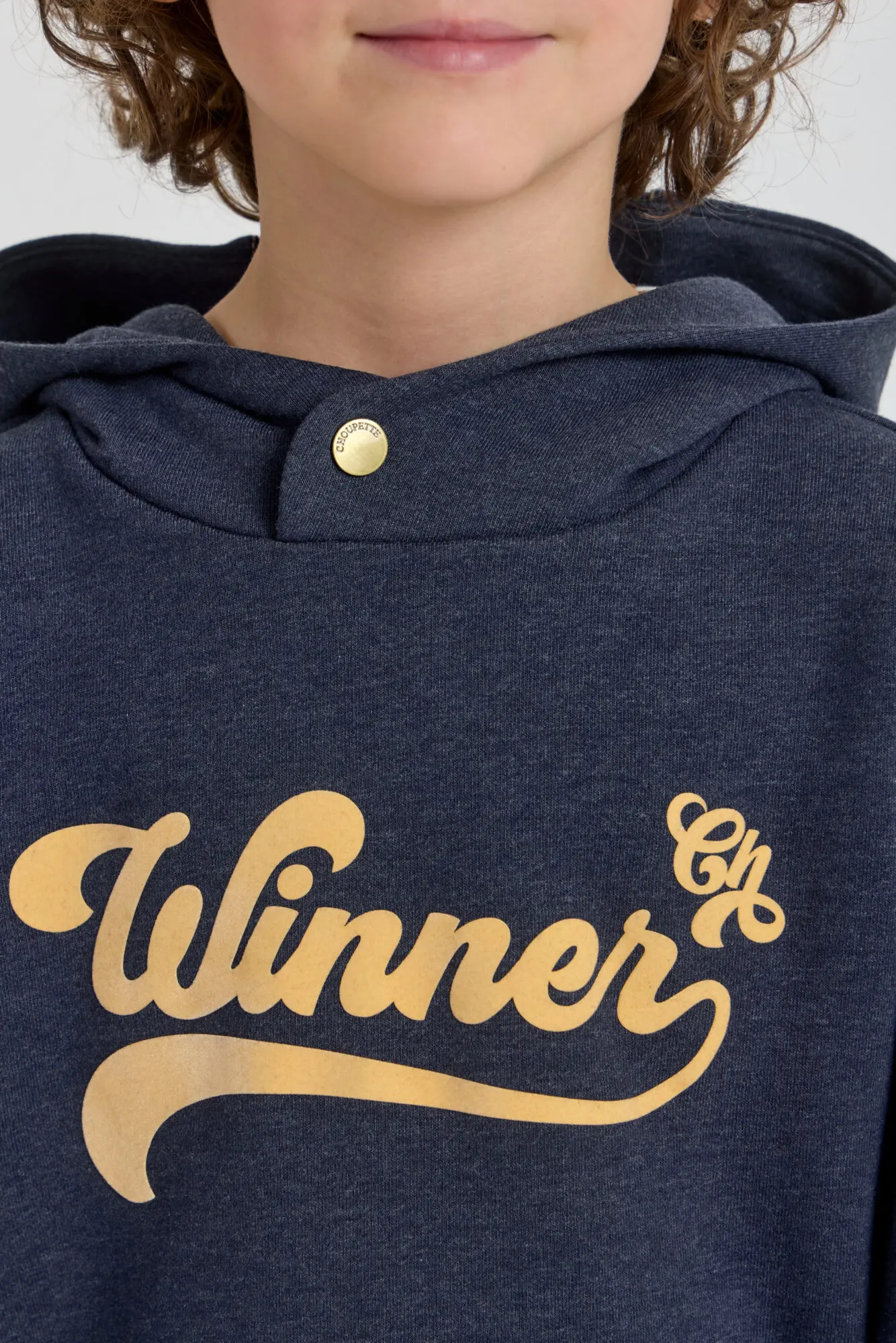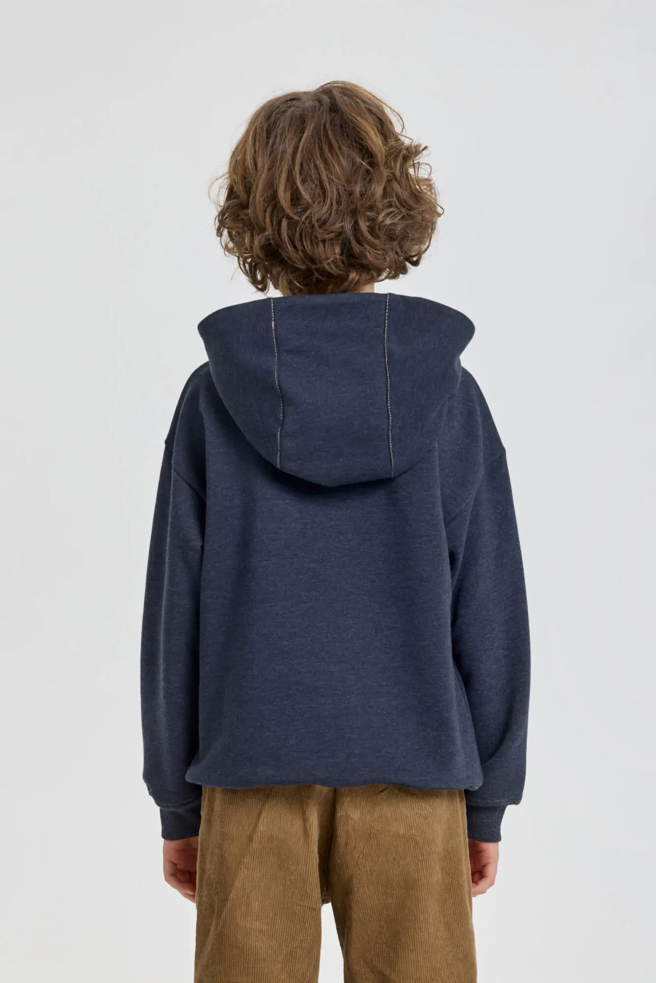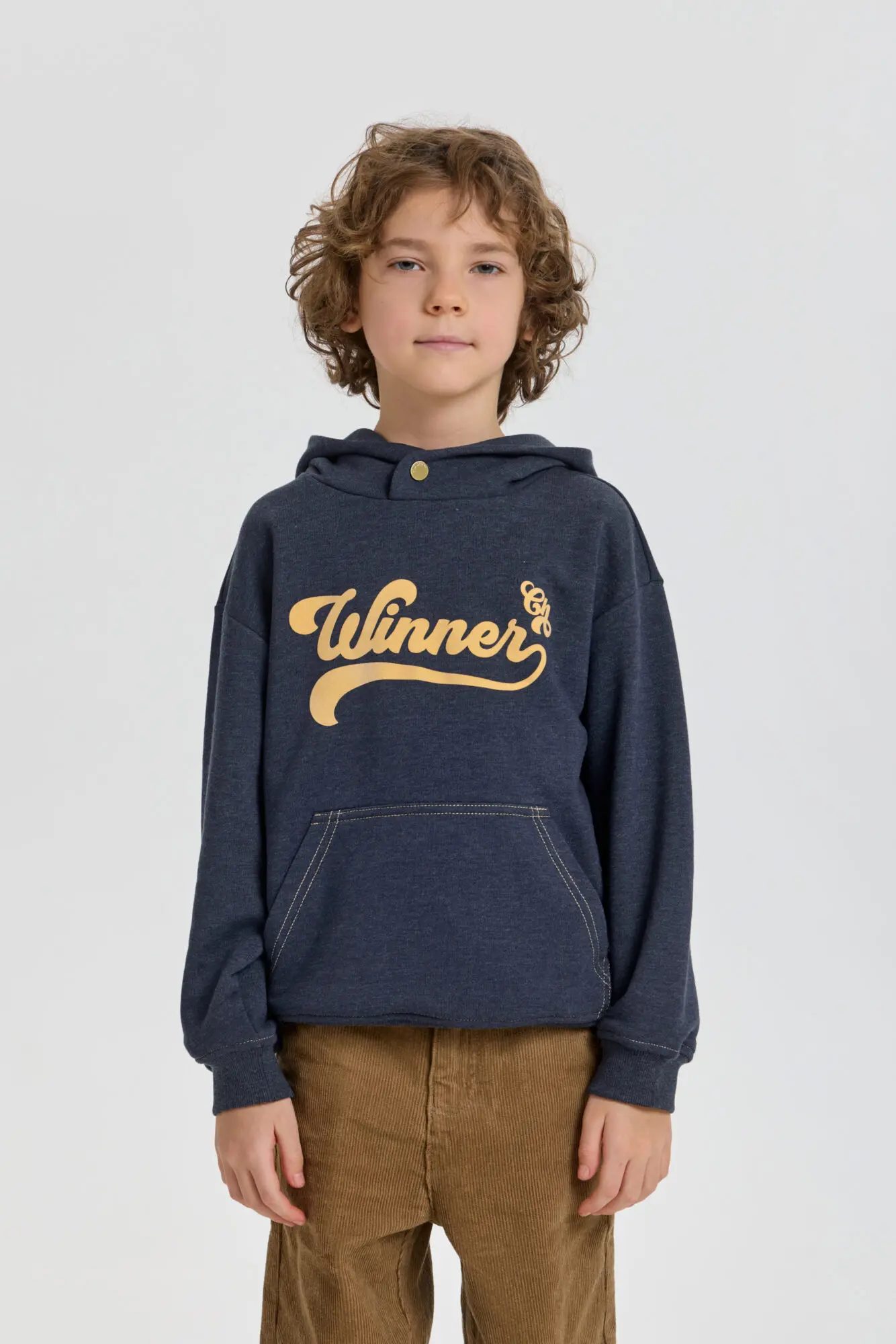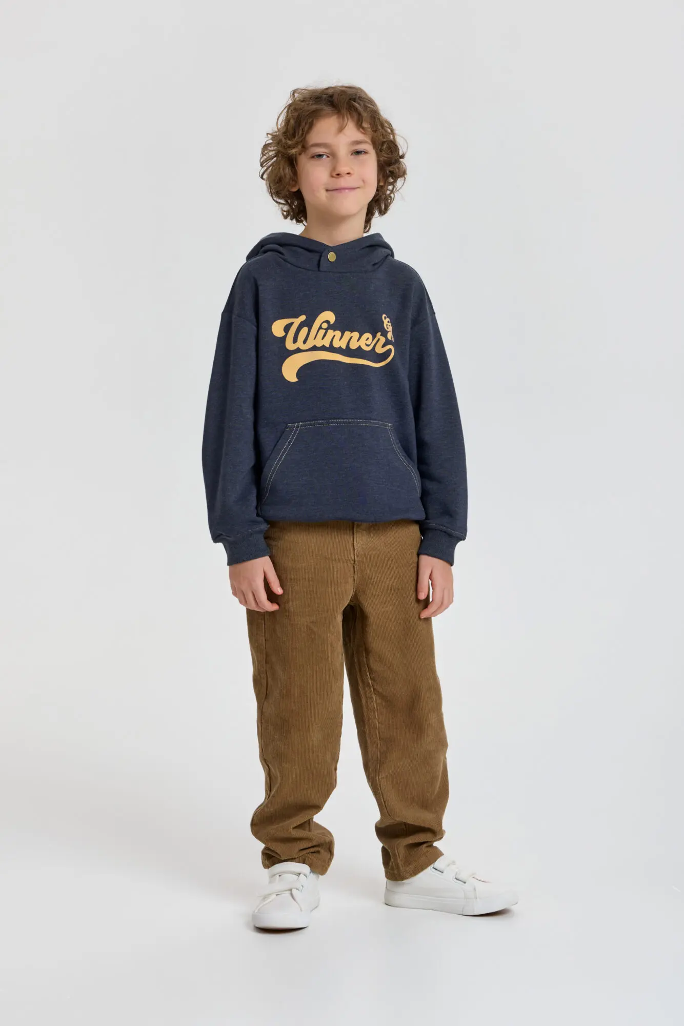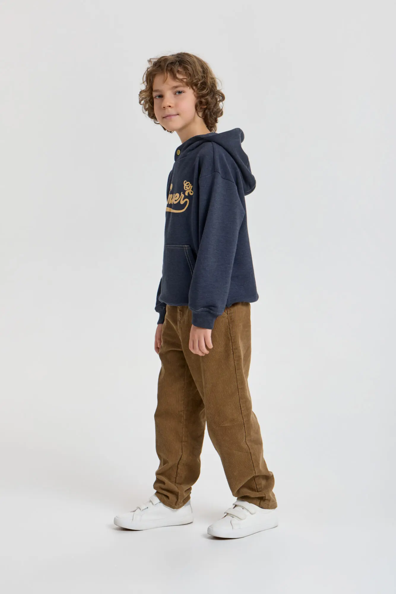 Современное худи для мальчика сочетает в себе актуальные тренды: свободный силуэт в стиле oversize, модный внешний вид и внимание к деталям. Капюшон модели застегивается на пуговицу, образуя ... высокий воротник, обеспечивающий дополнительную защиту от прохладного ветра. Практичный карман-кенгуру идеально подходит для хранения телефона и других мелочей. Декоративный буквенный принт добавляет изделию выразительности. Однотонная толстовка изготовлена из высококачественного хлопка, чтобы обеспечить максимальный уровень комфорта на прогулках и во время активного отдыха . Благодаря своей универсальности, худи легко комбинируется с различными предметами одежды.
