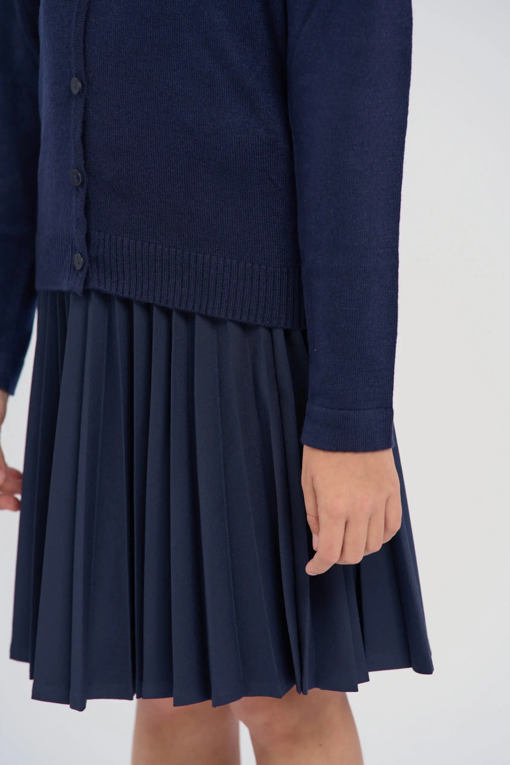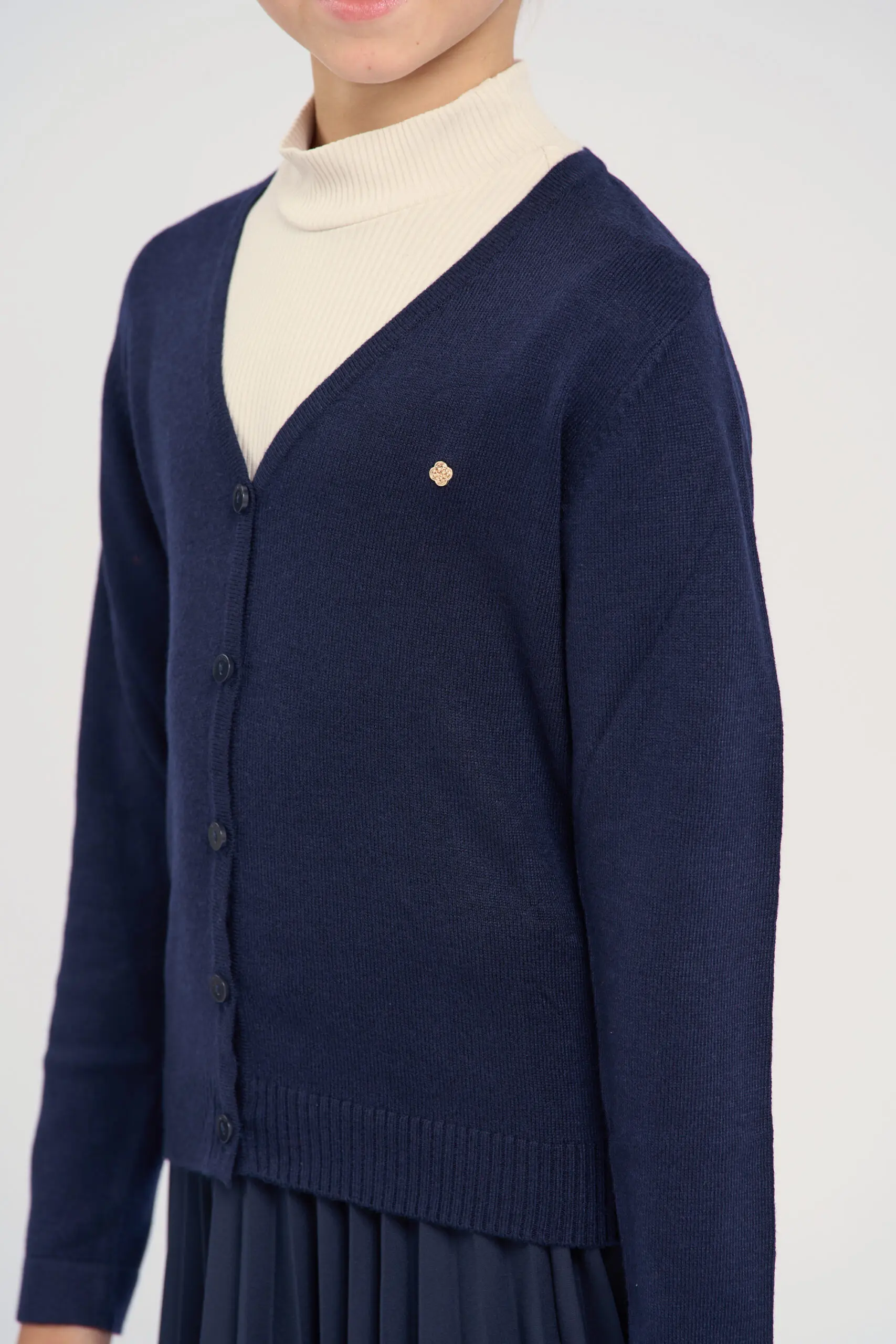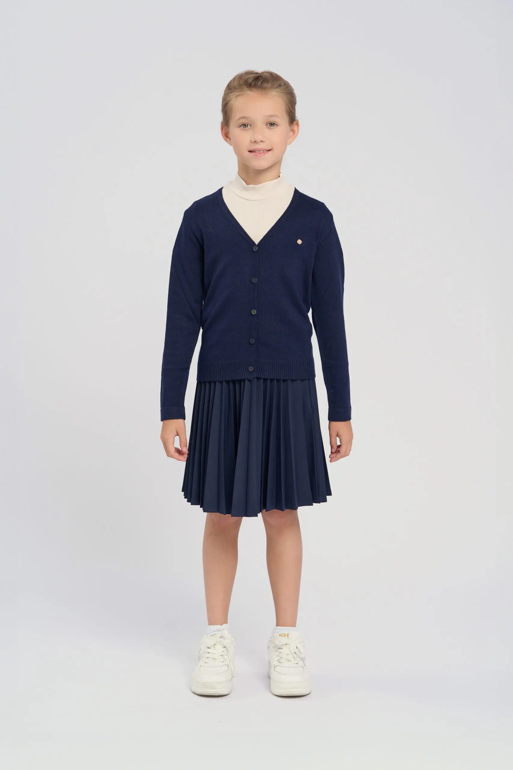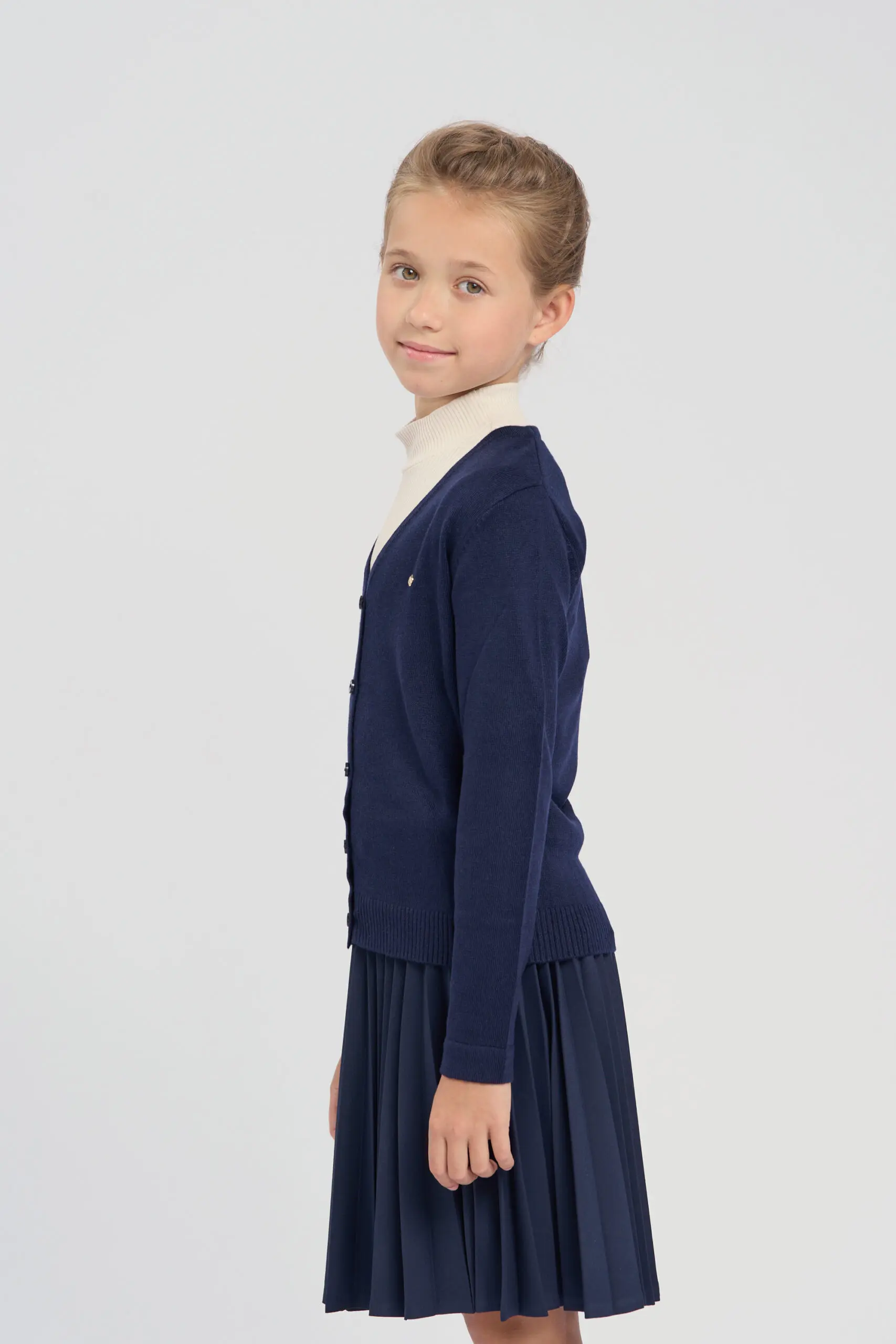 Лаконичный вязаный кардиган для девочки - модный и функциональный предмет школьного гардероба. Модель выполнена из мягкого приятного на ощупь материала. Кардиган полуприлегающего силуэта. Рукава длинные на ... манжетах. Удобная застежка на пуговицы по всей длине изделия. Кардиган отлично сочетается как с водолазками, так и с нарядными блузками. Подходит под любые юбки и брюки.