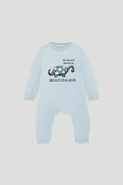 Комбинированный комбинезон с фирменным принтом — отличный выбор для детского гардероба. Верх комбинезона выполнен в однотонном цвете и украшен маленькой декоративной нашивкой. Низ голубого цвета с ... оригинальным принтом. Между ножками расположена удобная застёжка на кнопки, которая обеспечивает надёжное крепление и позволяет легко надевать и снимать комбинезон. Натуральный хлопок – идеальная ткань для нежной кожи малыша.