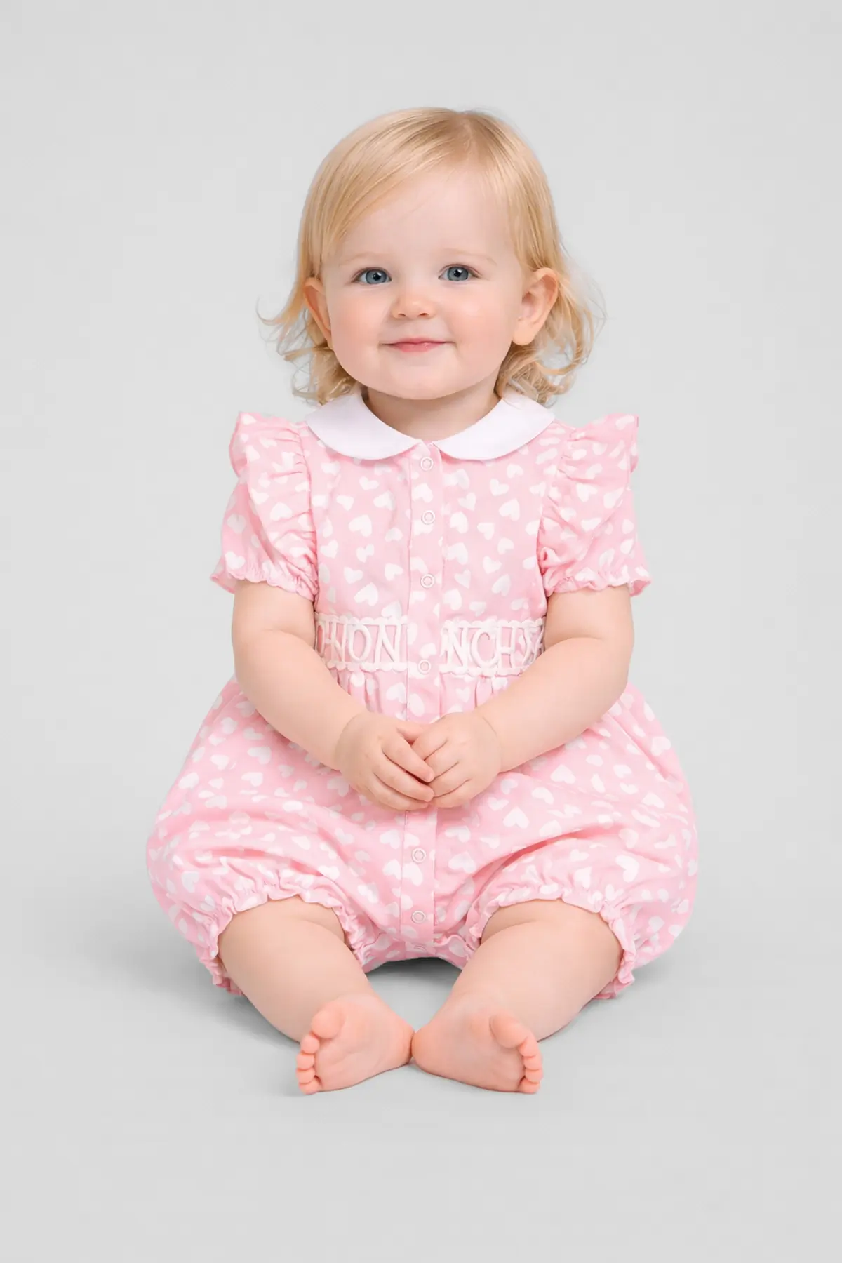 Нежный песочник в мягком розовом оттенке обеспечит комфорт и станет практичным дополнением к повседневному образу малышки. Материал изделия лёгкий и дышащий, с приятной текстурой, которая бережно ... взаимодействует с кожей, даря ощущение комфорта на весь день. Продуманный крой обеспечивает свободу движений, позволяя ребёнку активно двигаться и чувствовать себя комфортно. Застёжка на кнопках по всей длине облегчает процесс переодевания, а мягкая резинка по низу штанишек обеспечивает аккуратную посадку. Ткань хорошо пропускает воздух, помогая поддерживать оптимальную температуру даже в тёплую погоду. Нежный принт с сердечками, аккуратный воротничок и декоративные рюши добавляют образу очарования и делают модель особенно милой.