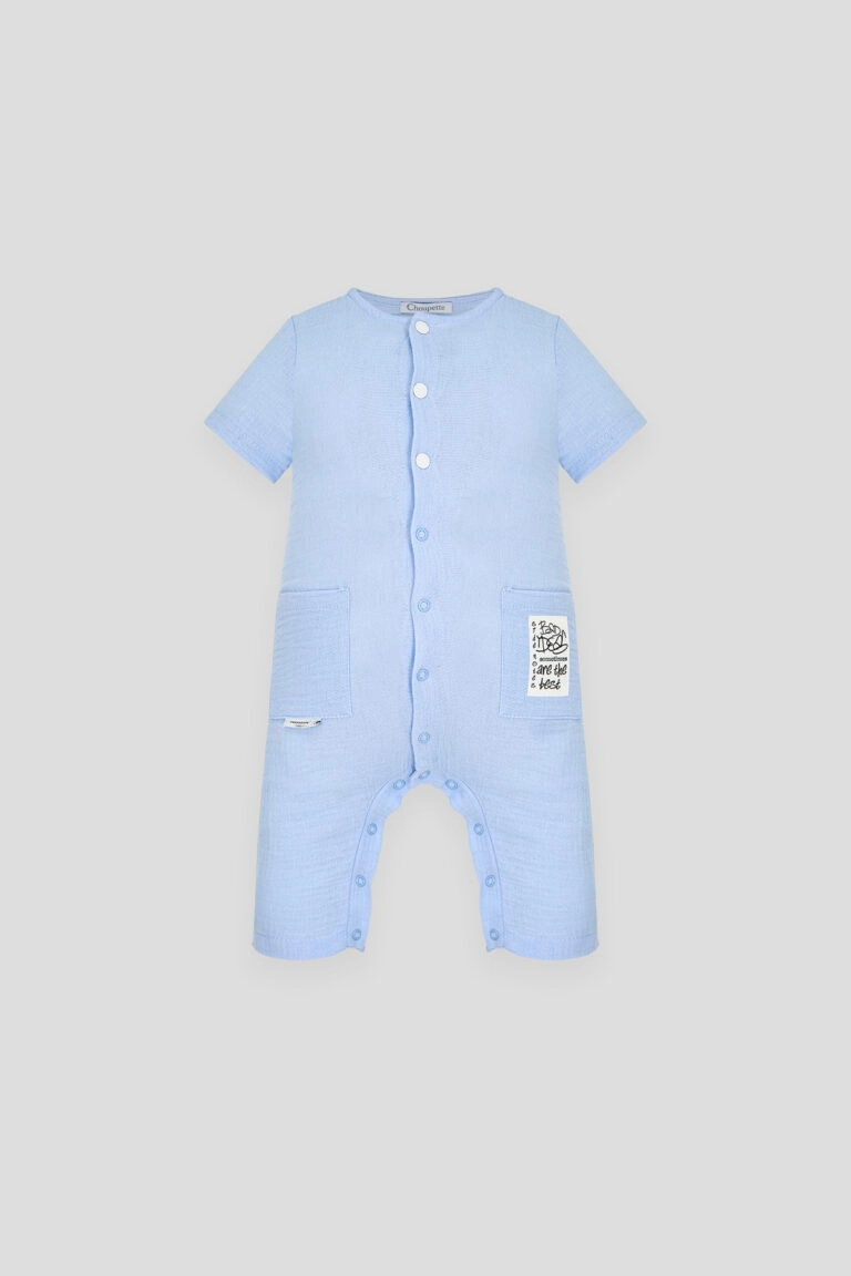 Комфортный детский песочник в нежном голубом оттенке станет отличным вариантом для тёплого сезона. Модель выполнена из лёгкой, приятной к телу ткани с мягкой фактурой, которая обеспечивает ... удобство и подходит для ежедневной носки. Свободный силуэт позволяет малышу свободно двигаться, а короткие рукава и укороченный низ делают изделие особенно практичным в жаркую погоду. Застёжка на кнопках по всей длине упрощает переодевание и уход. Два накладных кармана добавляют функциональности и завершают аккуратный внешний вид. Сдержанный дизайн дополнен небольшим текстовым акцентом, придающим модели современность. Такой песочник подойдёт для прогулок, отдыха и домашнего времени, легко сочетаясь с другими элементами гардероба и создавая лёгкие летние образы.