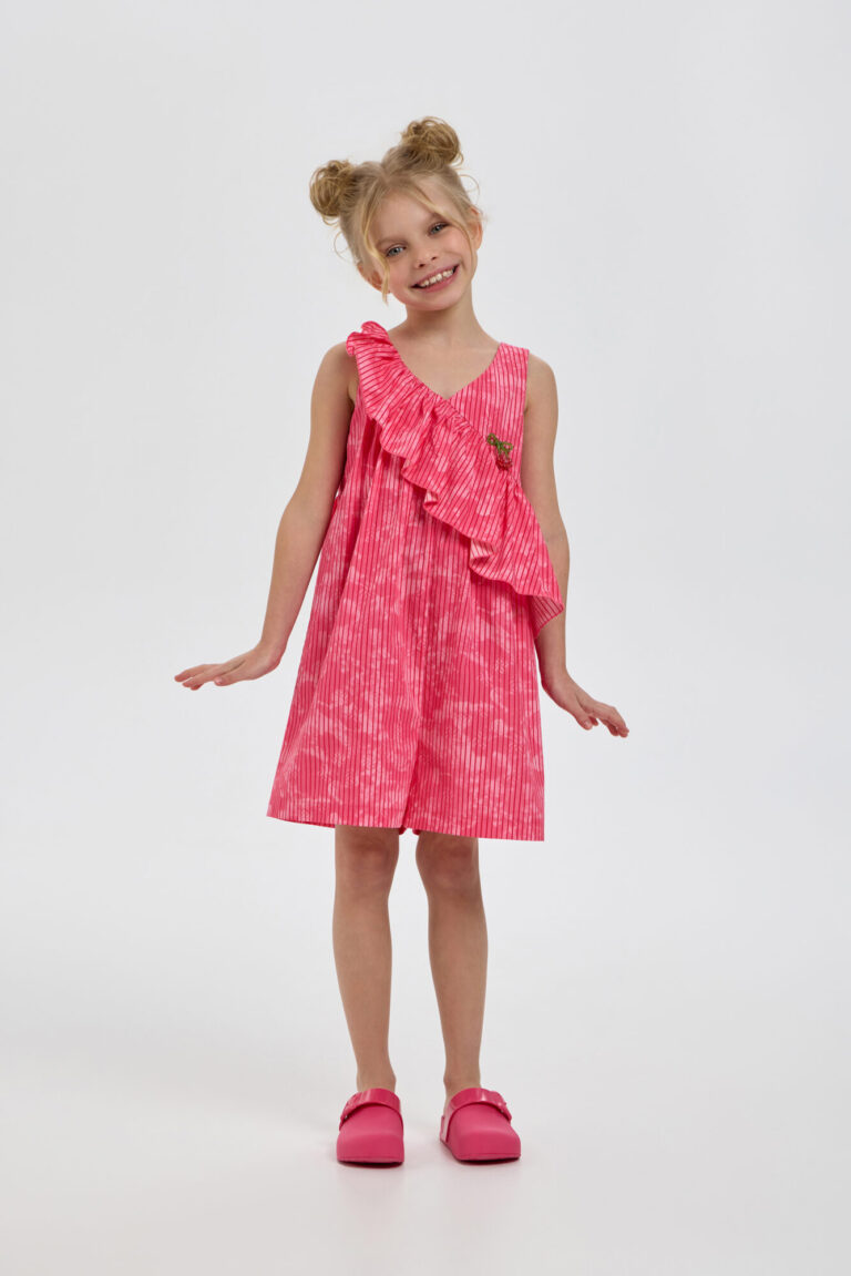 Яркий комбинезон для девочки - яркий представитель оригинального летнего образа для юных модниц! Модель свободного кроя выполненная из натурального хлопка станет самой любимой вещью маленькой принцессы. ... Декор в виде объемной рюши придает комбинезону изюминки, а декоративные элементы с бисером притягивают внимание. Очень комфортная модель идеально подходит для приятного летнего отдыха.