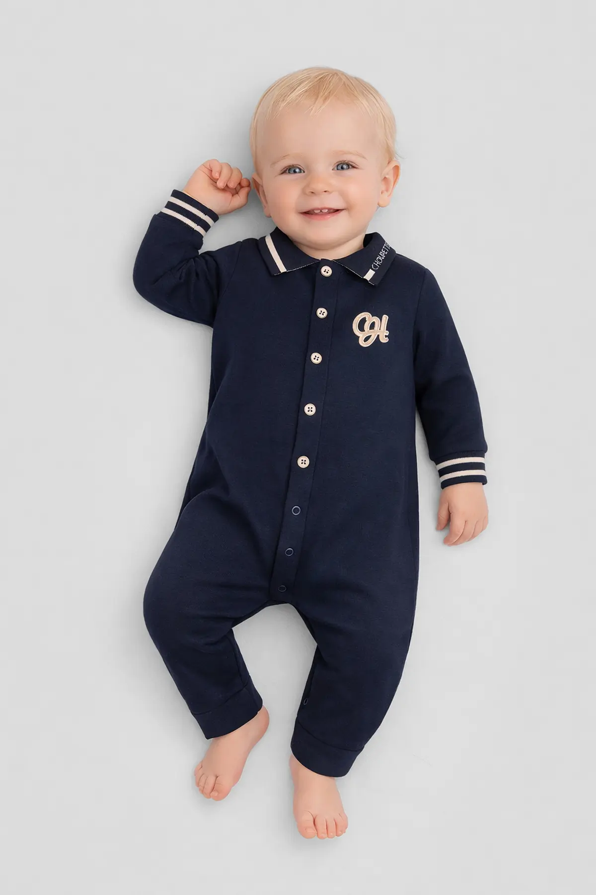Темно-синий детский комбинезон — это комфортный и модный вариант для малышей. Нежный, приятный к телу материал гарантирует маленькому ребенку удобство на протяжении всего дня. Благодаря продуманной ... застежке на кнопки по всей длине, переодевание становится максимально простым. Отложной воротник, дизайнерские кнопки и контрастные манжеты на рукавах добавляющими образу выразительности.