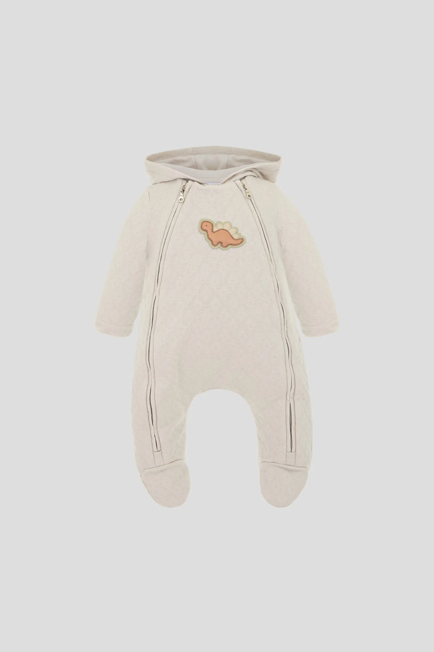 Утепленный детский комбинезон для мальчика — это идеальный выбор для прохладной погоды. Он выполнен из мягкого и приятного на ощупь хлопкового материала. Утеплитель, расположенный внутри, поддерживает ... оптимальную температуру, позволяя малышу чувствовать себя уютно при любой погоде. Двойная застежка по бокам не только добавляет стильный акцент, но и облегчает процесс переодевания. Декор в виде аппликации делает комбинезон еще более привлекательным. Комбинезон отлично подходит для прогулок на свежем воздухе.