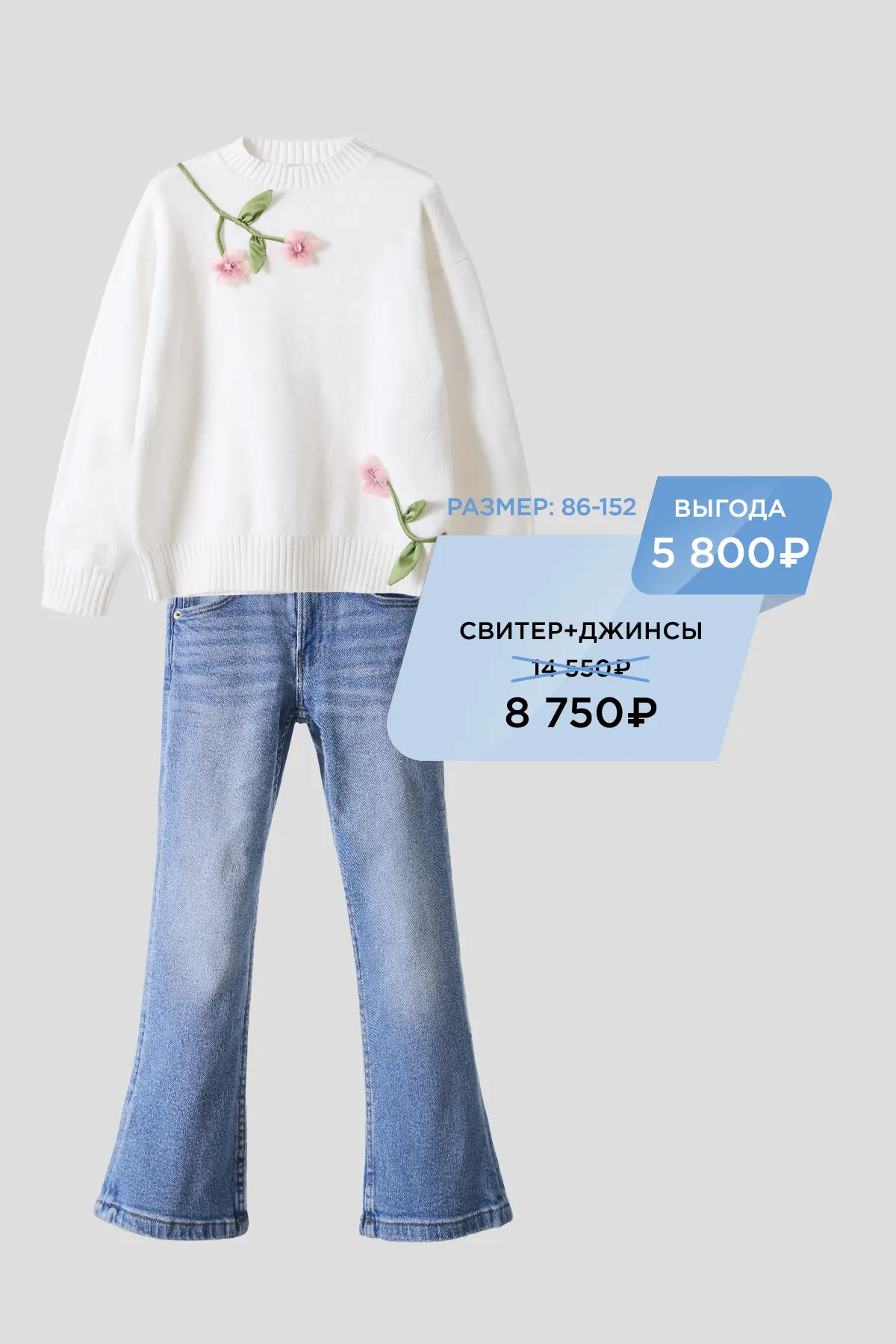 Материал: качественный деним — прочный, износостойкий, выдерживает активные игры и частые стирки.