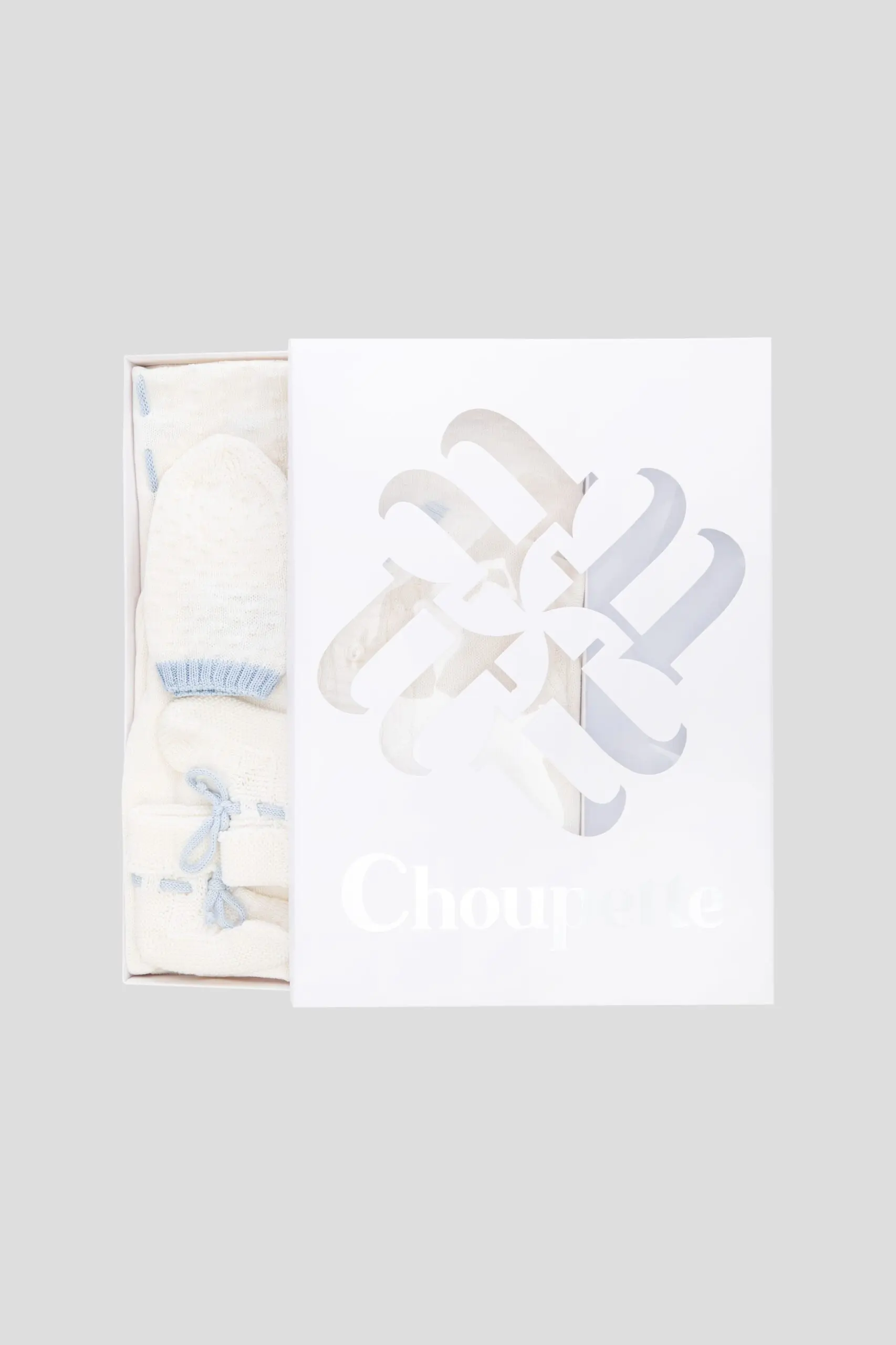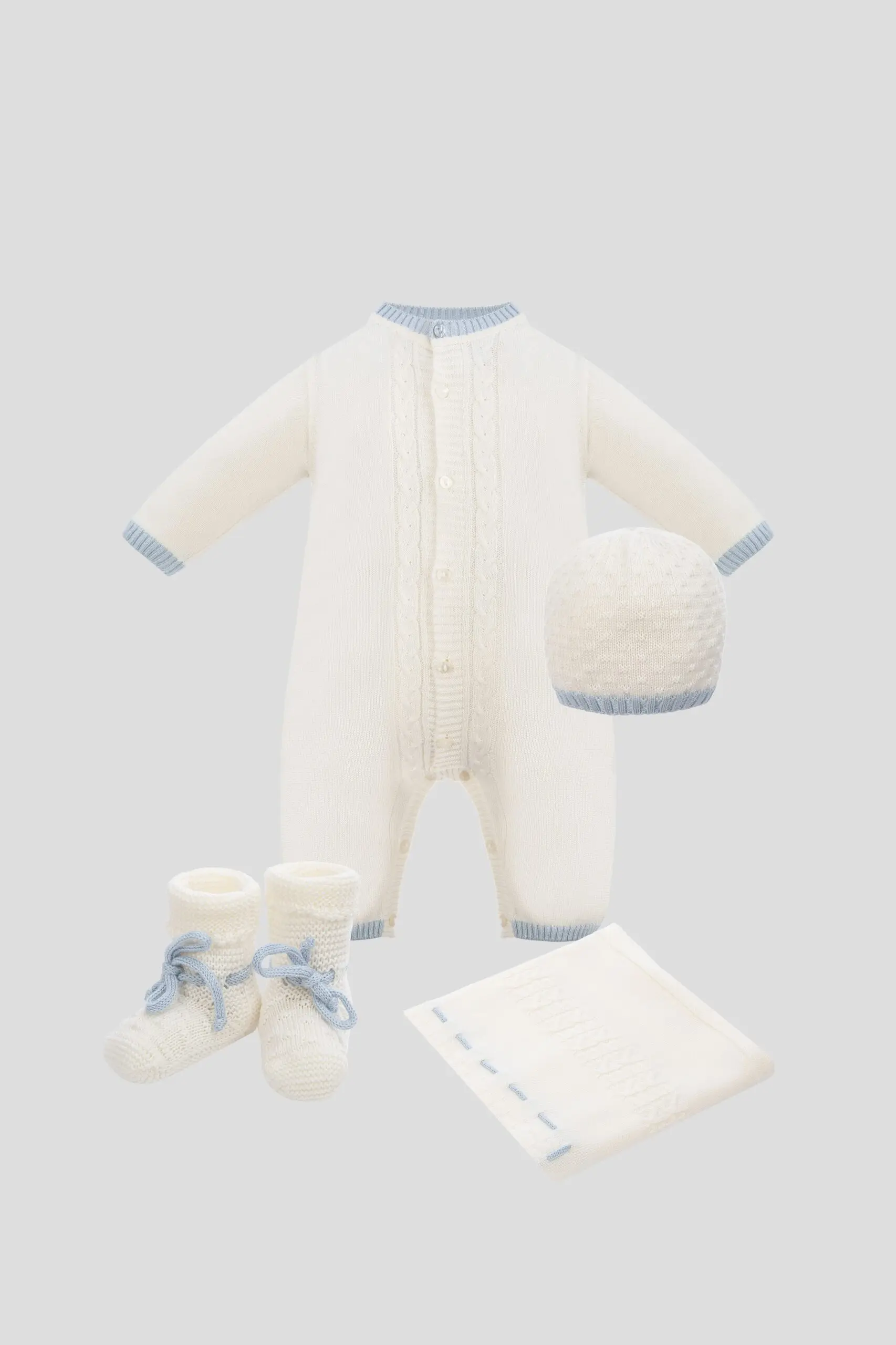 Комплект вязаный нарядный (плед, комбинезон, шапка, пинетки)