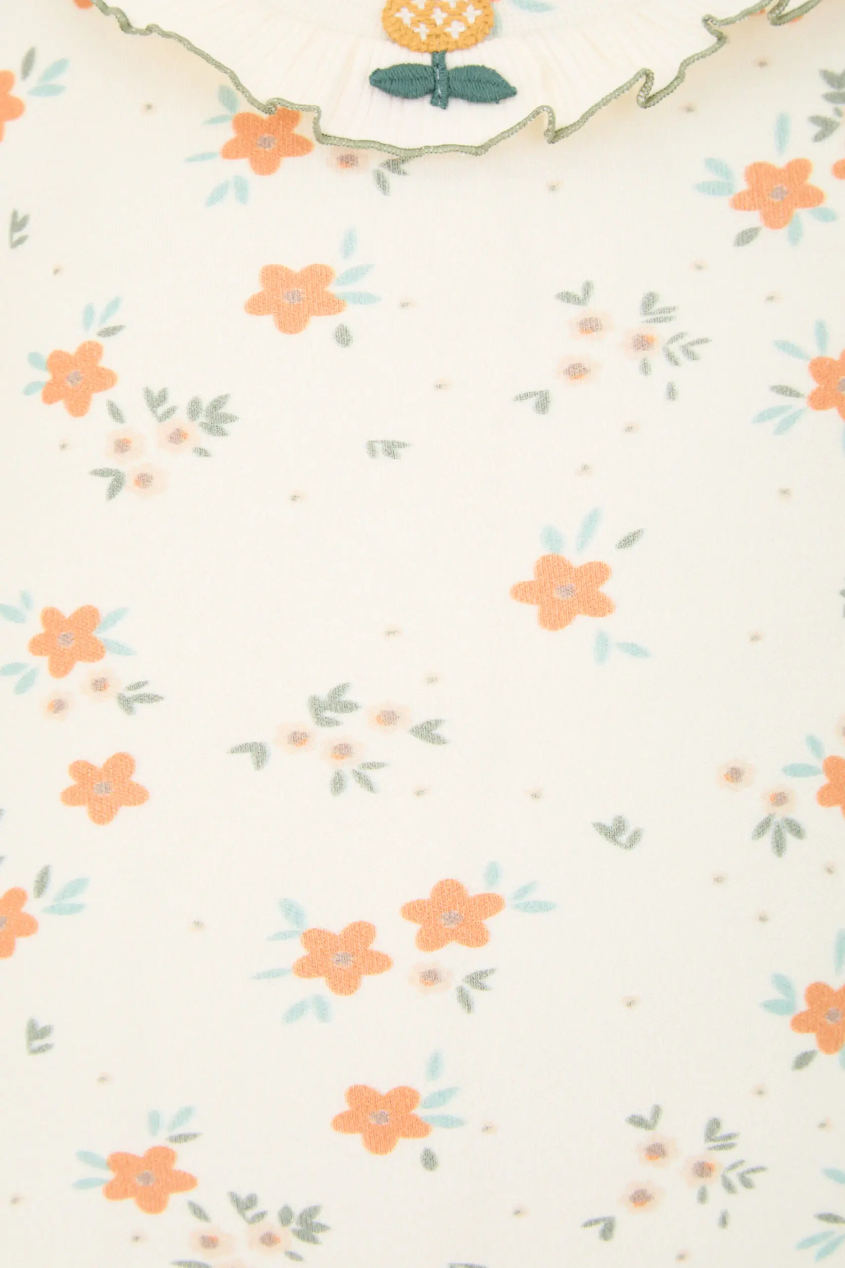 Детский комплект из боди, ползунков и шапочки изготовлен из мягкого и приятного к телу трикотажа. Модель украшена милым цветочным принтом. Боди оформлено кружевом и цветочной аппликацией ... на горловине. Застегивается на кнопки между ножек. Ползунки обладают удобной посадкой, которую обеспечивает эластичный материал и широкий пояс. Однотонная шапочка с цветочной нашивкой гармонично дополняет комплект. Натуральный материал комплекта хорошо пропускает воздух, обеспечивает комфорт и предотвращает перегрев.