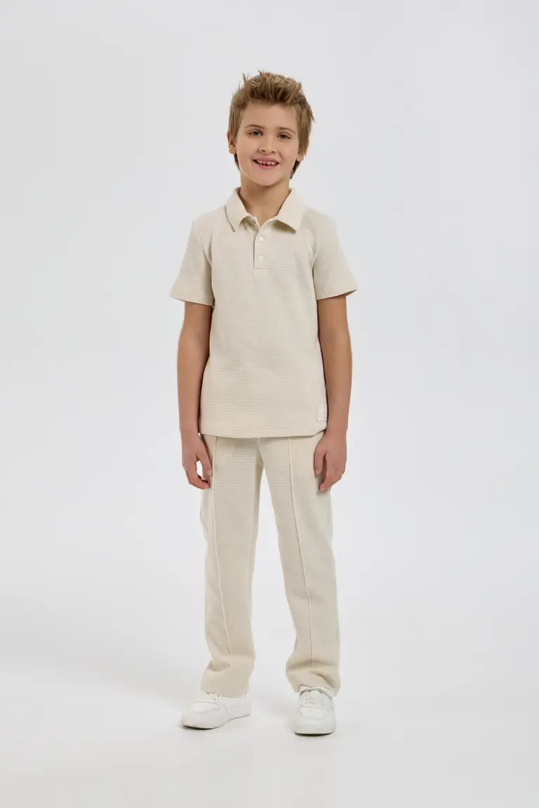 Трикотажный костюм для мальчика- стильный и практичный комплект состоящий из джемпера и брюк. Джемпер свободного кроя, с короткими рукавами. Классический отложной воротник с застежкой на кнопки. ... Прямые брюки дополнены элегантными стрелками. Эластичный пояс на резинке дополнен кулиской для оптимальной посадки по фигуре. Два боковых кармана добавляют функциональности.