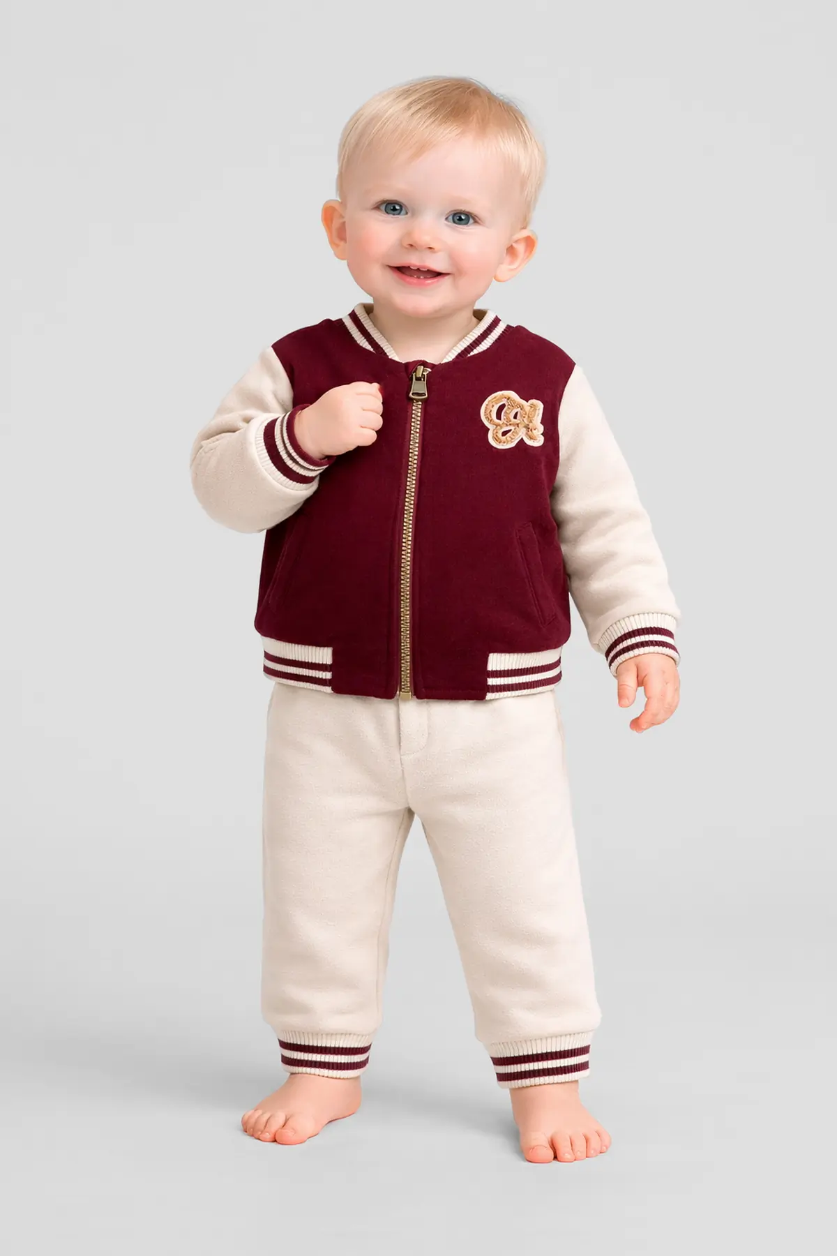 Трикотажный комплект из куртки и брюк — это модный и практичный ансамбль, созданный для подвижных малышей. Куртка застёгивается на молнию, что обеспечивает удобство при одевании. Эластичные ... манжеты на рукавах и по нижнему краю создают комфортную и точную посадку по фигуре. Брюки выполнены с мягким поясом на резинке, гарантирующим идеальное прилегание и ощущение удобства в течение дня. Высокий процент хлопка в составе ткани делает костюм приятным к телу, гипоаллергенным и безопасным для нежной детской кожи.