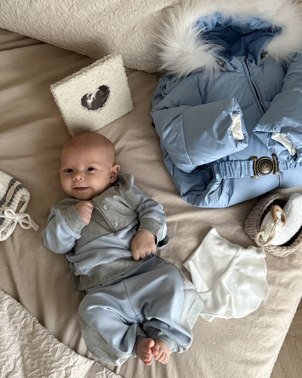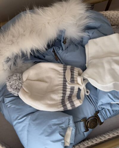 Зимний конверт-комбинезон – красивая модель для вашего мальчика. Разработан дизайнерами и обладает безупречным качеством исполнения. Капюшон комбинезона декорирован натуральным белым мехом, прекрасно сочетается с нежным голубым ... комбинезоном. Стильные дополнительные эмблемы служат прекрасным украшением комбинезона. На капюшоне есть мягкая резинка для обеспечения плотности прилегания. В комплект входит белая манишка (шарф-воротник). Натуральный гусиный пух отечественного производства отлично удерживает тепло - вашему малышу будет тепло и комфортно даже в очень холодное время года. Для стирки и ухода мех отстегивается. Конверт растет с вашим малышом, в нем сочетается конверт для новорожденного и комбинезон с закрытыми/открытыми ножками для деток до 18 месяцев. Такой комбинезон может быть прекрасным подарком малышу и родителям!