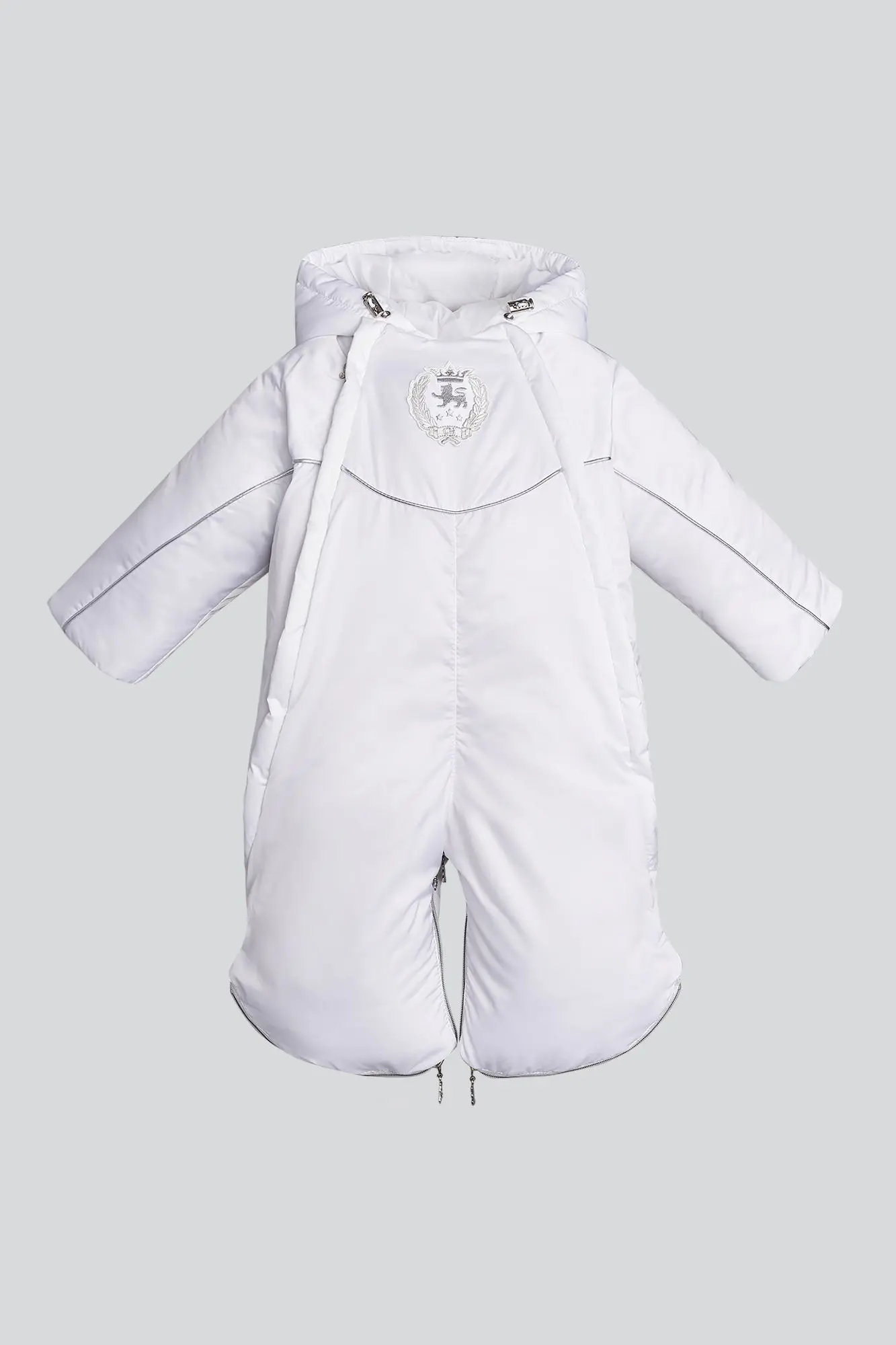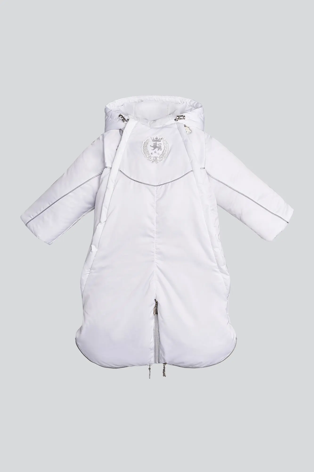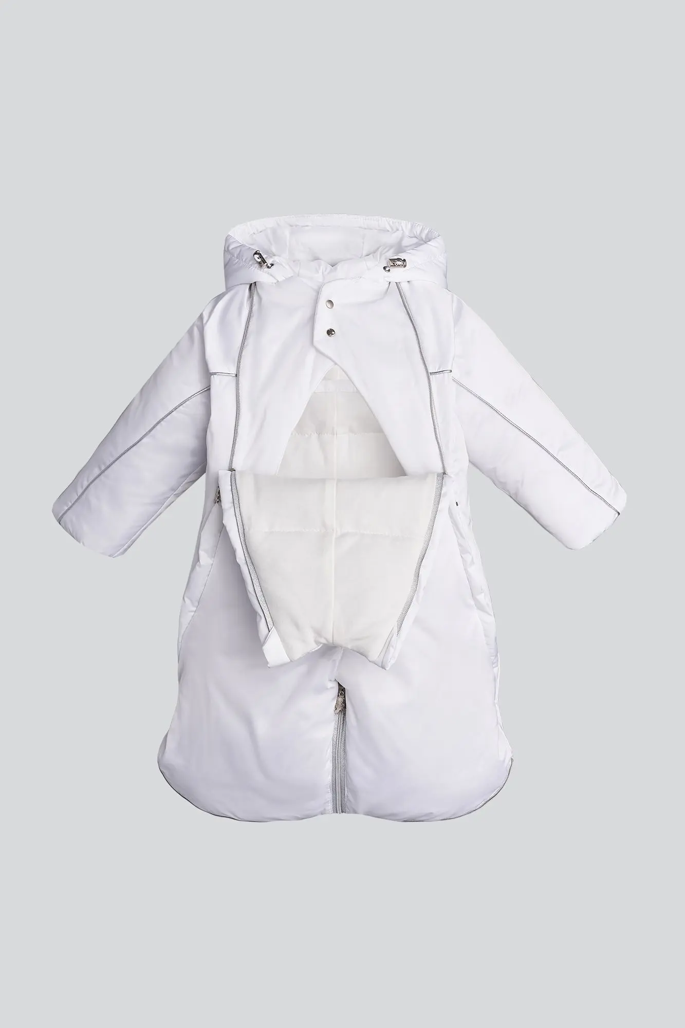 Однотонный конверт-комбинезон-трансформер цвета экрю для девочки — прекрасный образец верхней одежды на вырост.