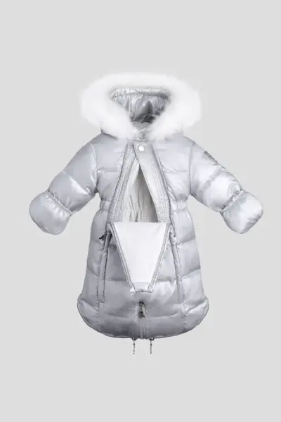 Эта теплая вещь с пуховым наполнителем не на один год: благодаря стратегически расположенным застежкам-молниям ... на следующий сезон уютный конверт легко превратится в удобный комбинезон, в котором малышка сможет сделать свои первые шаги на зимней прогулке. Еще две молнии в передней части изделия для быстрого переодевания крохи прикрыты ветрозащитными планками. На брючинах предусмотрены отвороты, что позволит при необходимости удлинить их на пару размеров.