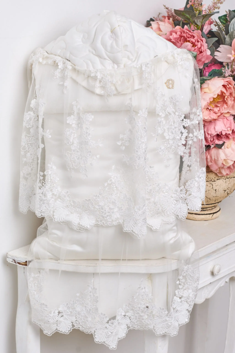 Конверт на выписку с ажуром застегивается на удобные "молнии" по бокам, облегчая обращение с изделием. Богатство декора никого не оставит равнодушным!