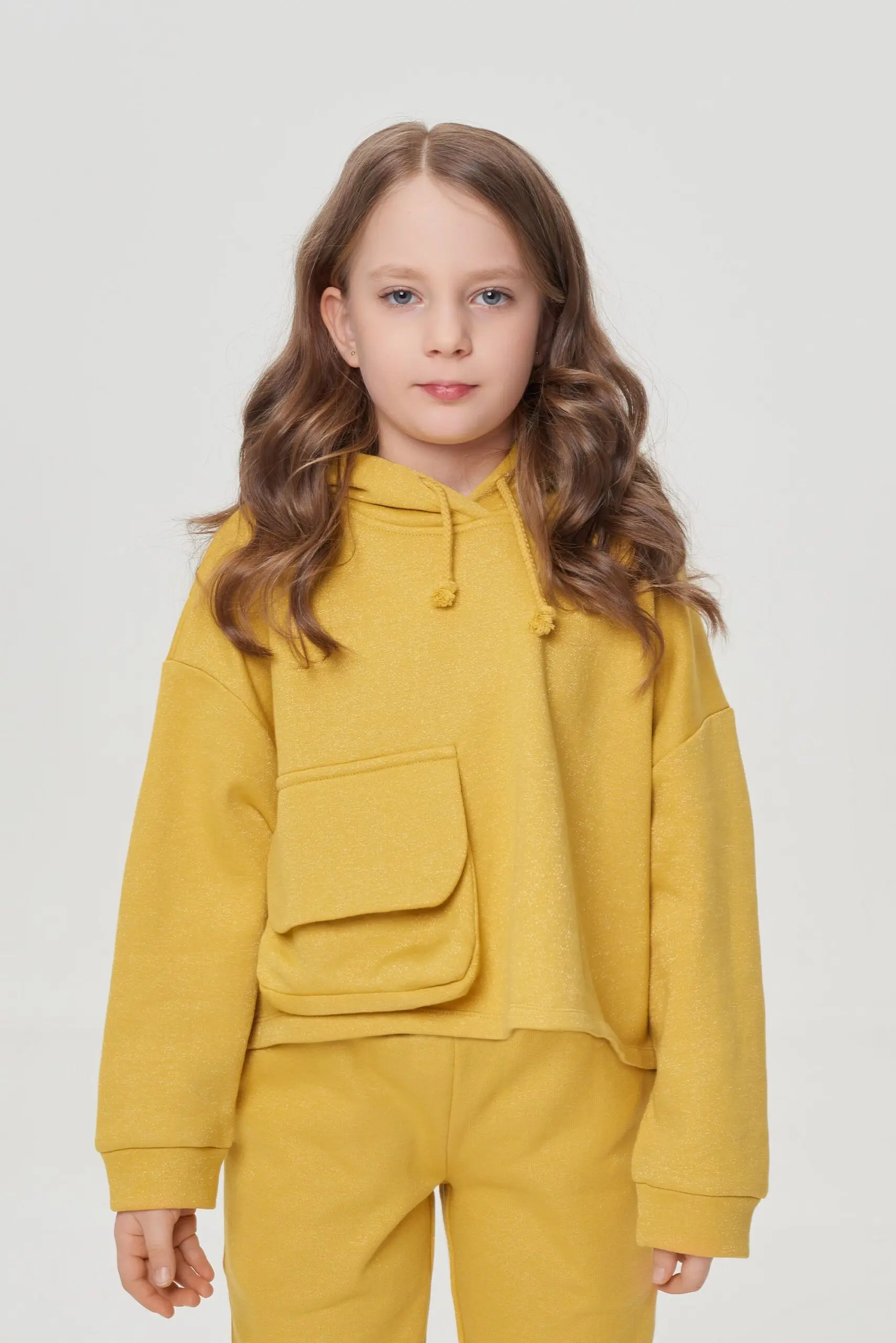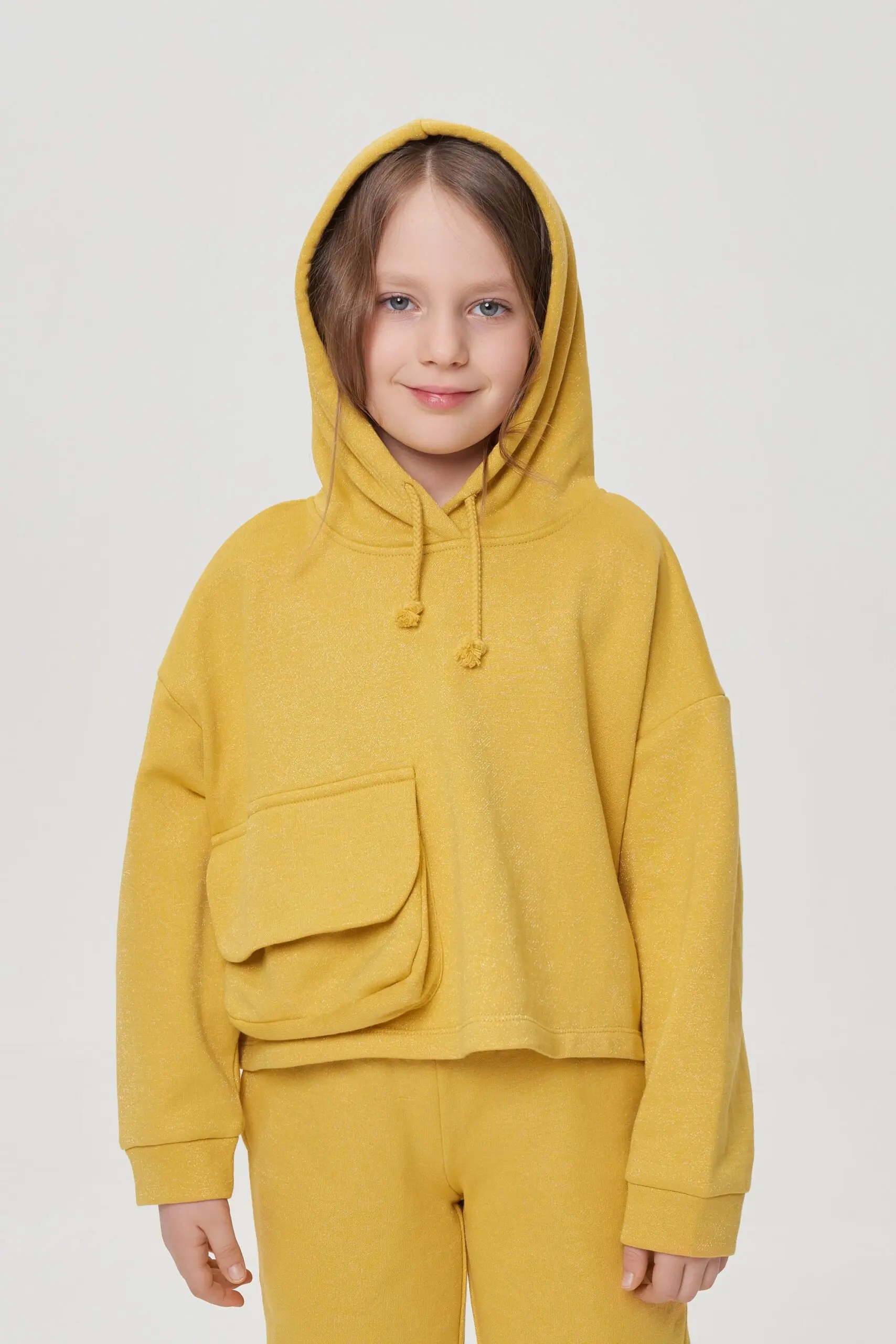 Костюм состоит из укороченного худи с капюшоном.