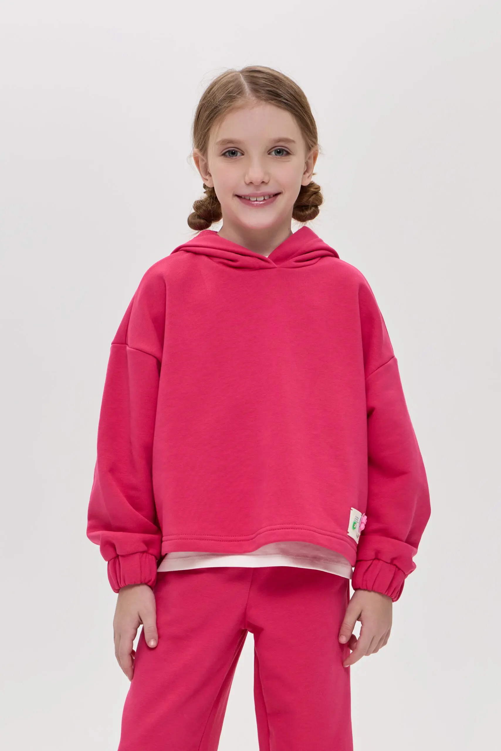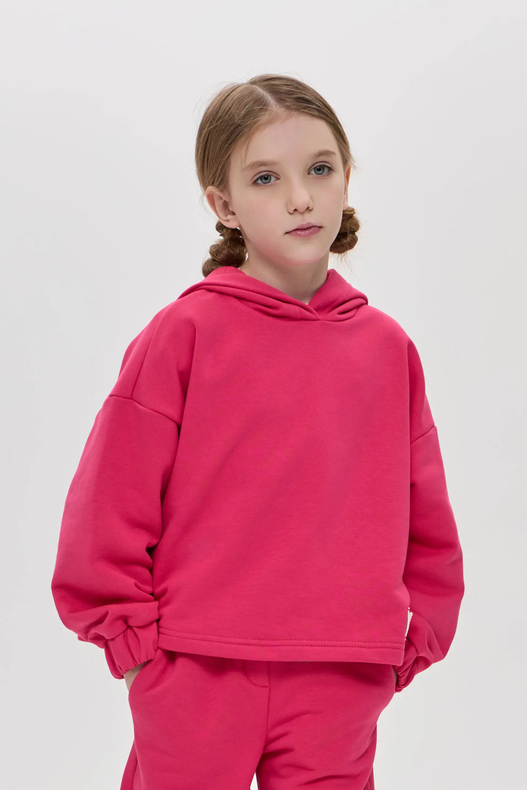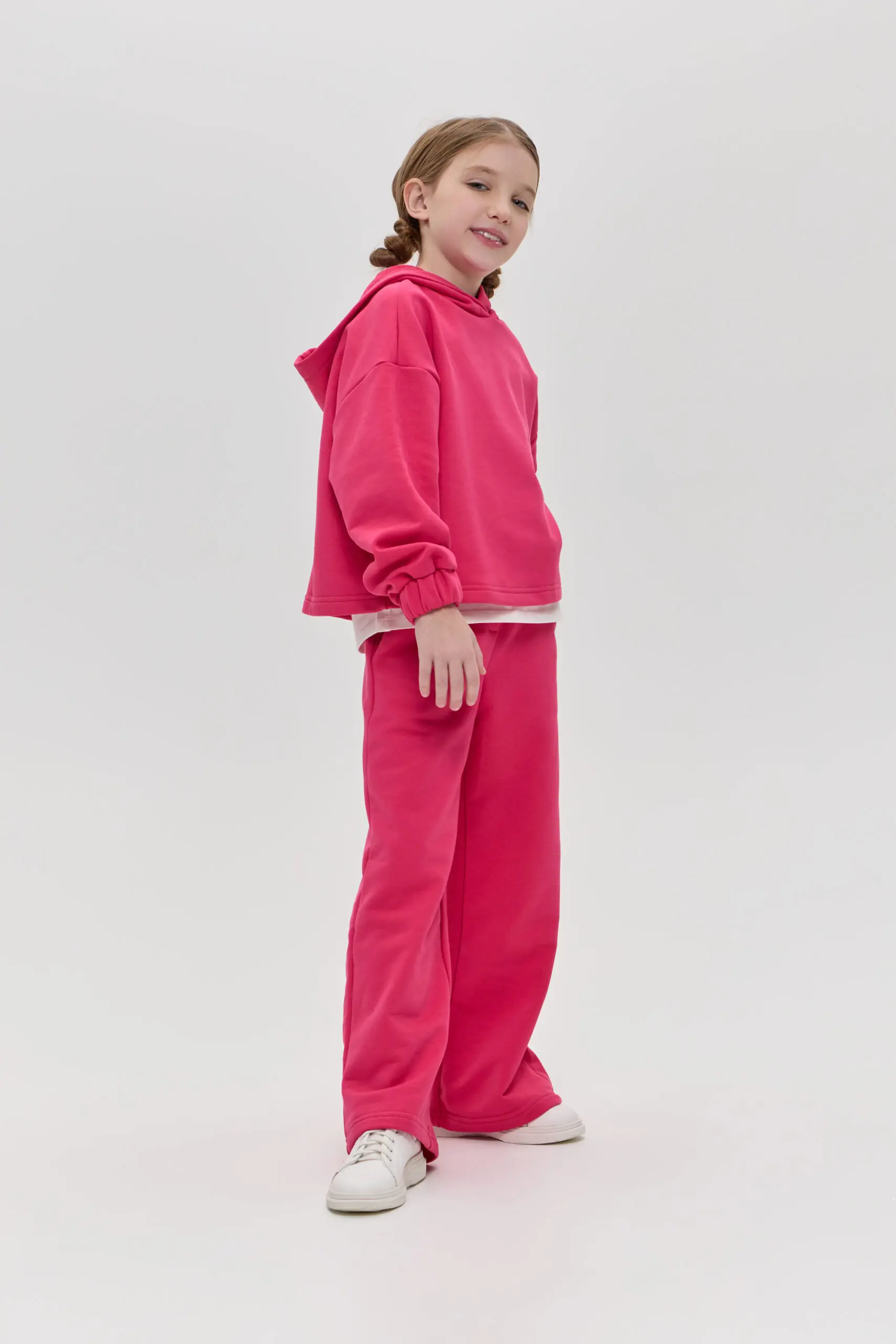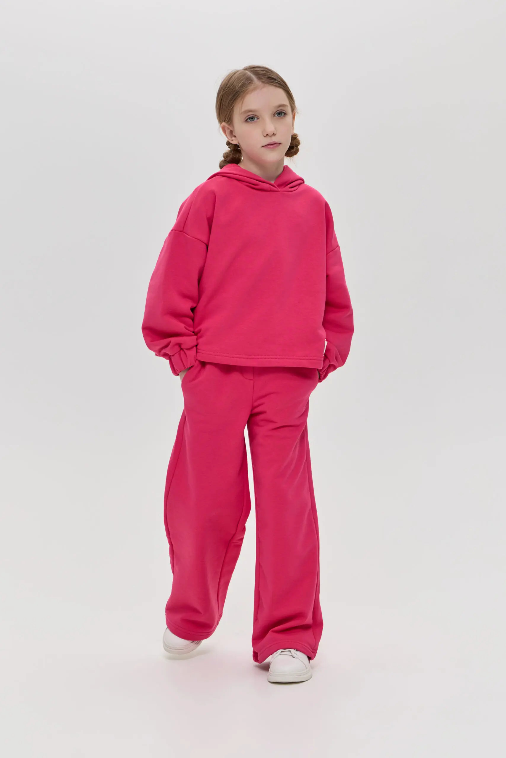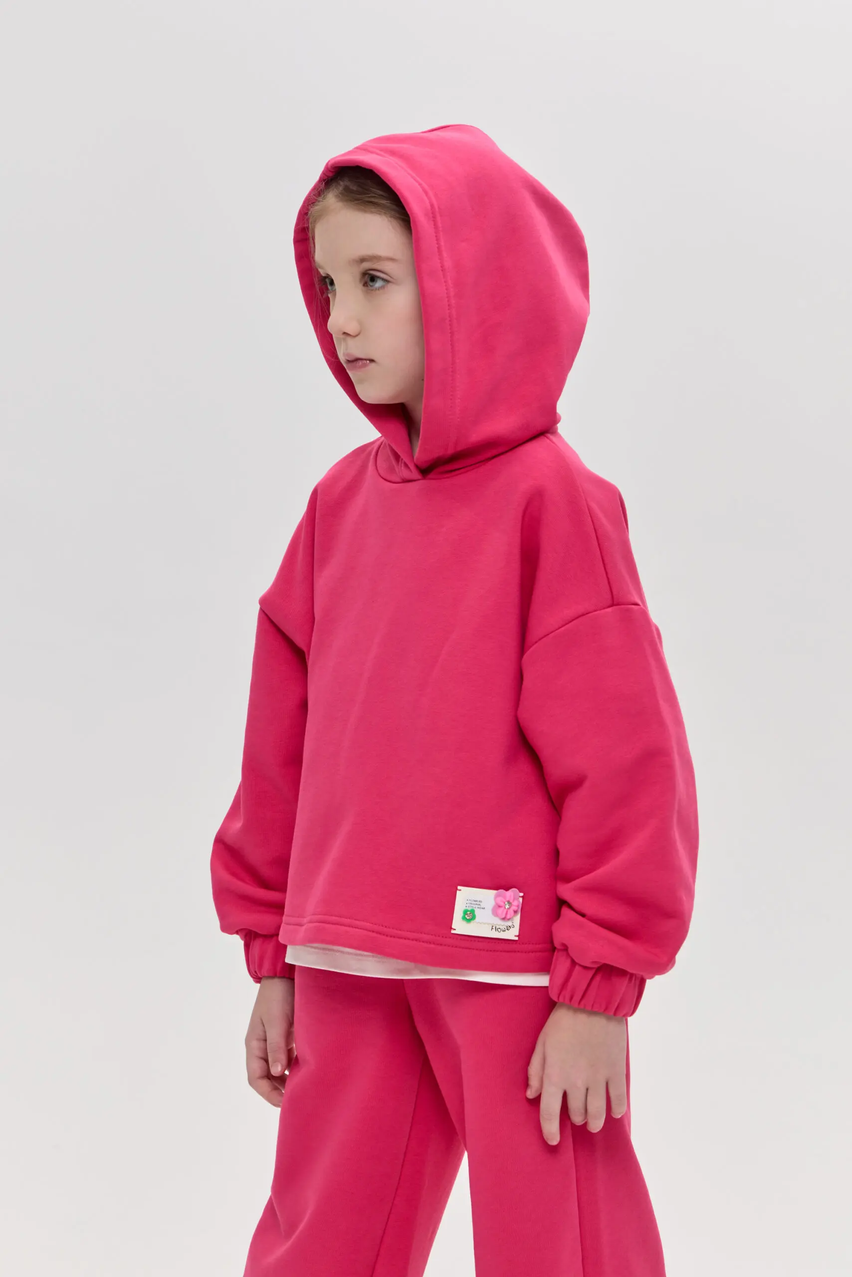 Костюм из футера для девочки безусловно, станет настоящим хитом этого сезона. Его основными элементами являются удлиненный свитшот с глубоким капюшоном и удобные брюки. Благодаря тому, что ... изделие выполнено из футера, ребенок не будет замерзать в прохладную ветренную погоду. Его уникальная структура плетения позволит сохранить его первоначальные качества и внешний вид. Костюм идеально подходит для активных прогулок, занятий спортом или просто для комфортного времяпрепровождения дома. Яркий цвет и стильный дизайн делают его привлекательным для девочек, а удобство и практичность — отличным выбором для родителей.