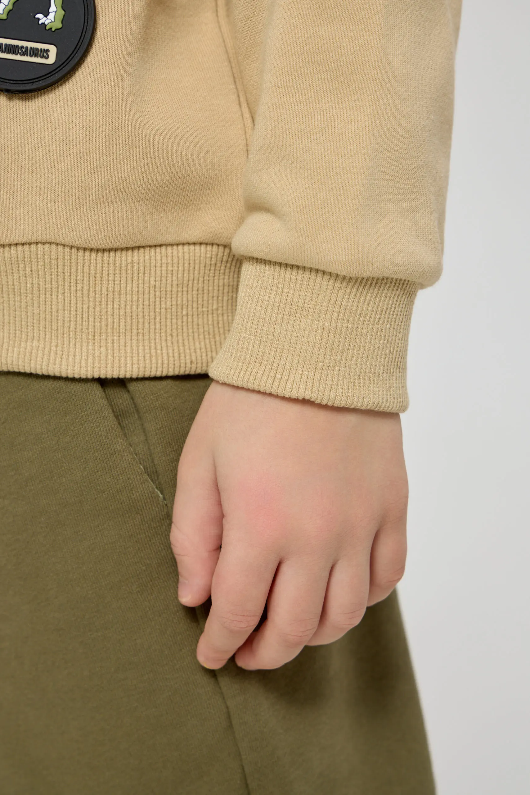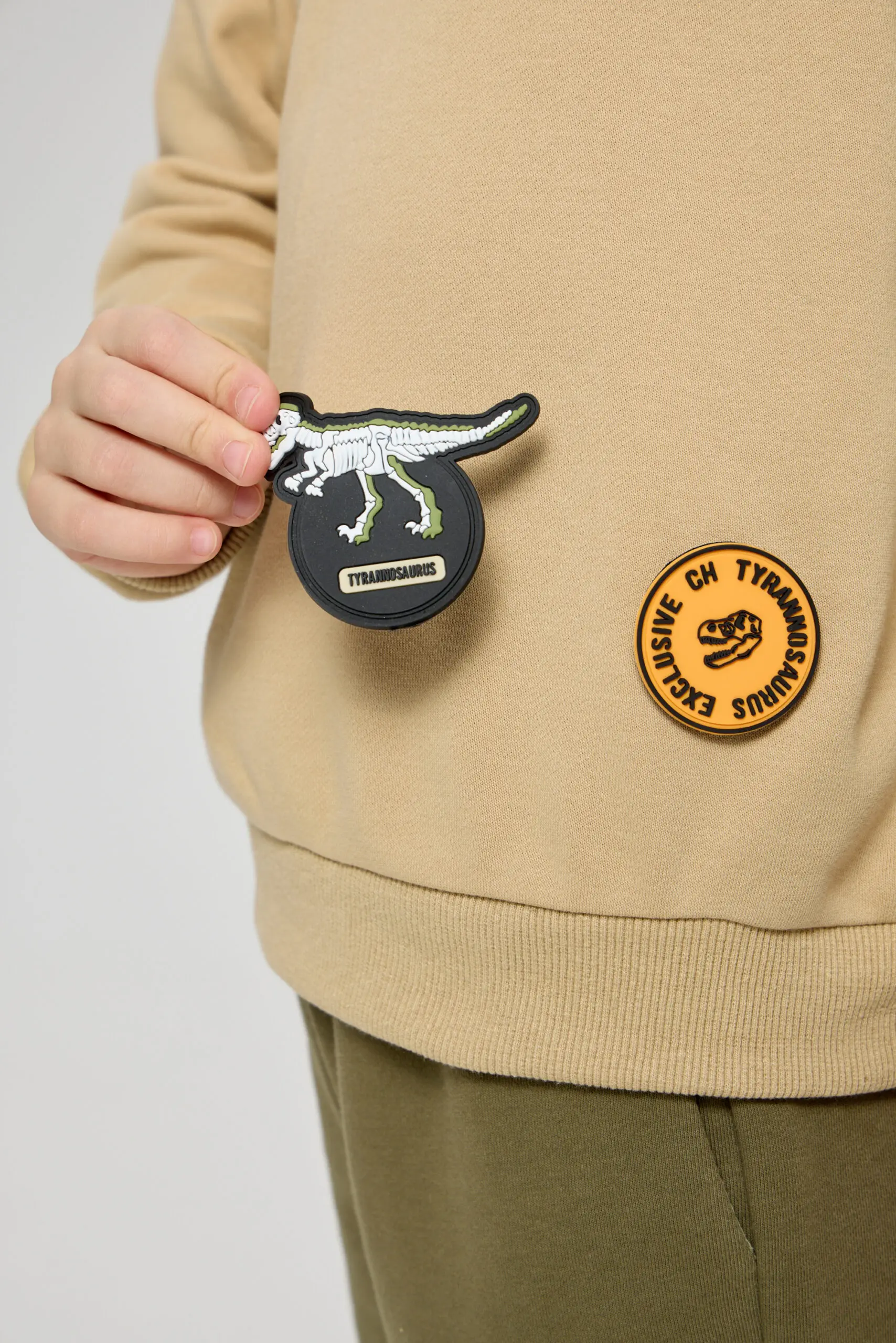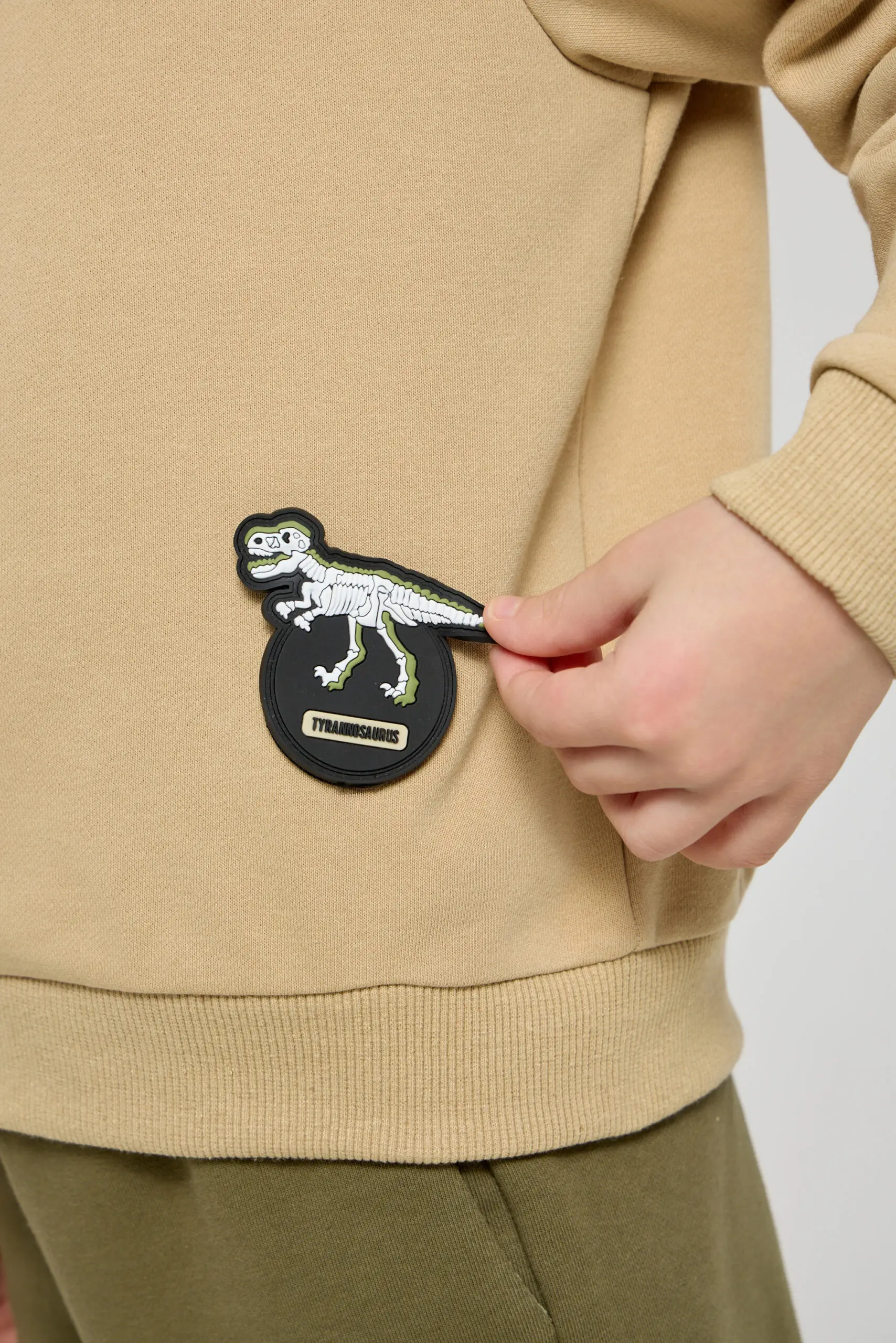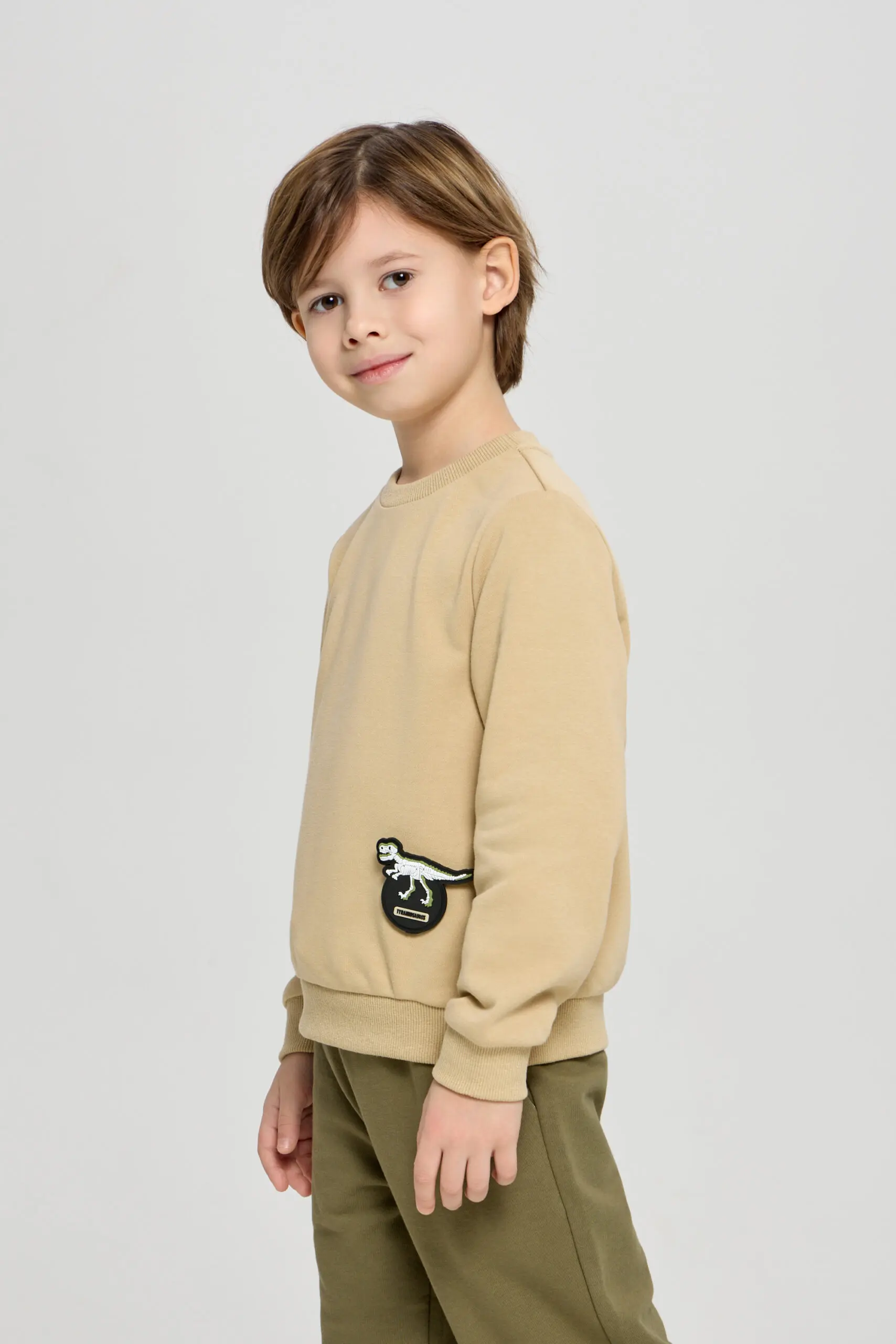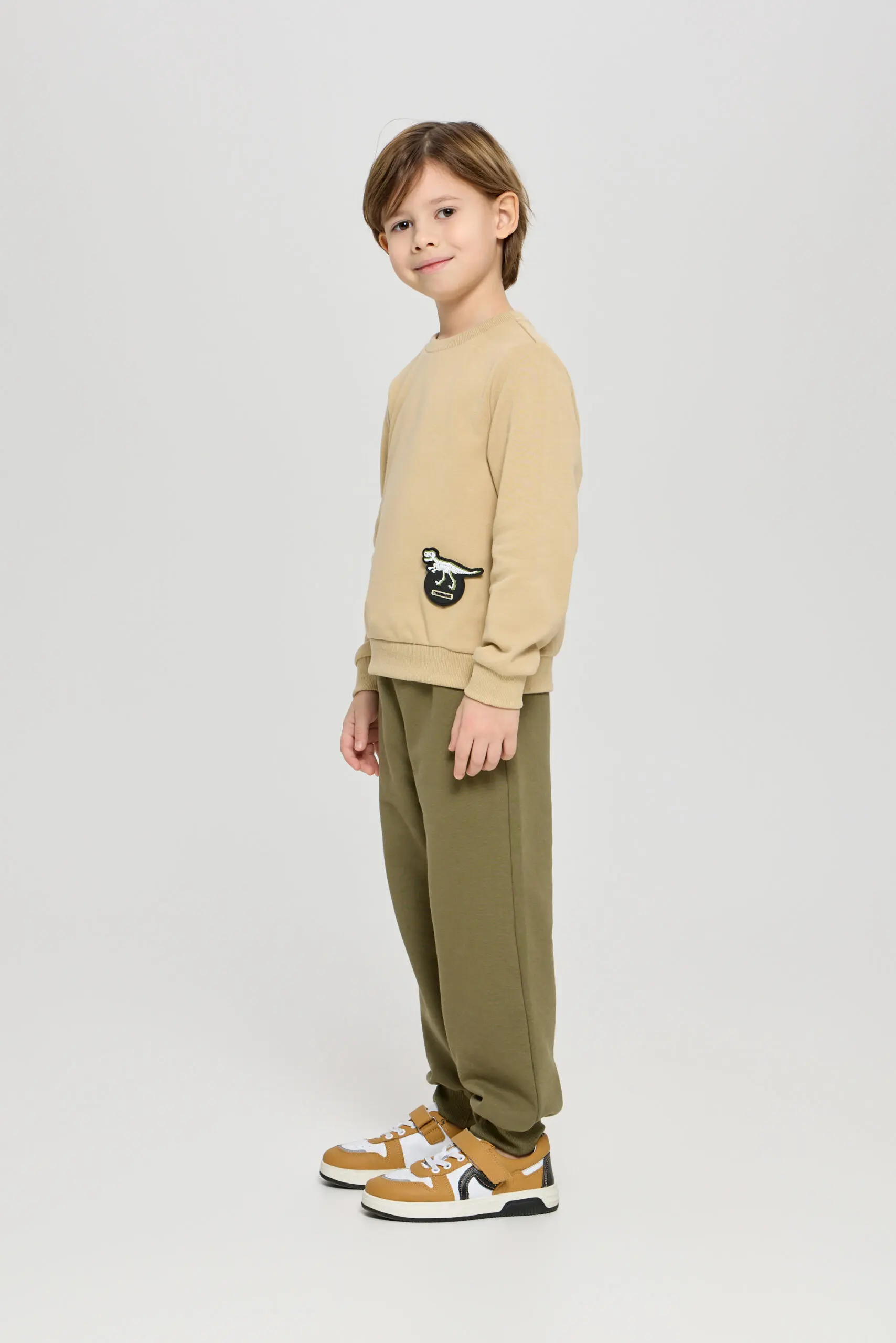 Детский костюм из футера, состоящий из свитшота и брюк, — это отличный выбор для активных детей. Модель выполнена из мягкого и теплого футера. На передней части ... свитшота яркое изображение динозавра, которое обязательно привлечет внимание ребенка. Декор в виде динозавра съемный. Брюки выполнены на эластичном поясе с кулисой, что обеспечивает удобную посадку. Брюки свободного кроя обеспечивают комфорт и позволяют ребенку активно двигаться, не стесняя его движений. Костюм идеально подходит для повседневной носки, прогулок на свежем воздухе или домашних игр.