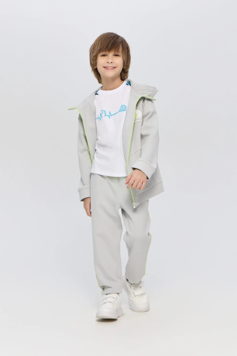 Спортивный костюм для мальчика, состоящий из бомбера и брюк идеально впишется как в повседневный, так и в спортивный гардероб. Бомбер свободного кроя с контрастной застежкой на ... молнию. Длинные рукава на манжетах. Удобные и вместительные карманы предназначены для хранения необходимых мелочей. Модный капюшон и оригинальное оформление добавляют привлекательности. Прямые брюки оснащены эластичной резинкой на поясе, которую можно регулировать кулиской. Яркие неоновые лампасы по бокам делают эту модель не просто стильной, а ультрамодной.