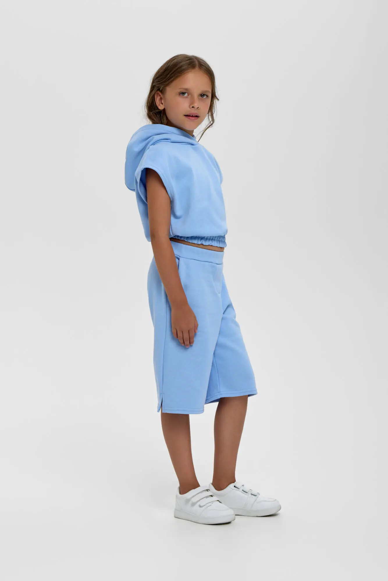 Костюм из футера толстовка-кроп и шорты