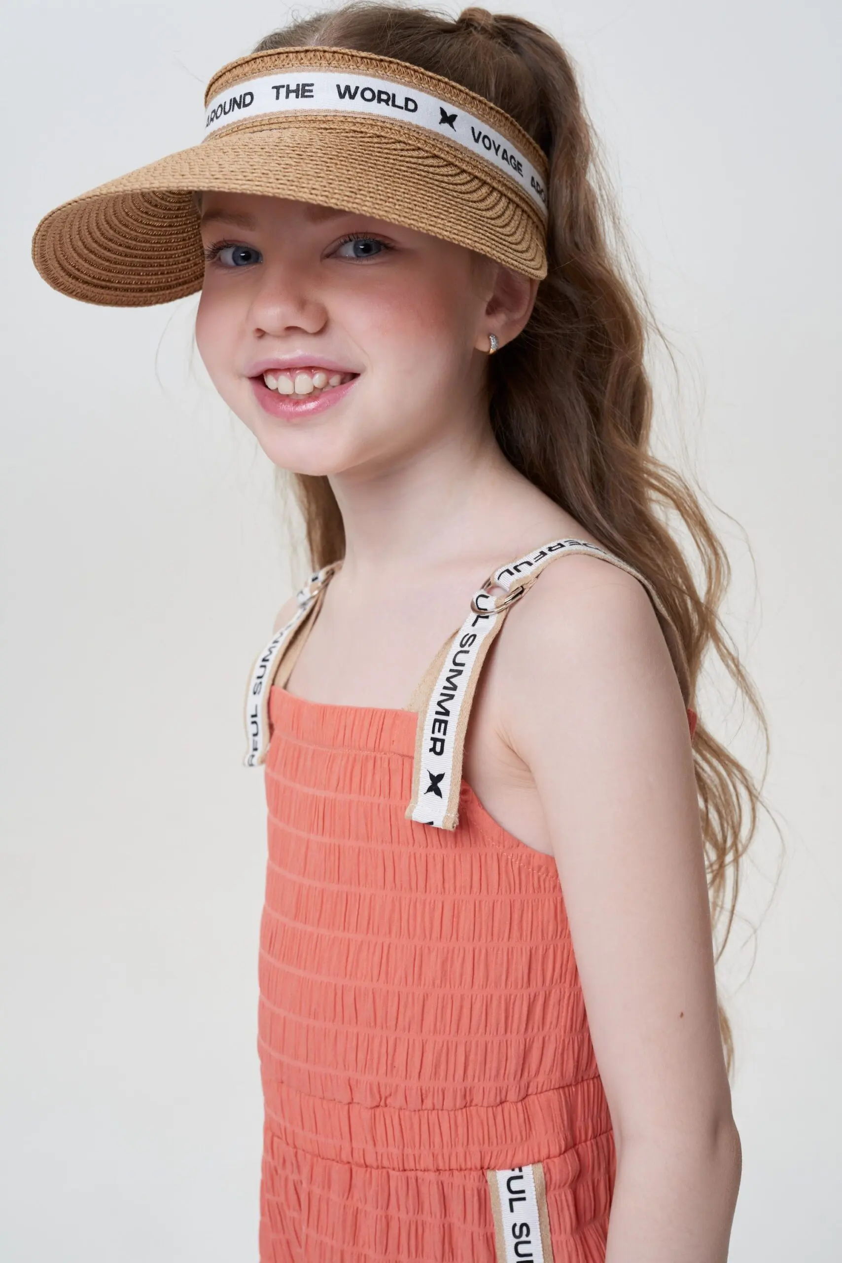 Оригинальный, но очень стильный предмет гардероба для девочки, один из самых интересных трендов в наступающем сезоне. Прекрасный головной убор для летнего отдыха! Надежная защита глаз от ... вредного ультрафиолетового излучения − а голова при этом совершенно не потеет. Элегантная модель с широким козырьком декорирована контрастной лентой с дизайнерским текстовым принтом. Эффектный аксессуар позволит юной принцессе быть в центре внимания.