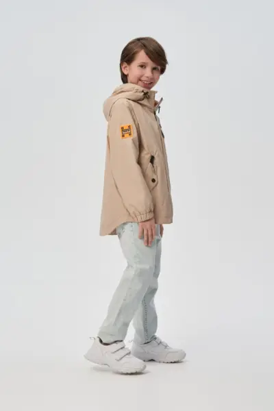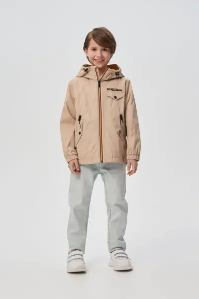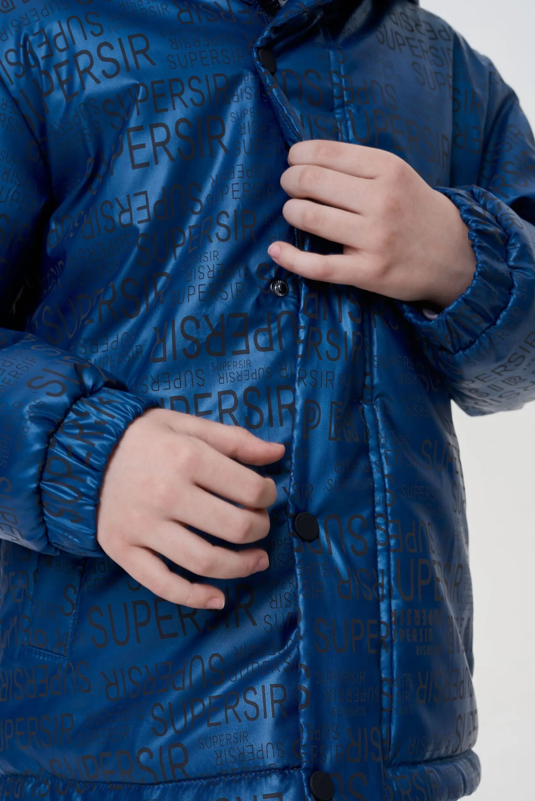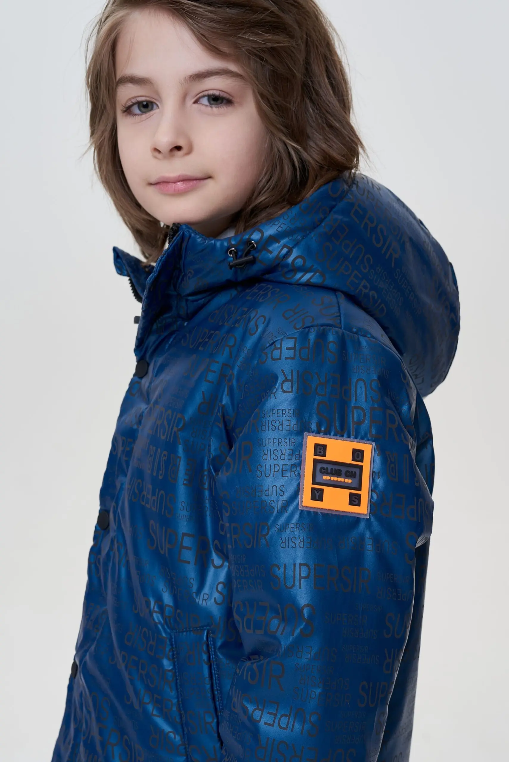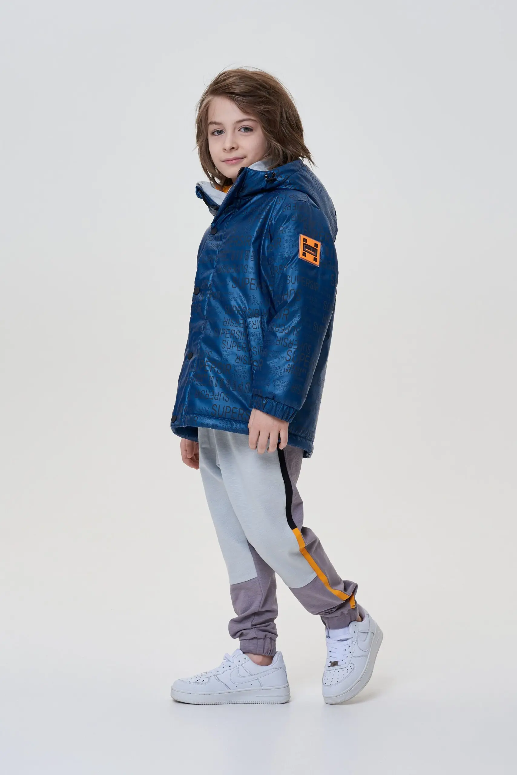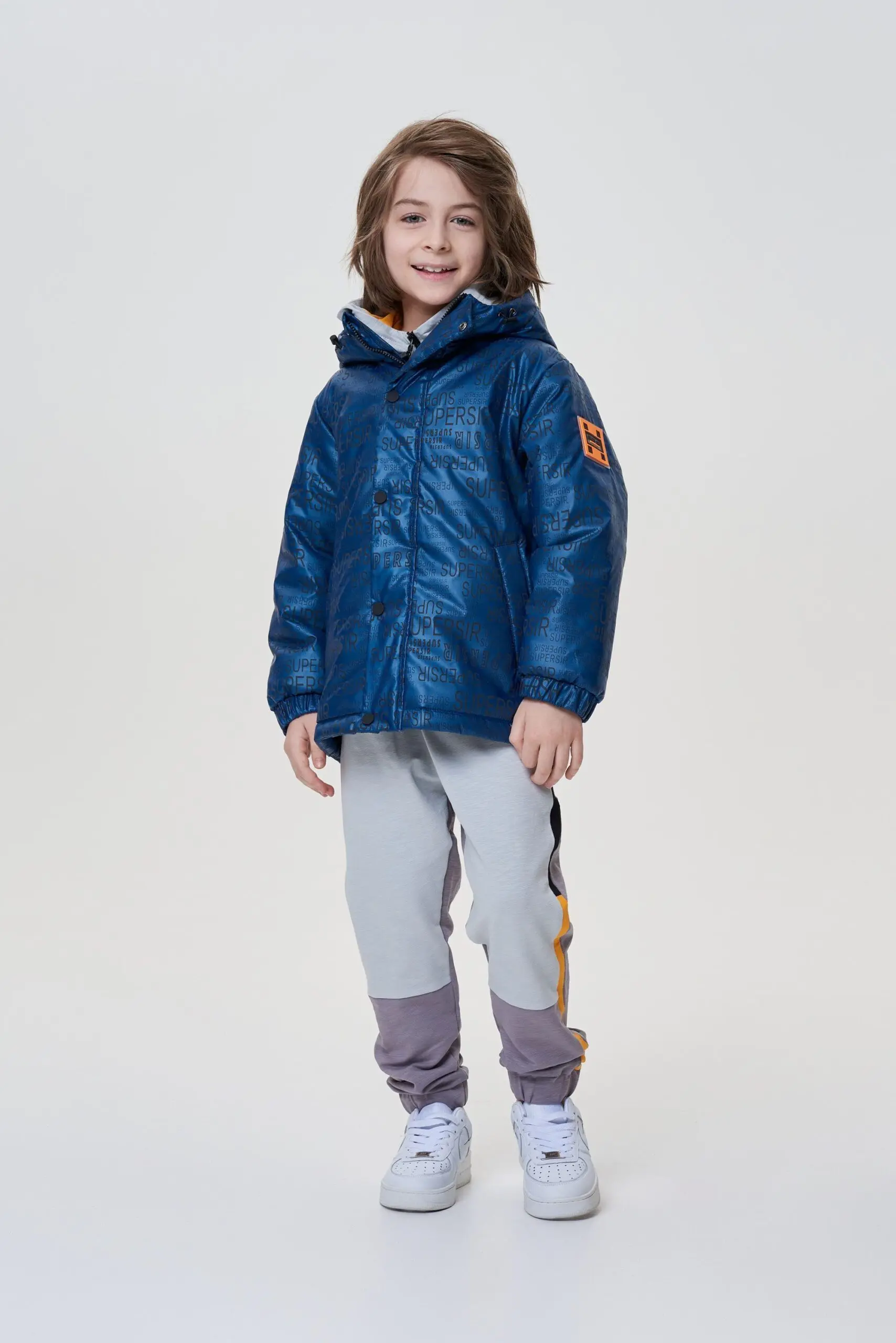Утепленная куртка с капюшоном для мальчика соединяет в себе удобный крой и актуальную асимметрию отделки. Модель прямого силуэта, с двумя врезными карманами по бокам. Центральная застежка-молния ... прикрыта ветрозащитной планкой. Рукава на широкой резинке. Не левом рукаве и по краю правого кармана контрастные шевроны. Еще больше привлекательности модели добавляет ненавязчивый буквенный принт на синем фоне.