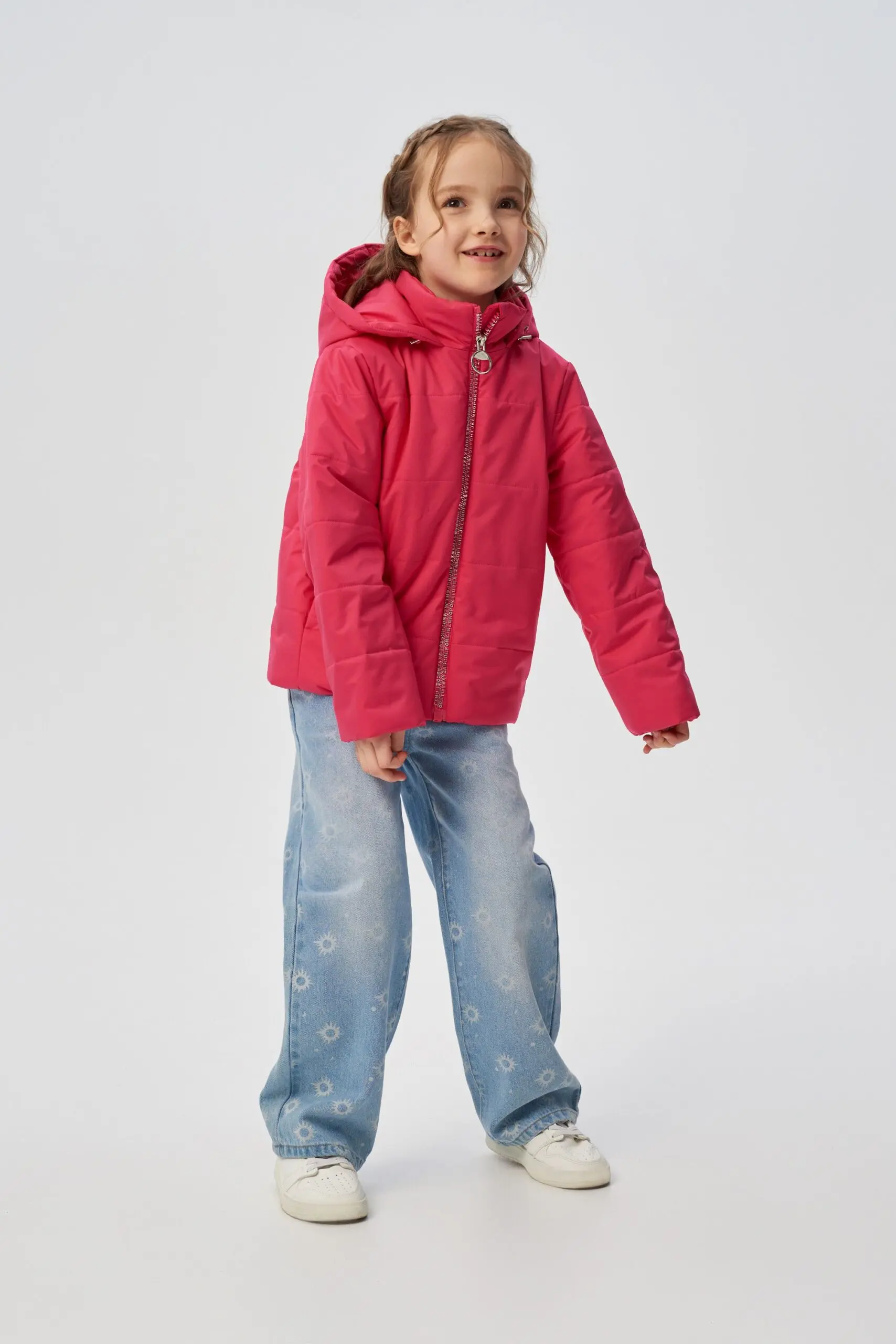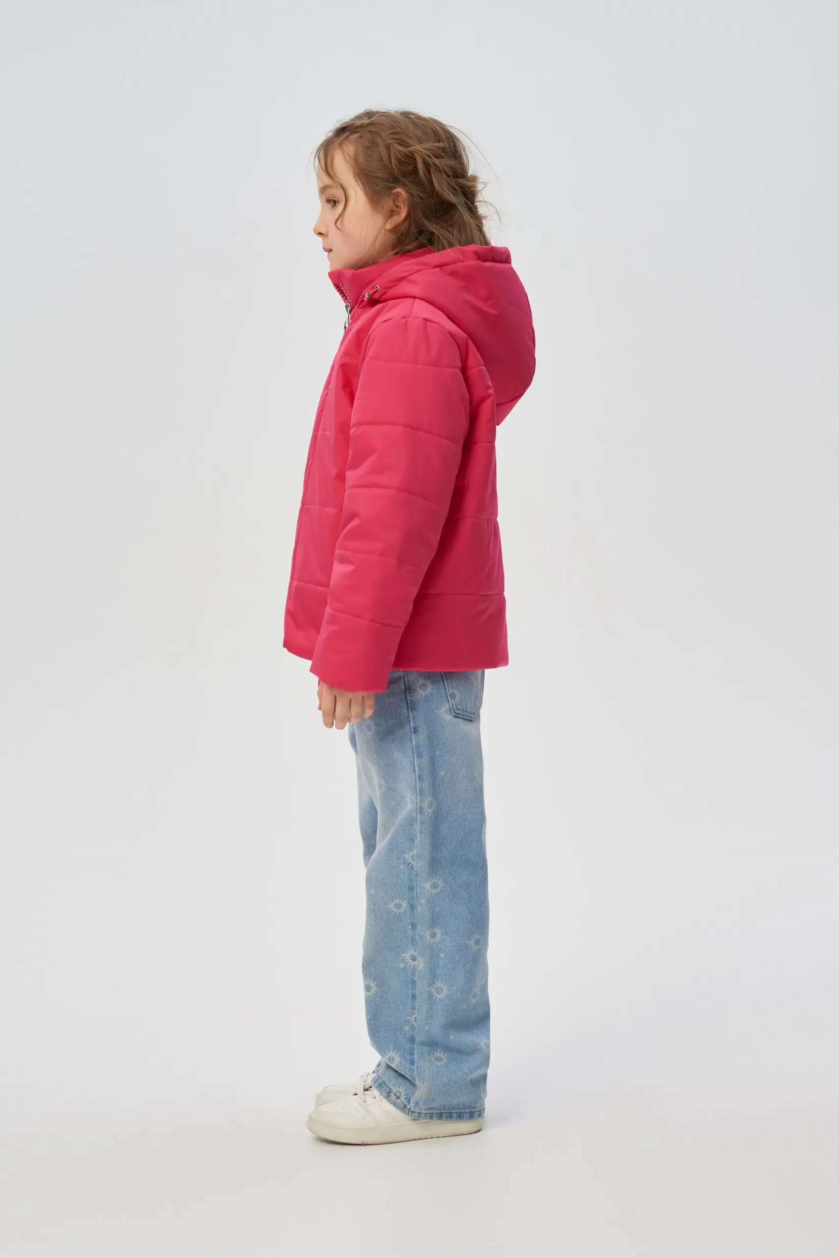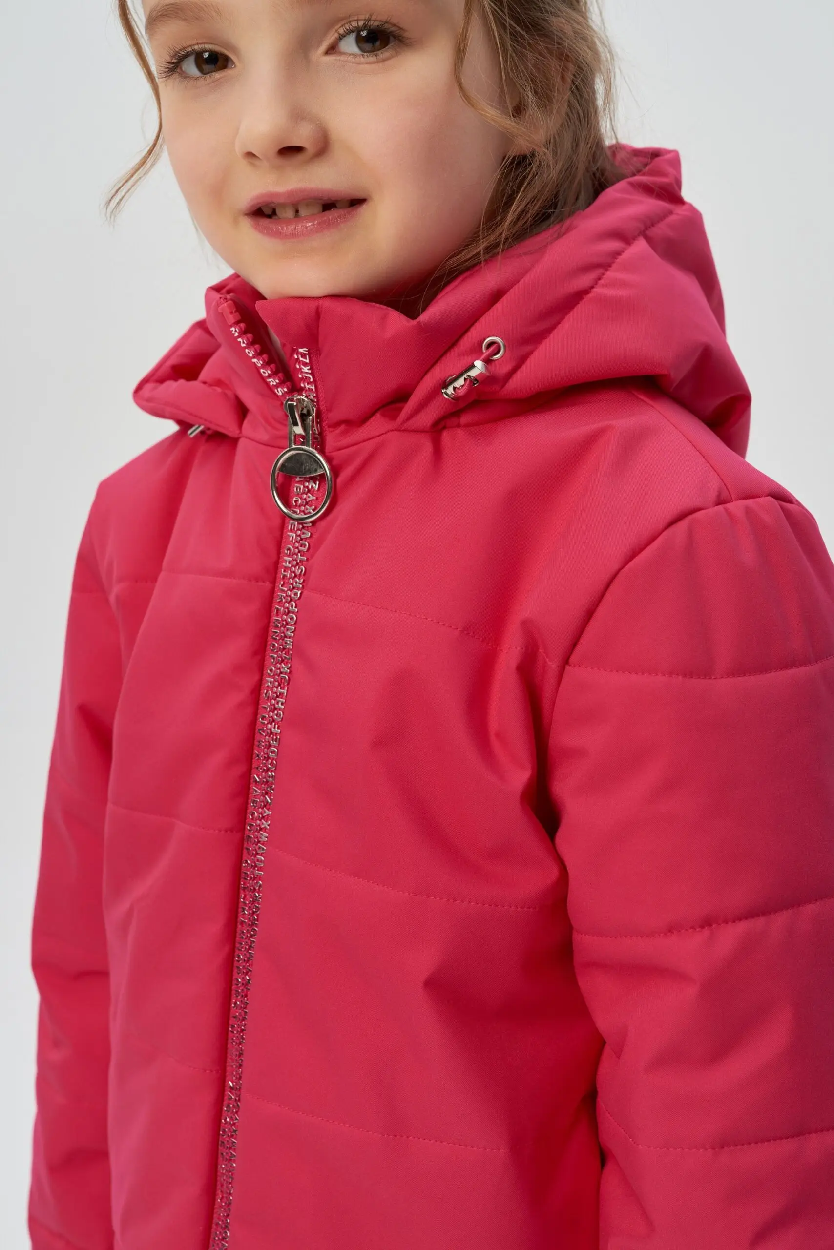 Лавандовый цвет и красивый переливчатый блеск — в трендах демисезонной моды. Стеганая утепленная куртка для девочки надежно сохранит тепло и защитит от непогоды. Модель удобного прямого ... кроя, с воротником-стойкой и объемным капюшоном, способным заменить головной убор. Куртка застегивается на молнию, на полочках два глубоких врезных кармана. Длина изделия до талии.