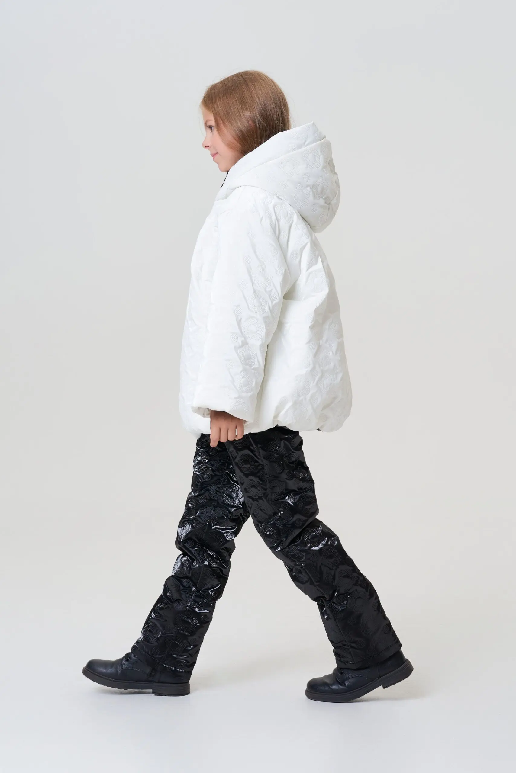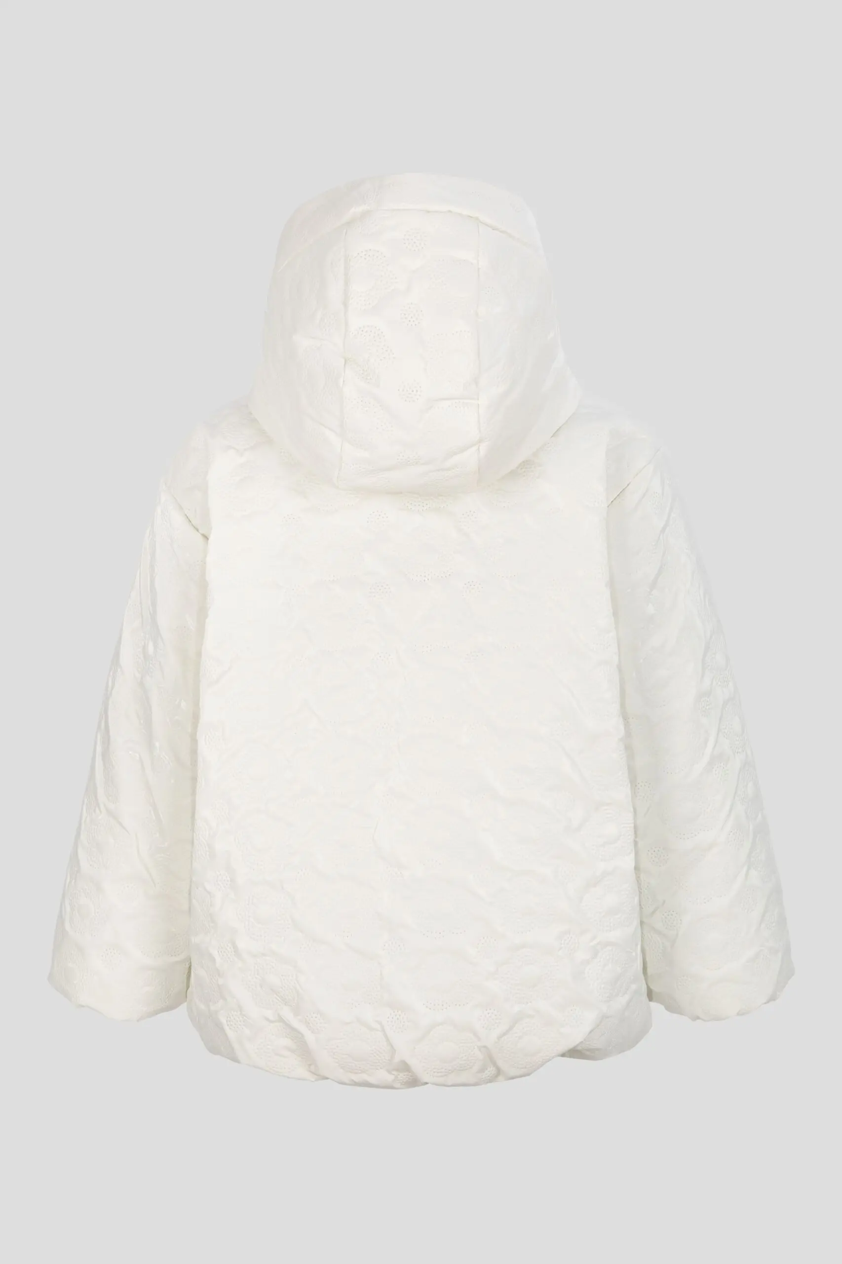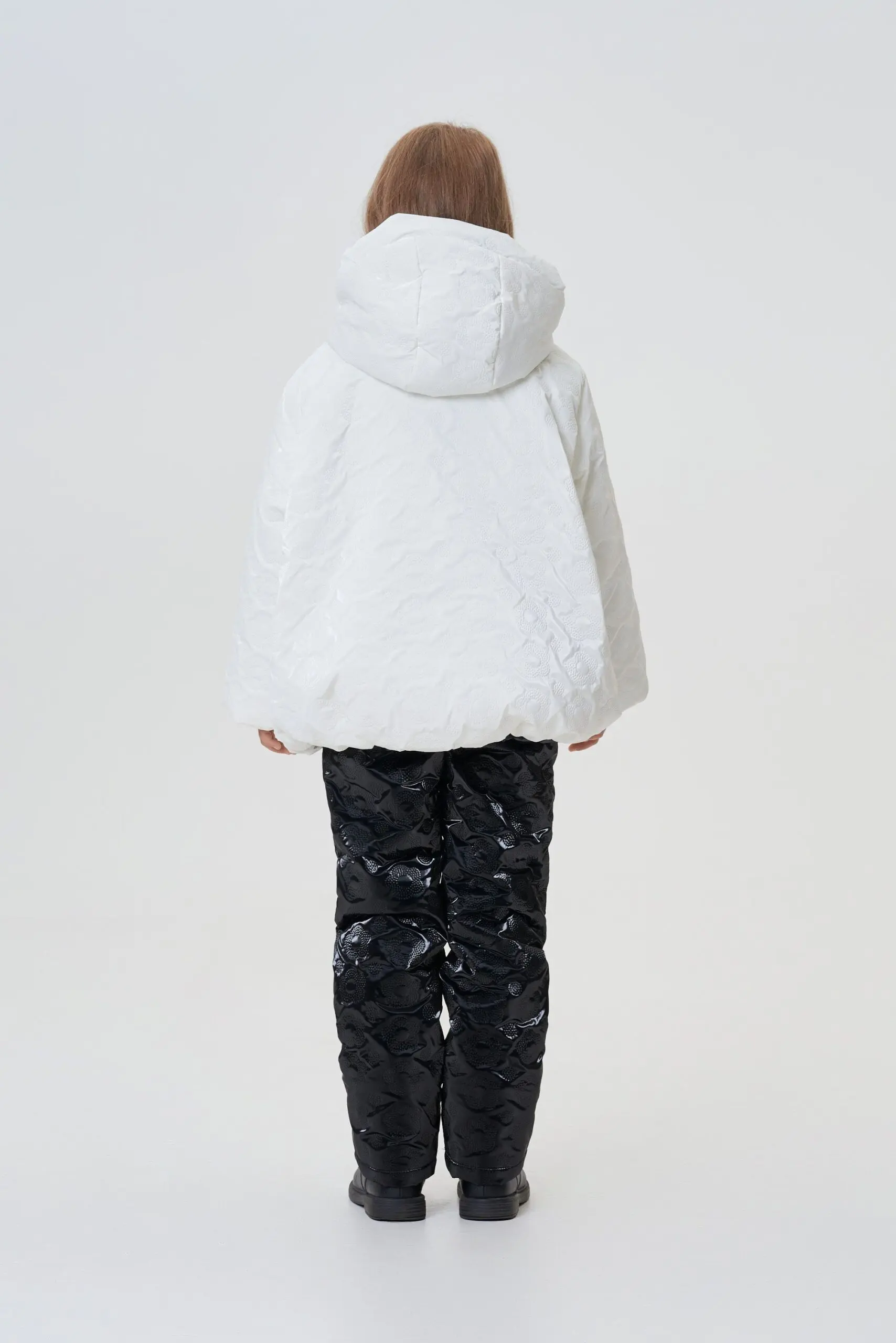 Белая утепленная куртка для девочки обладает классическим кроем и монохромным дизайном, что позволяет сочетать ее с любой одеждой.