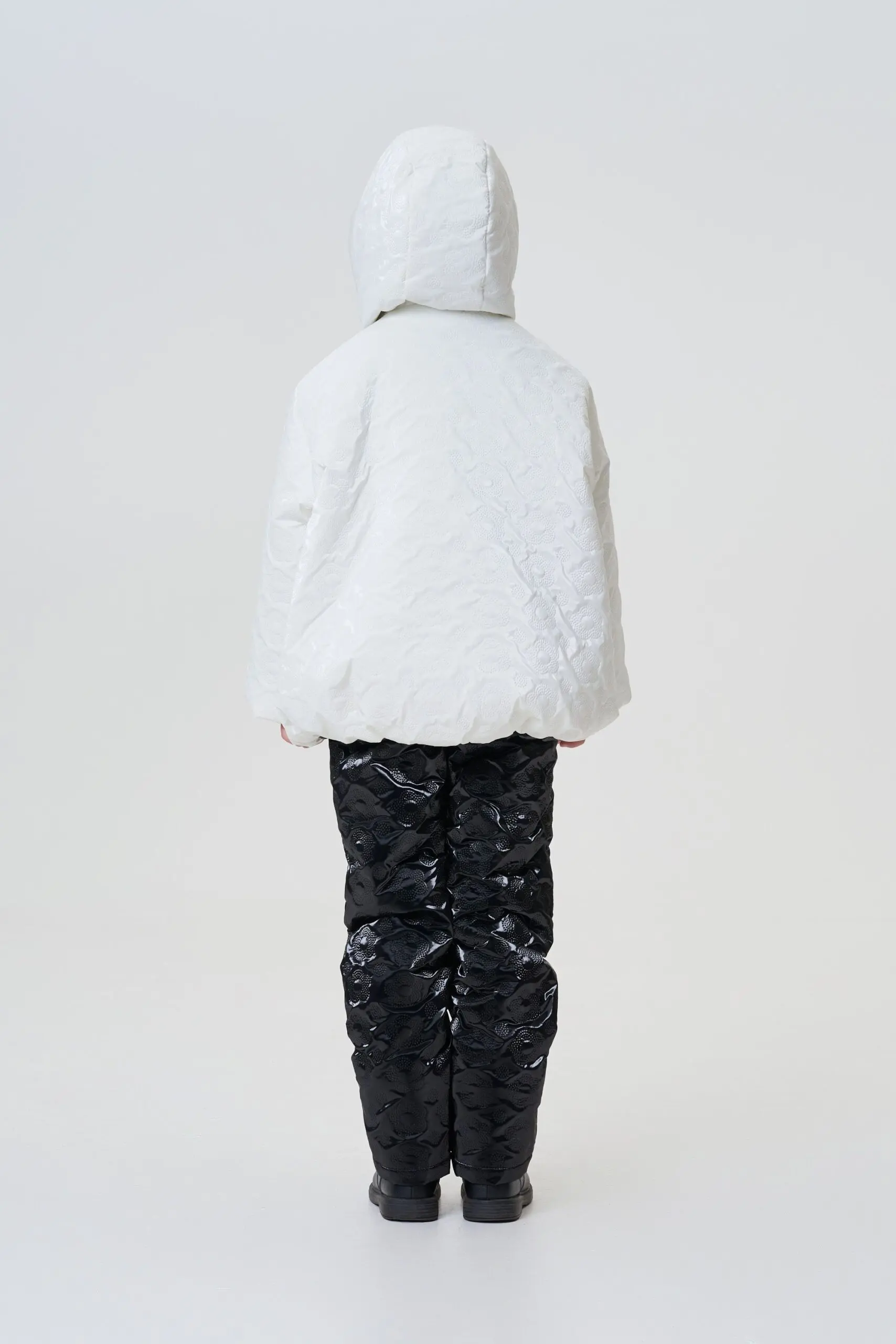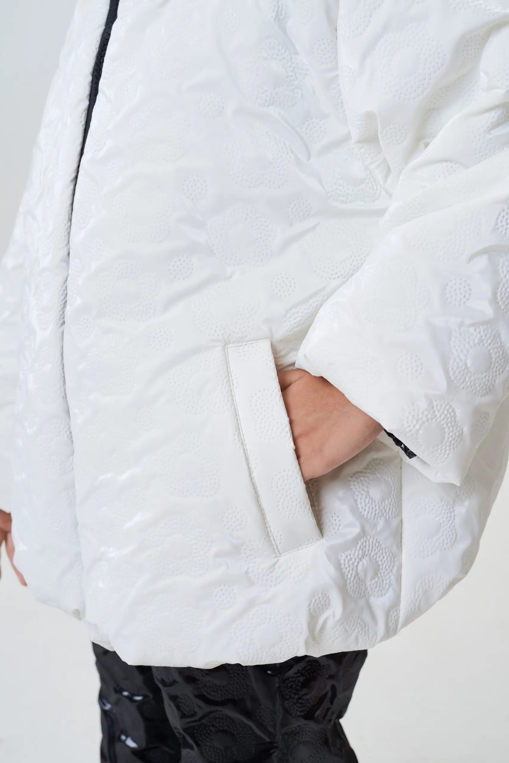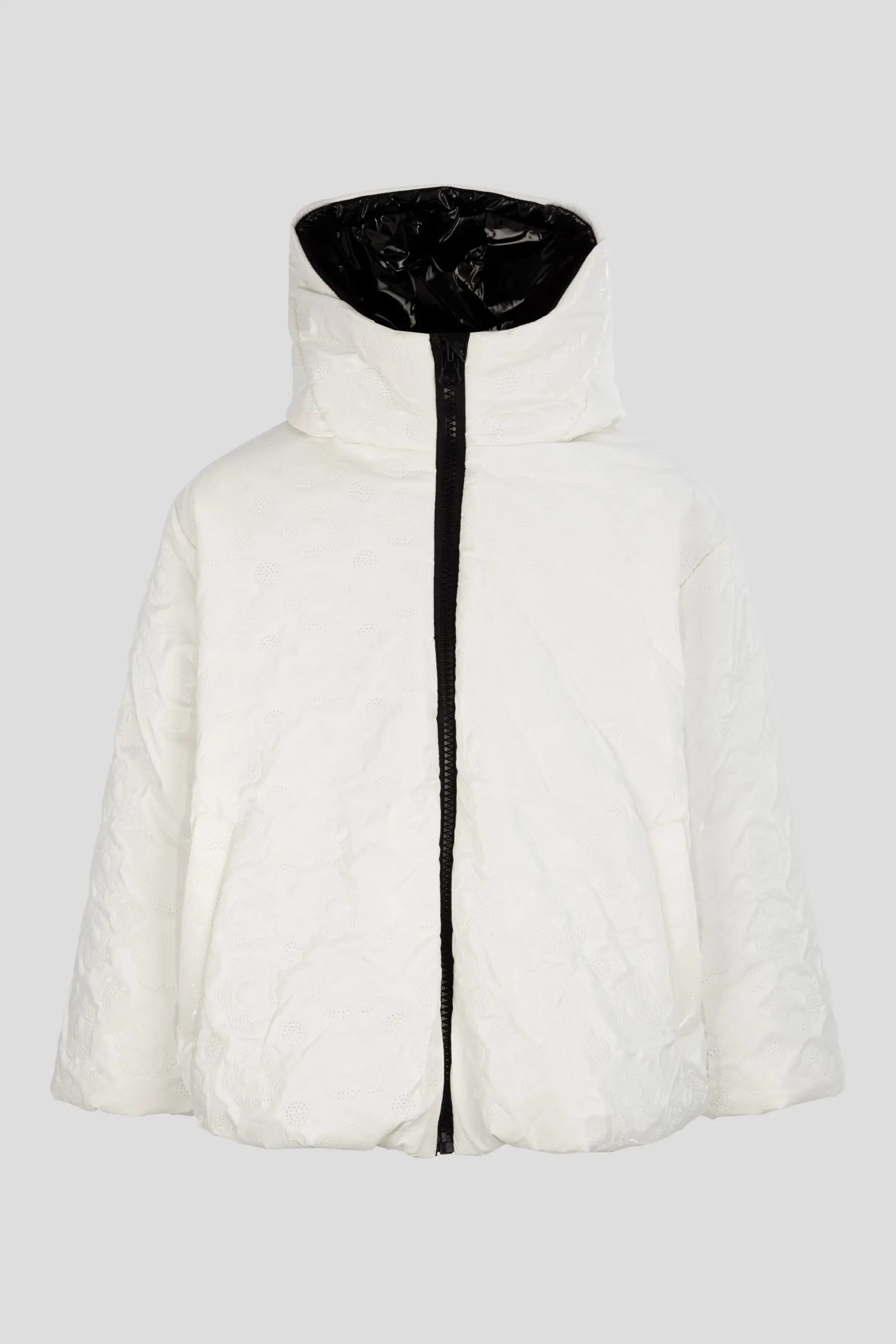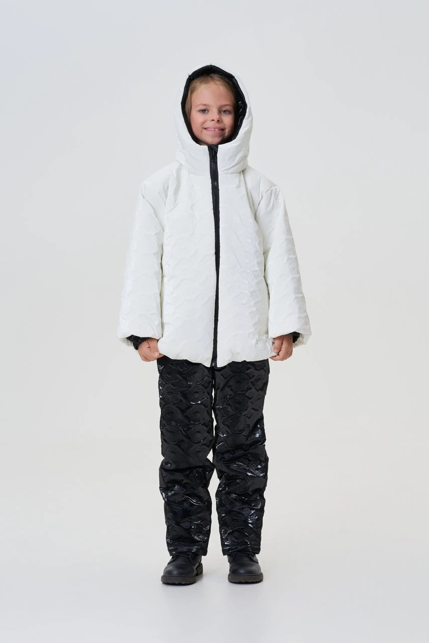 Белая утепленная куртка для девочки обладает классическим кроем и монохромным дизайном, что позволяет сочетать ее с любой одеждой.