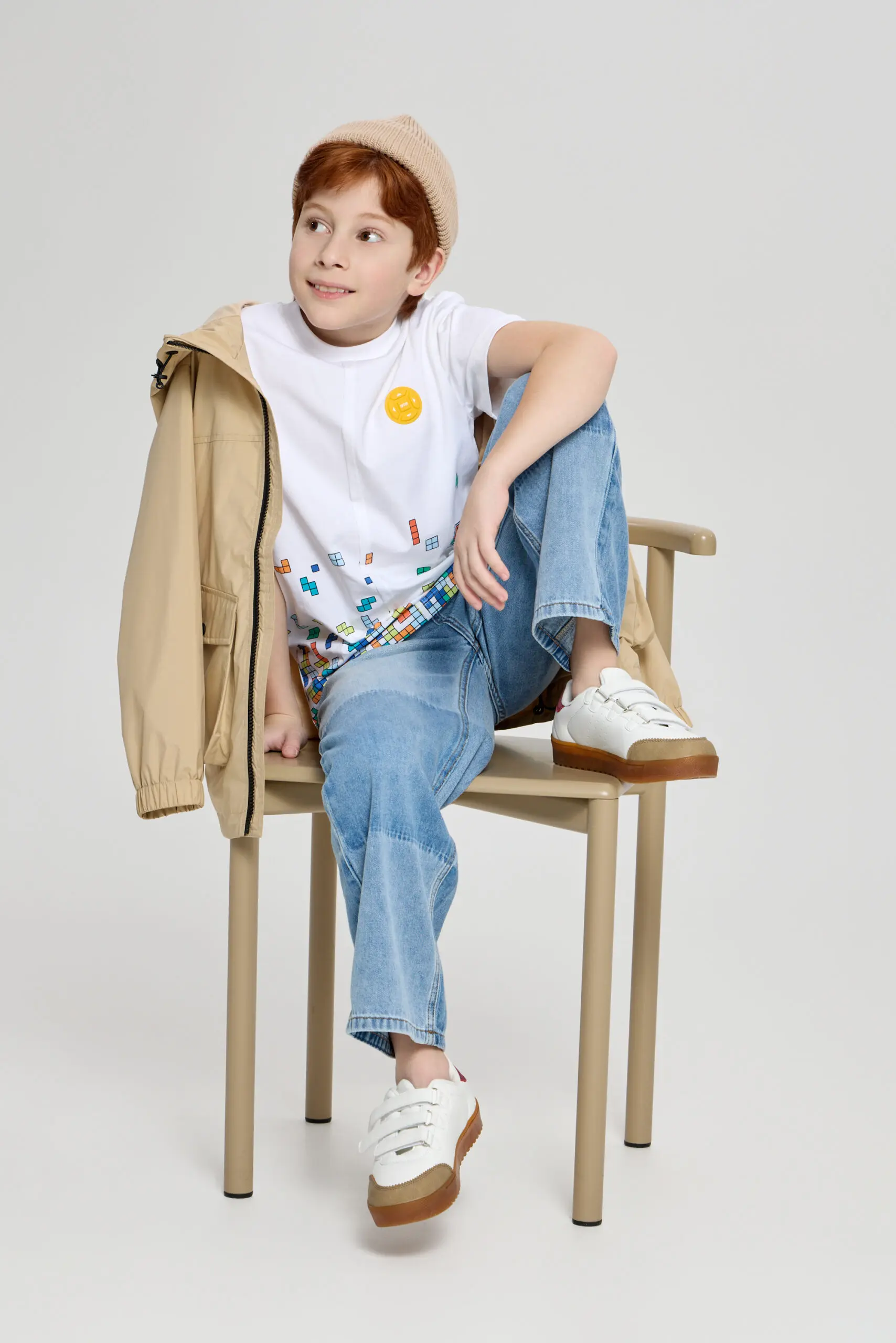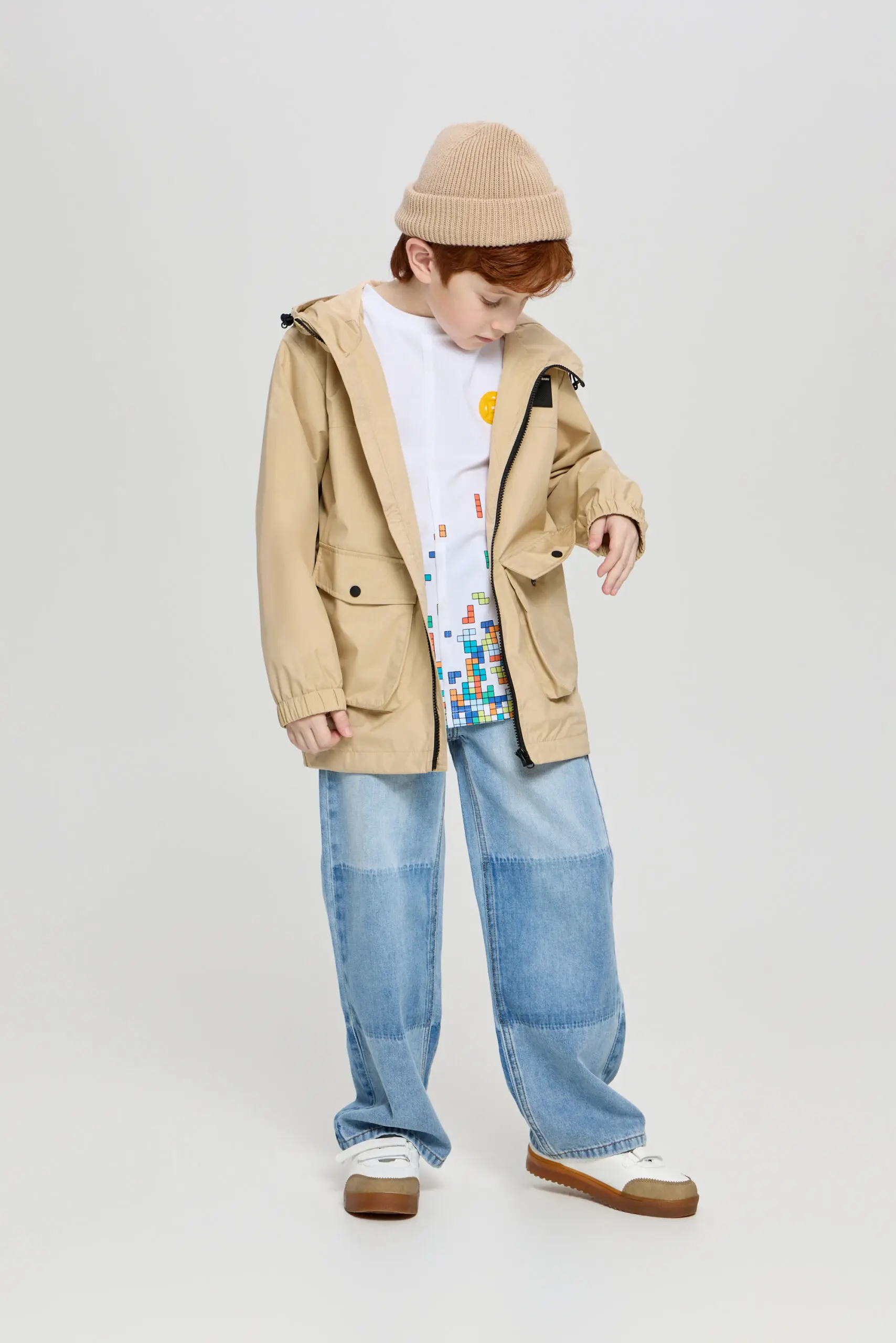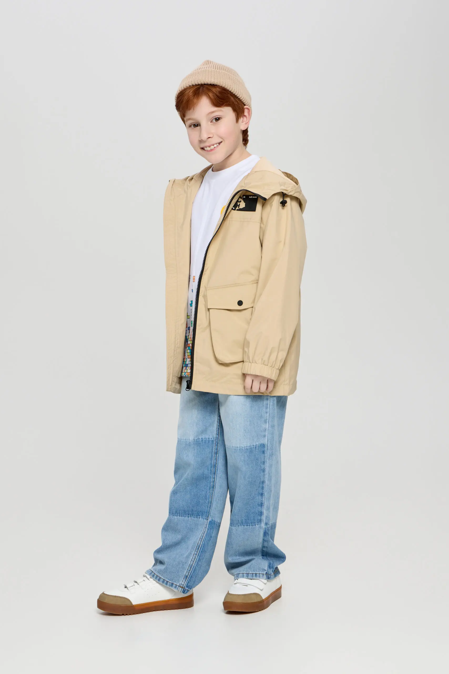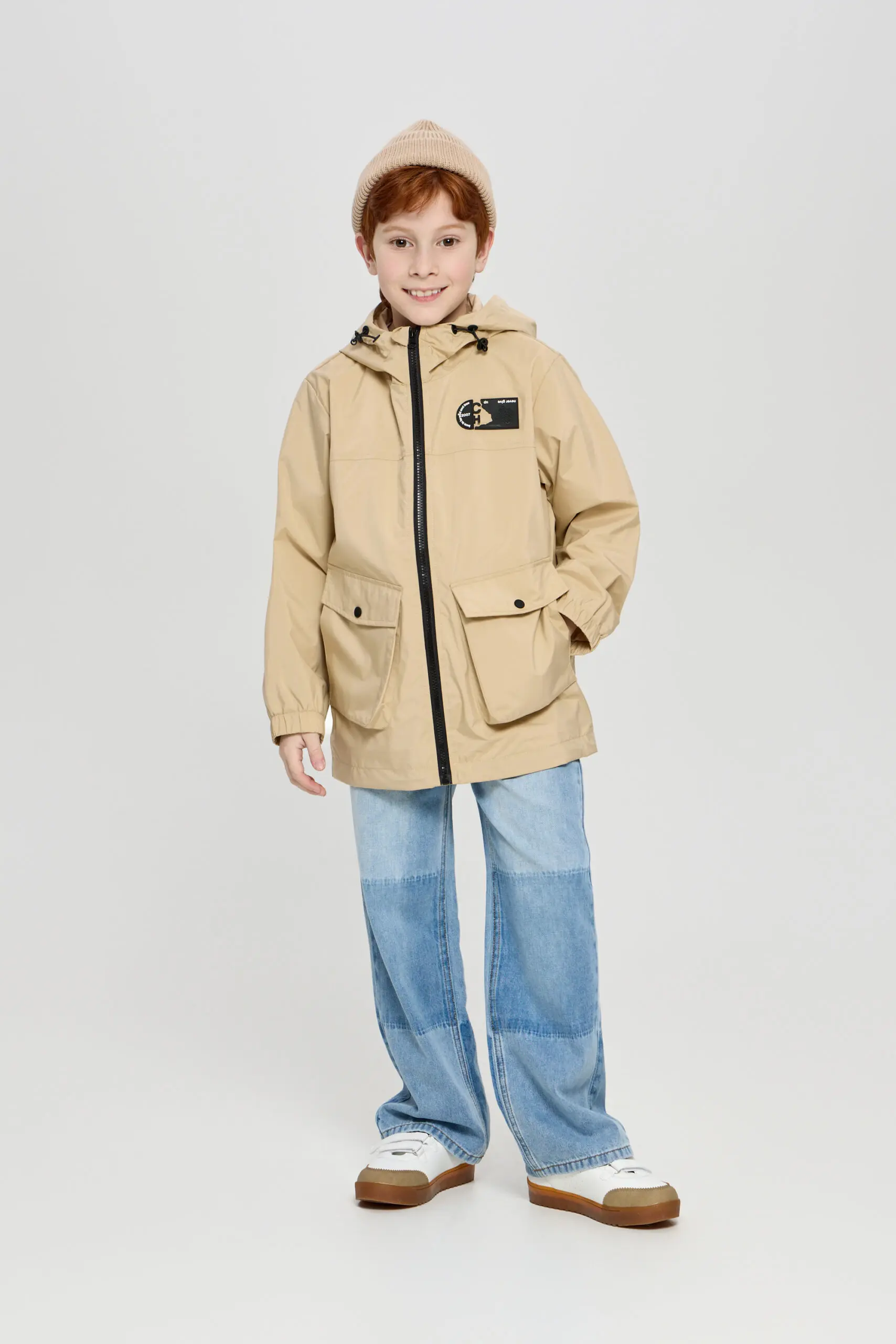 Куртка для мальчика - универсальный наряд для стильного и лаконичного образа, такая вещь позволит создавать модные уличные луки. Легкая и теплая куртка элегантного песочного оттенка идеально ... подходит к весеннему гардеробу мальчика-подростка. Отделка: дизайнерский принт, контрастная застежка и большие карманы на молнии. Объемный капюшон будет защищать ребенка от холодного ветра. Подкладка изделия выполнена из хлопка и вискозы.