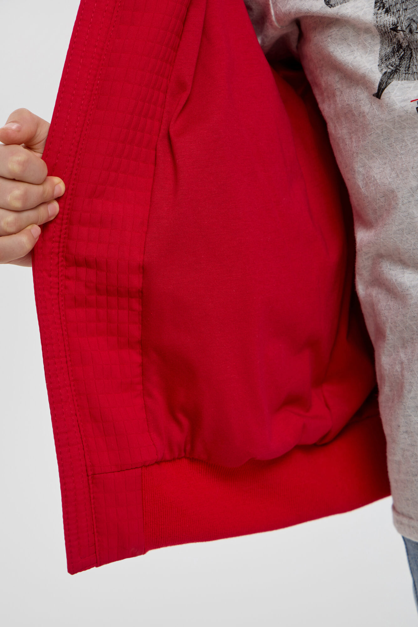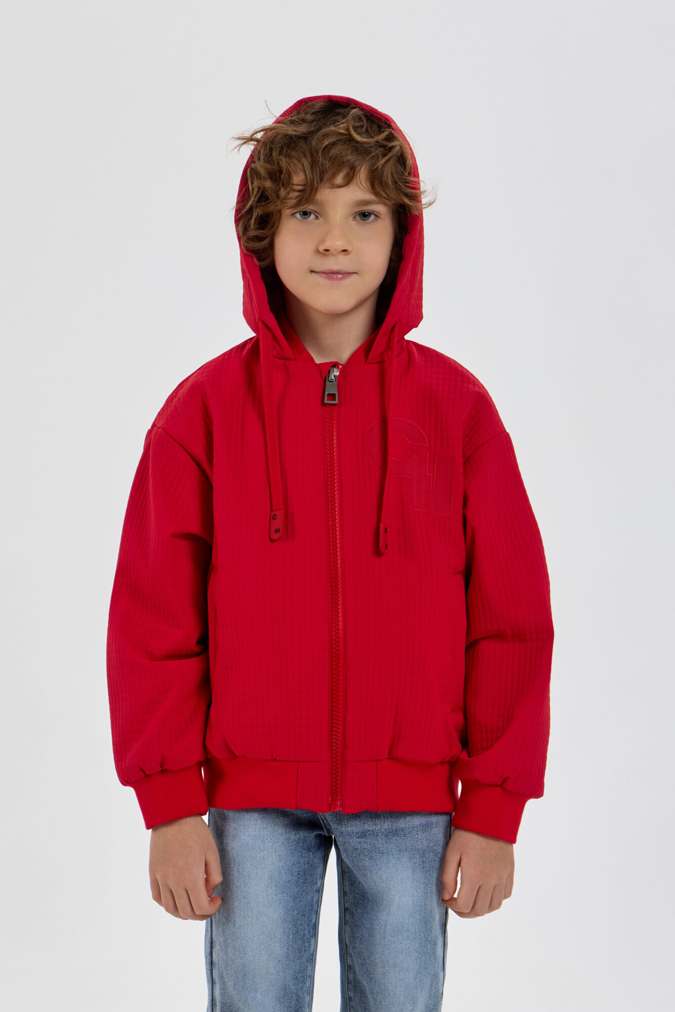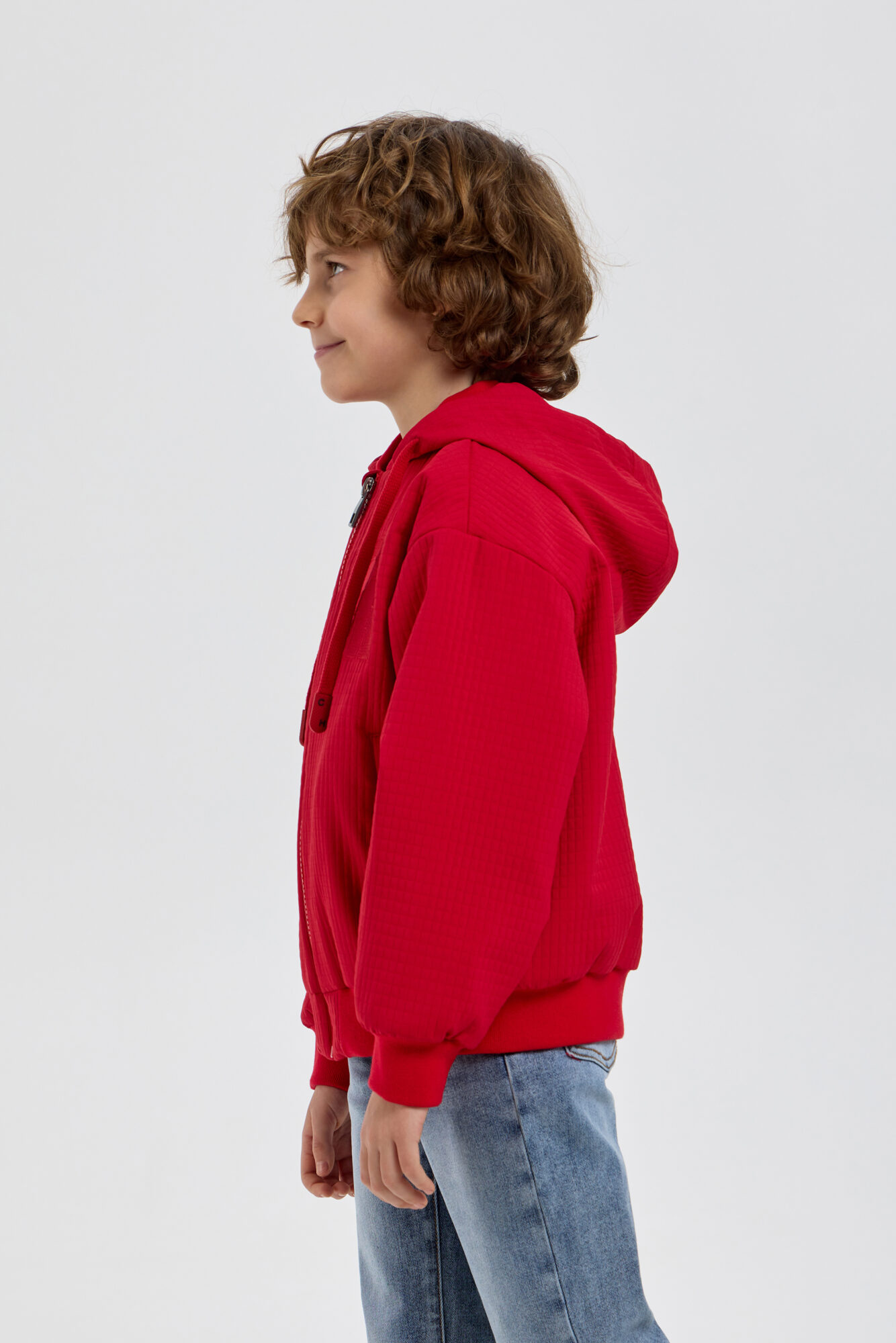 Яркая красная куртка – актуальный выбор для мальчиков вне зависимости от модных тенденций. Вариант с капюшоном станет отличным выбором для весенних дней с комфортной температурой. Капюшон регулируется ... завязками. Спереди предусмотрены два боковых кармана с прорезями. Застежка-молния снабжена специальным клапанам для защиты подбородка. Куртка имеет свободный силуэт и заниженную линию плеча. Длинные рукава заканчиваются манжетами, а по нижнему краю идет эластичная резинка, надежно защищающая от проникновения холодного ветра.
