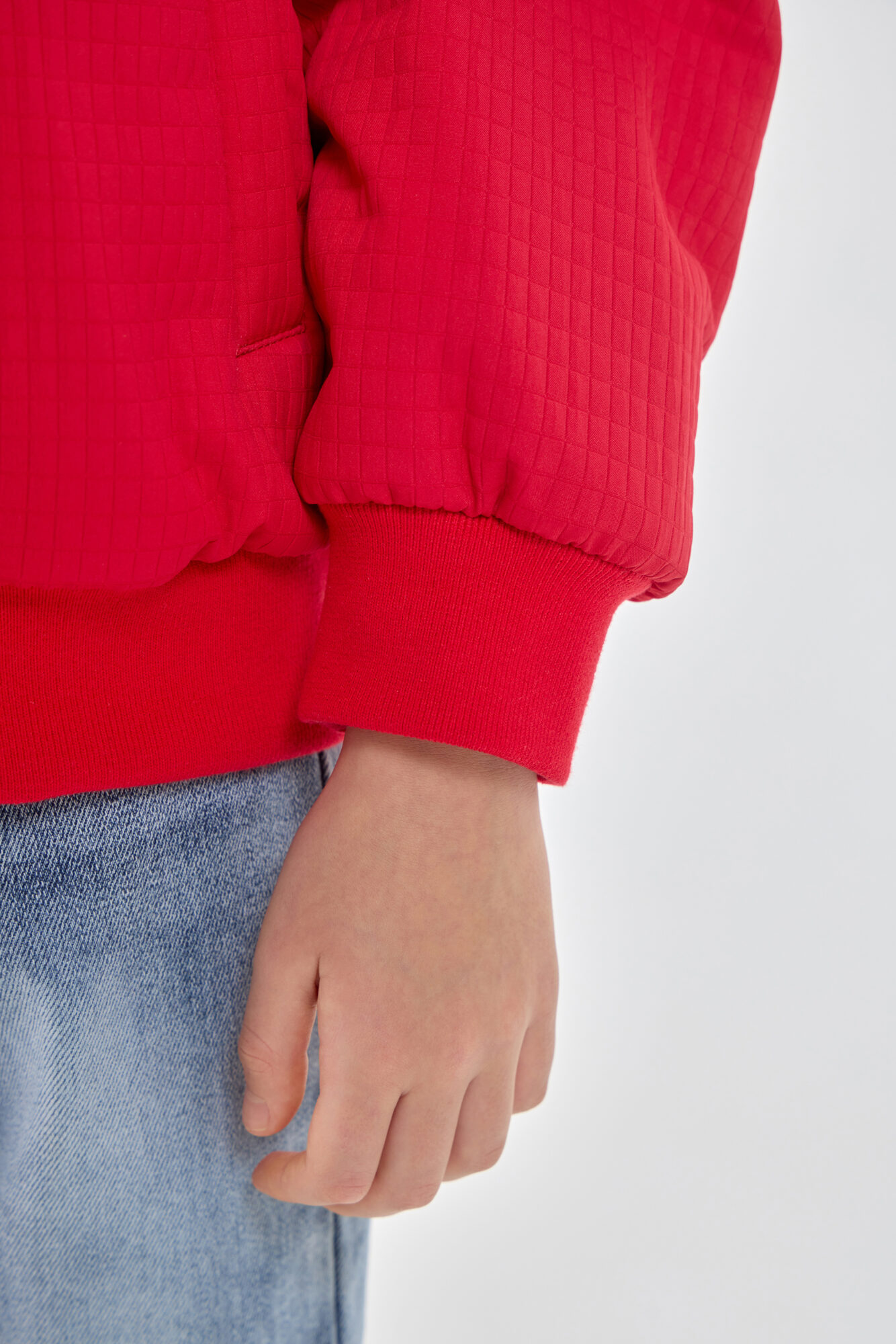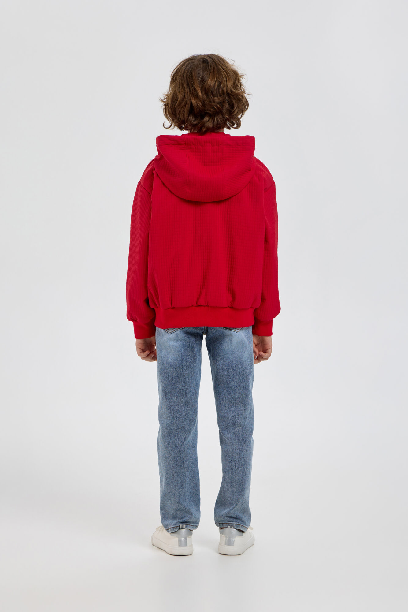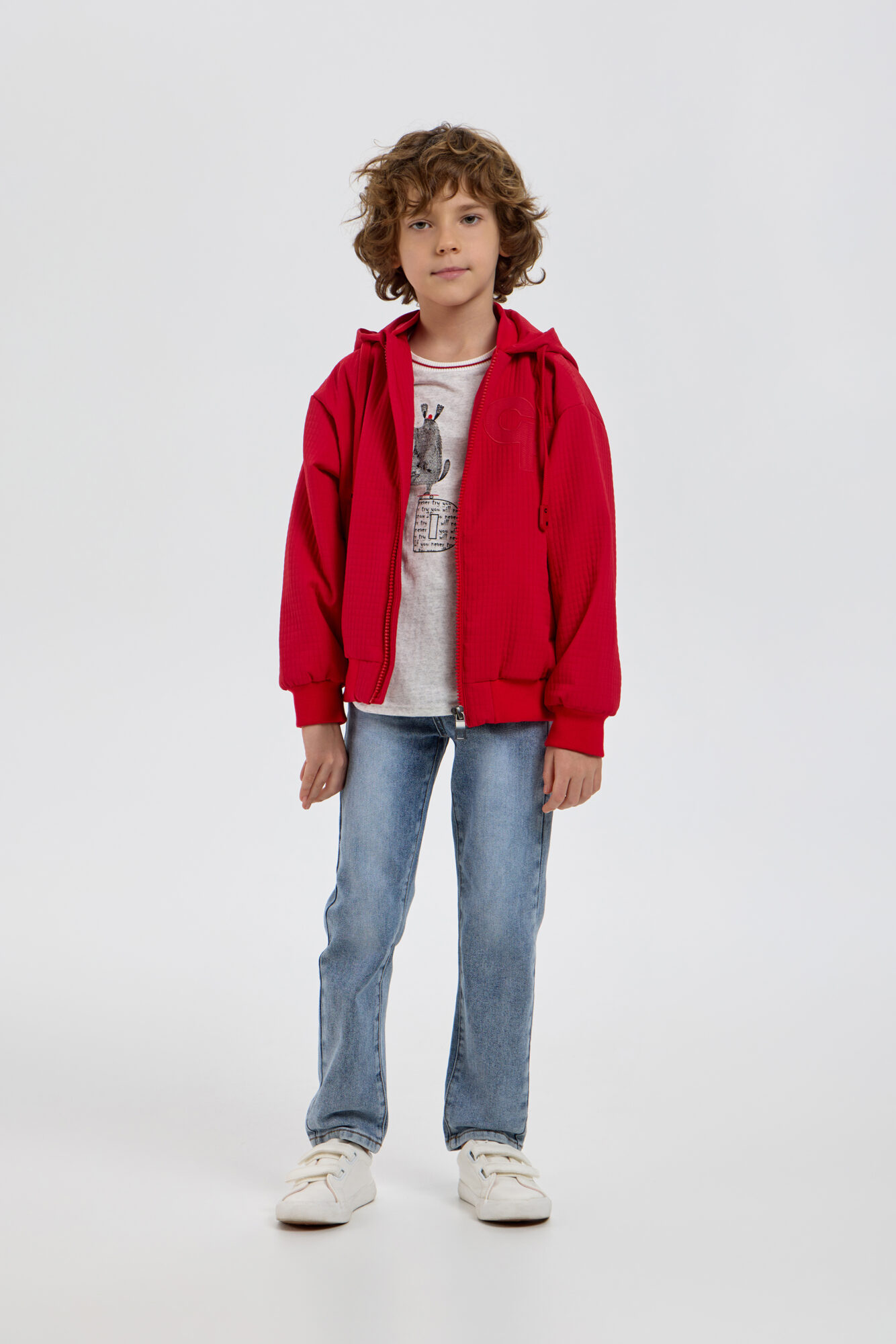 Яркая красная куртка – актуальный выбор для мальчиков вне зависимости от модных тенденций. Вариант с капюшоном станет отличным выбором для весенних дней с комфортной температурой. Капюшон регулируется ... завязками. Спереди предусмотрены два боковых кармана с прорезями. Застежка-молния снабжена специальным клапанам для защиты подбородка. Куртка имеет свободный силуэт и заниженную линию плеча. Длинные рукава заканчиваются манжетами, а по нижнему краю идет эластичная резинка, надежно защищающая от проникновения холодного ветра.