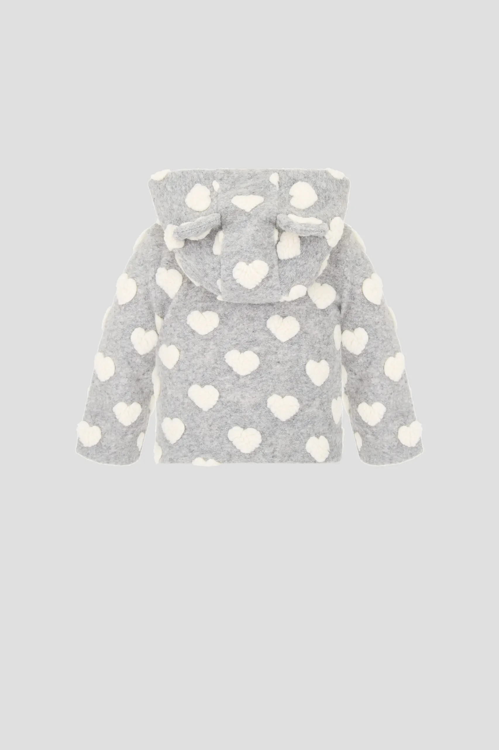 Модная куртка-бомбер из вязаного полотна серого оттенка украшена крупным рисунком в сердечко. Комфортный прямой силуэт не сковывает движения. Глубокий капюшон служит дополнительной защитой головы ребенка. Милые ... ушки на капюшоне делают образ малышки очаровательным. Подкладка из натурального хлопка не вызывает аллергию чувствительной детской кожи. Материал хорошо пропускает воздух, позволяет телу дышать и исключает перегрев. Застегивается куртка на молнию.