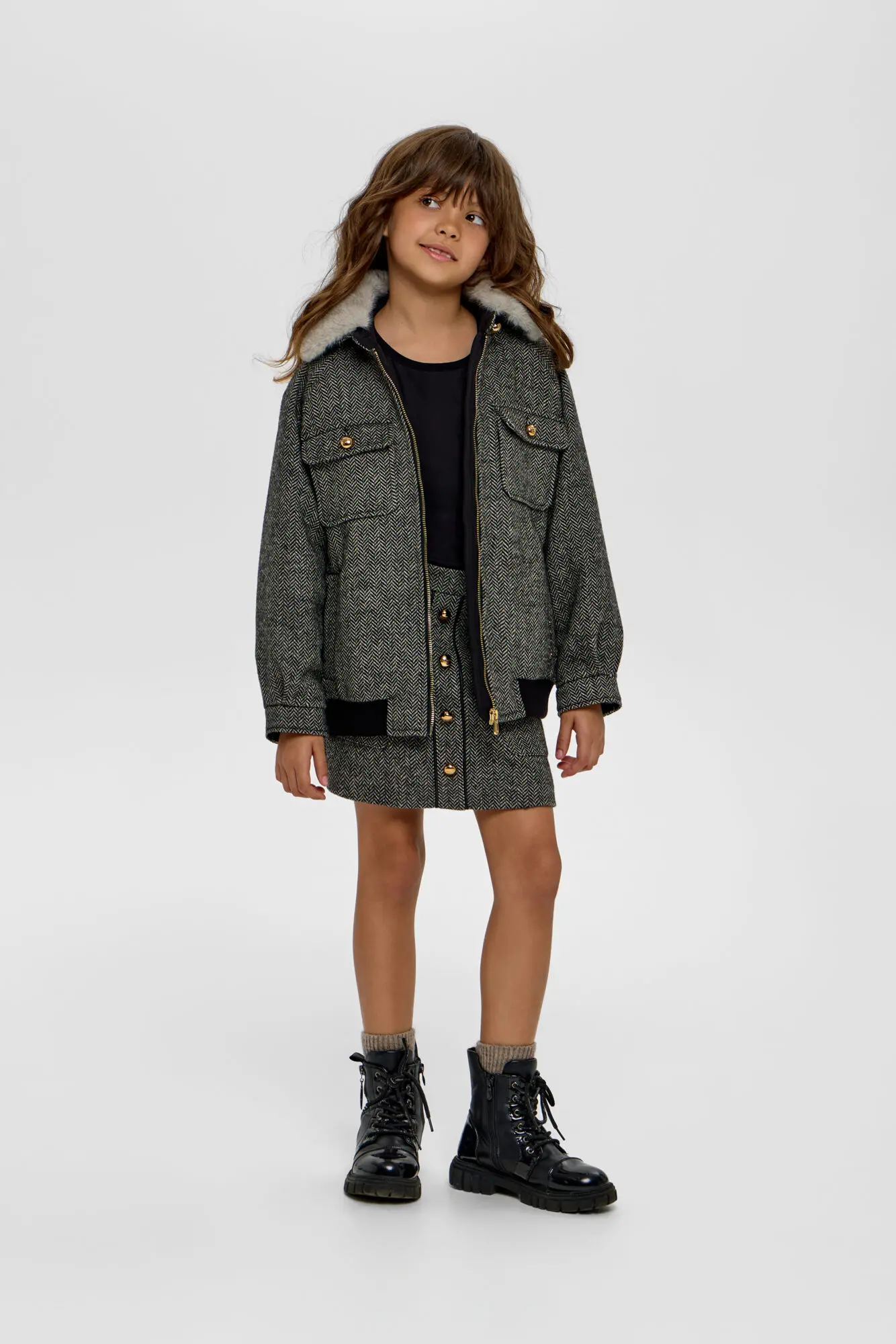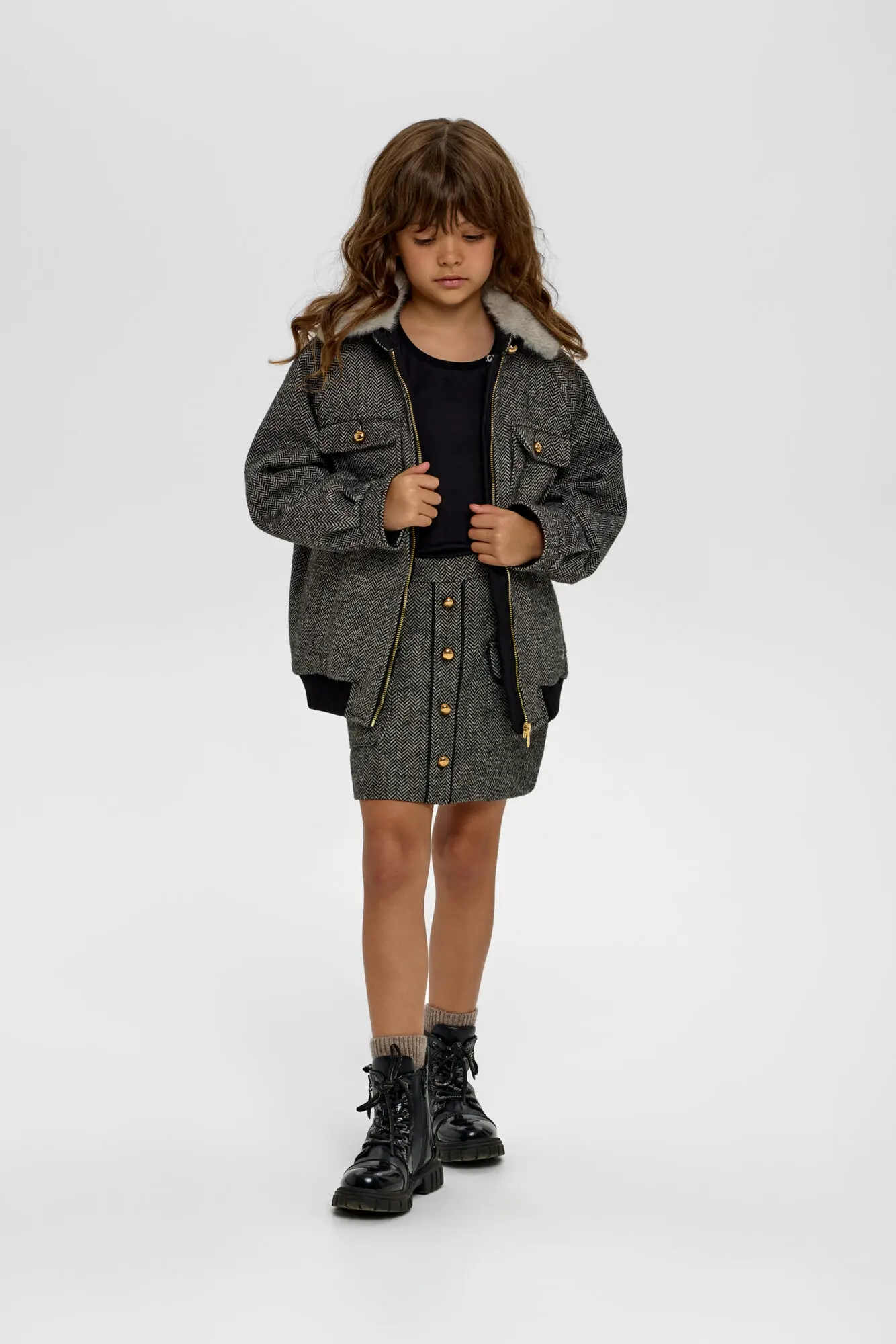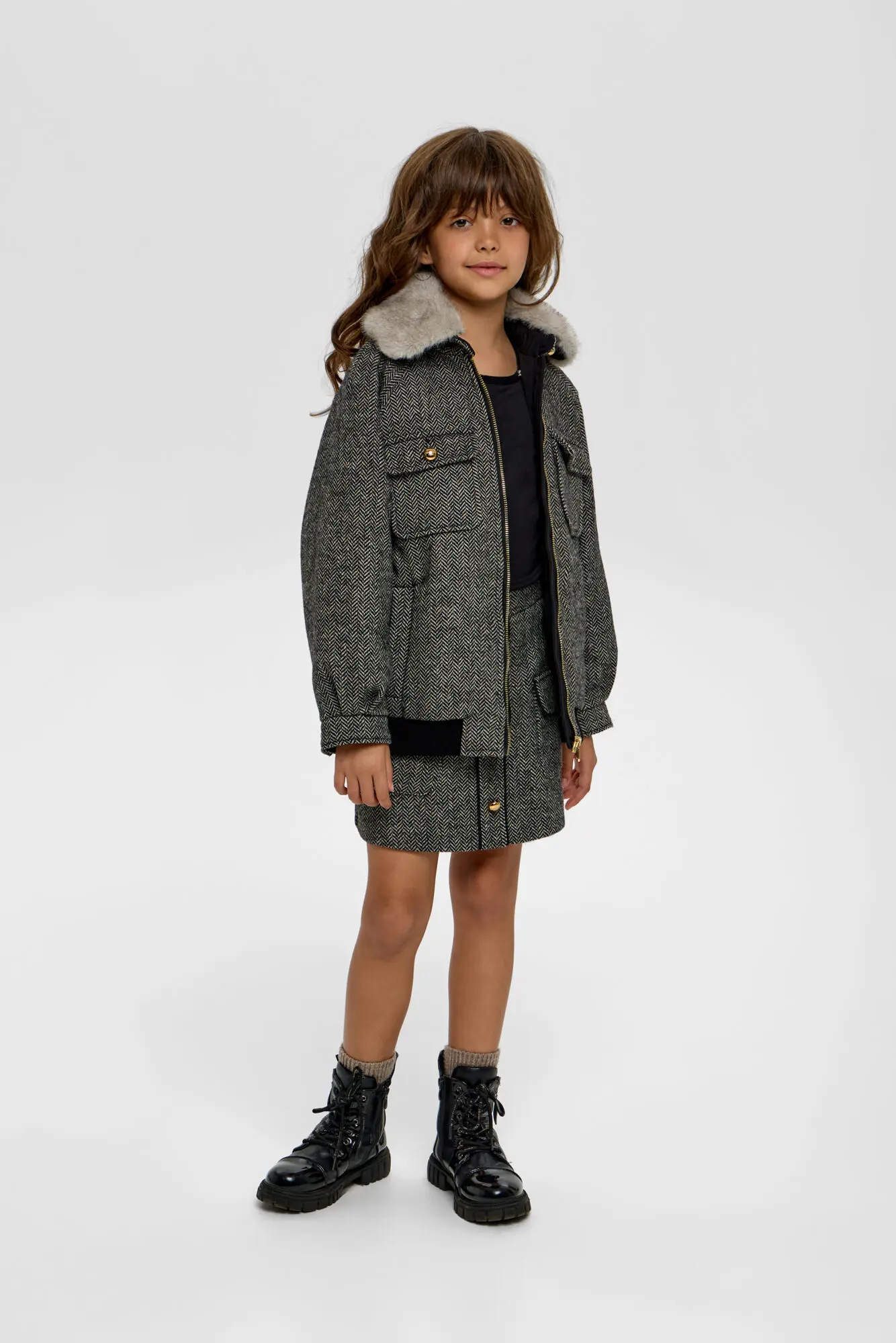 Стильная куртка-бомбер превосходно дополнит осенний гардероб юной модницы. Свободный крой и застежка-молния гарантируют комфорт при использовании. Отстегивающийся меховой воротник служит выразительной деталью, привлекающей внимание окружающих. Боковые ... и нагрудные карманы не просто функциональны, но и расширяют практичность изделия. Утеплитель из полиэстера подарит тепло в прохладные осенние дни.