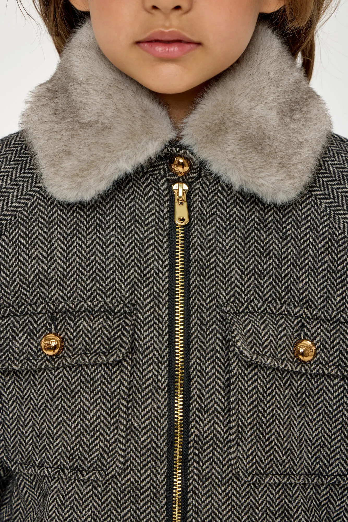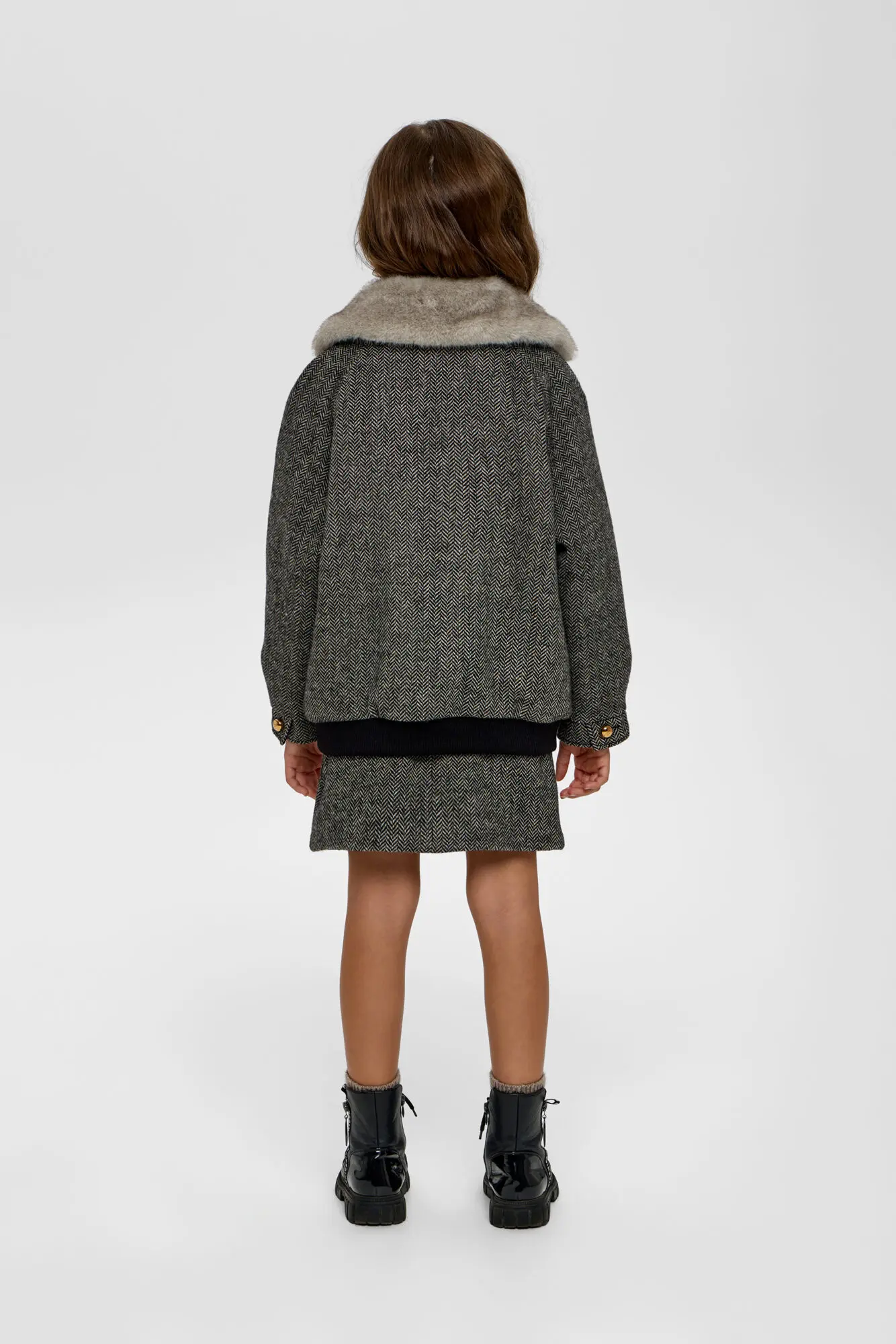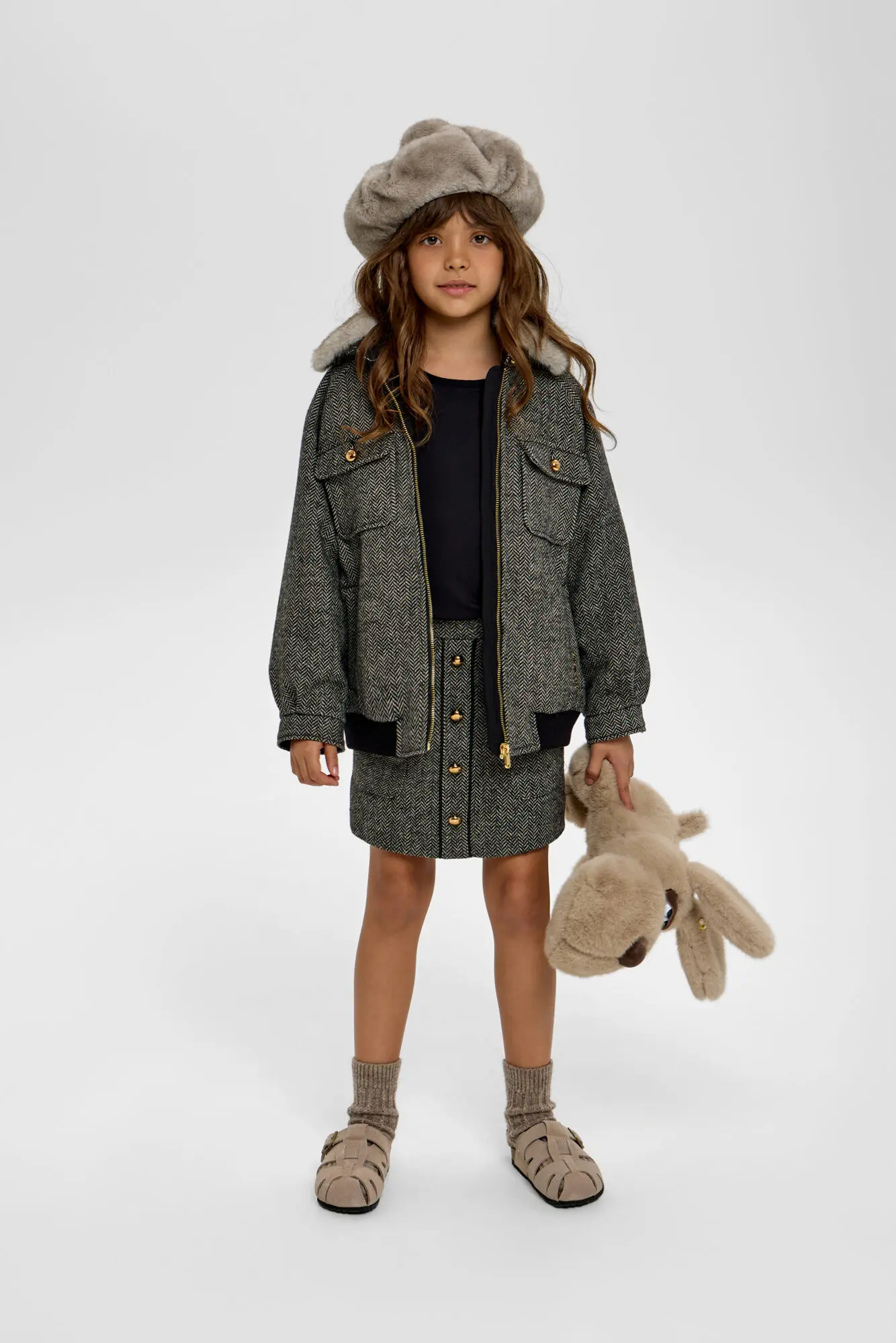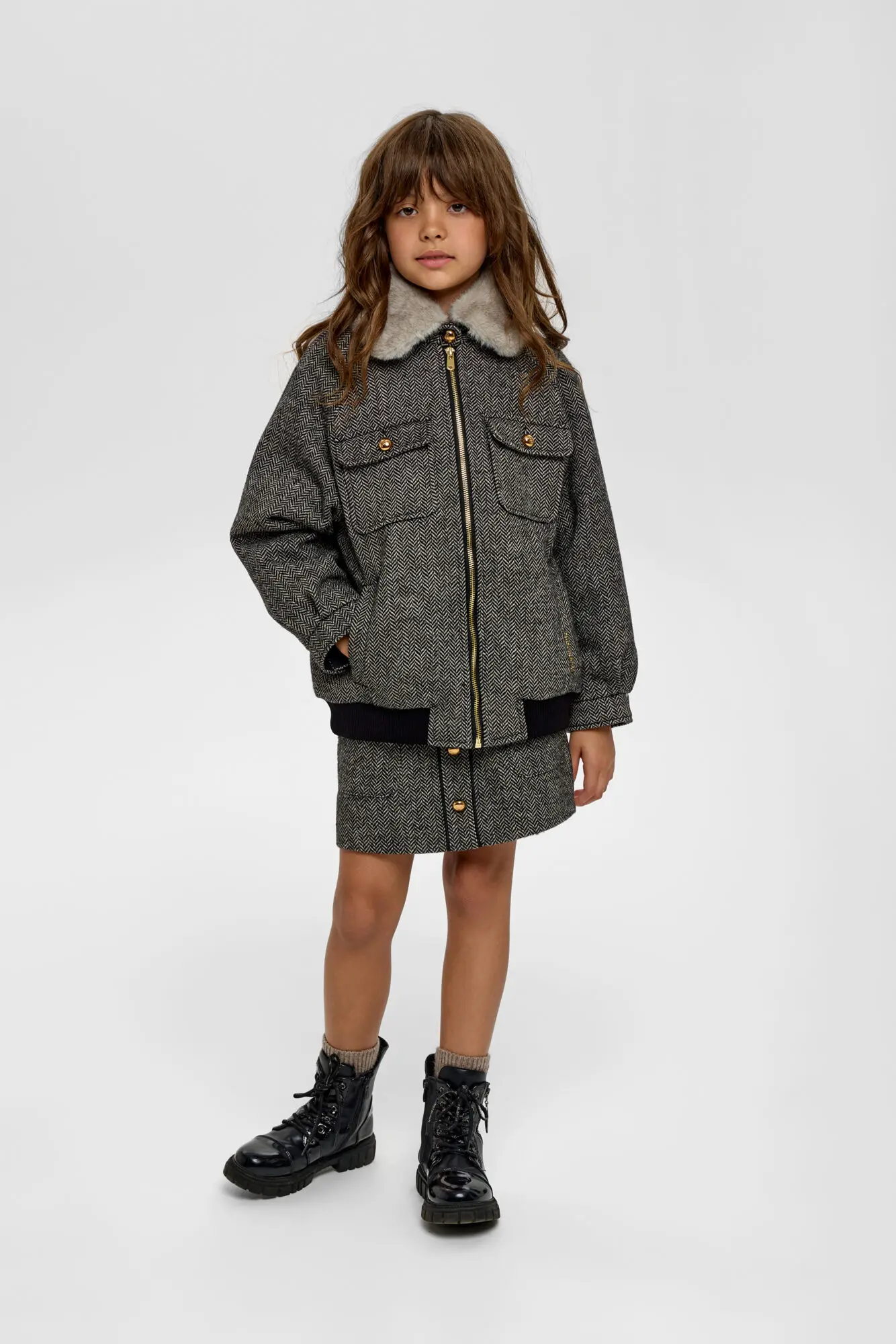 Стильная куртка-бомбер превосходно дополнит осенний гардероб юной модницы. Свободный крой и застежка-молния гарантируют комфорт при использовании. Отстегивающийся меховой воротник служит выразительной деталью, привлекающей внимание окружающих. Боковые ... и нагрудные карманы не просто функциональны, но и расширяют практичность изделия. Утеплитель из полиэстера подарит тепло в прохладные осенние дни.