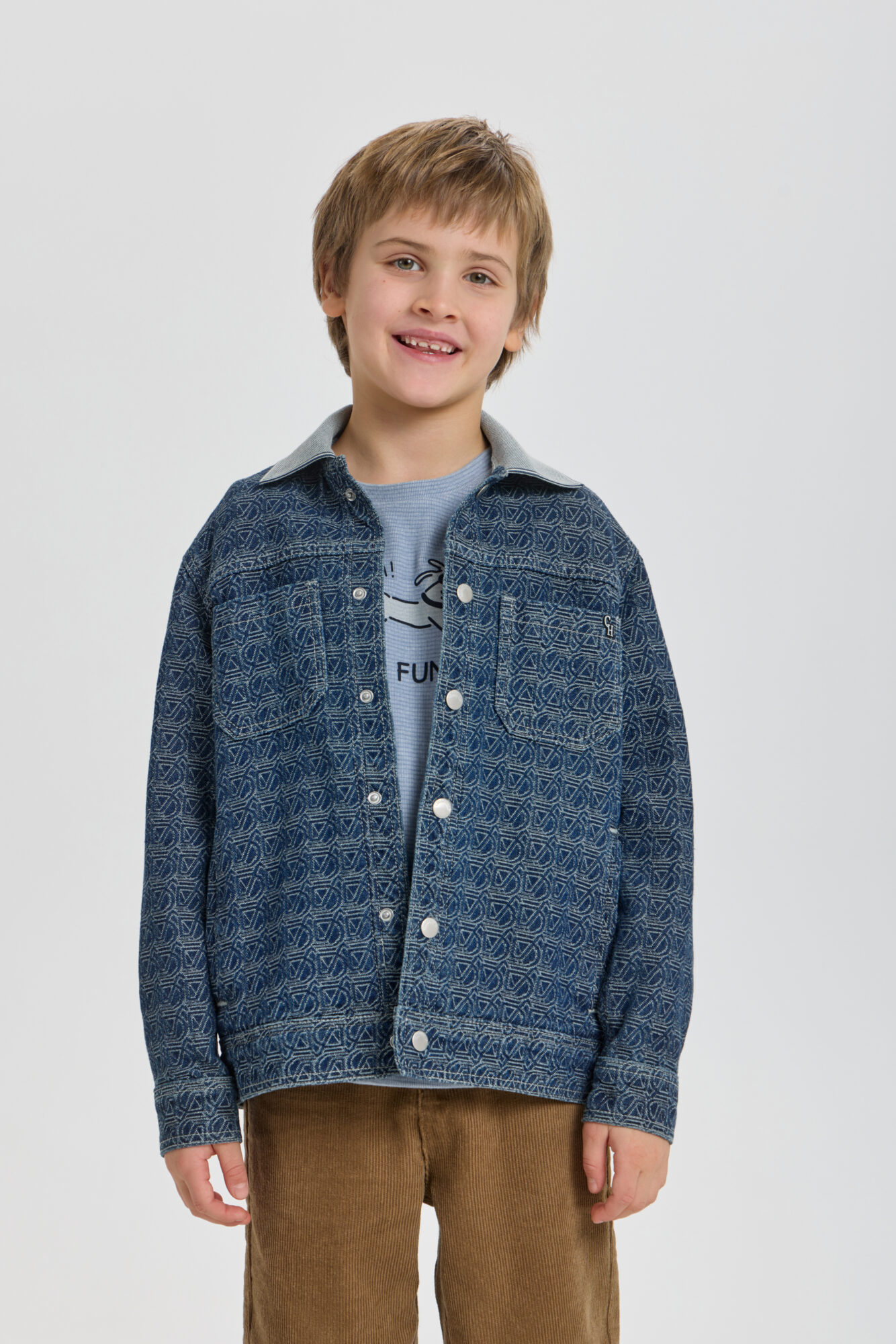 Джинсовая куртка – прекрасный вариант для стильных мальчиков. Модель свободного силуэта оверсайз изготовлена из фактурной хлопковой ткани и дополнена длинными рукавами с манжетами. Застегивается на пуговицы по всей длине, что ... очень удобно. Выразительные детали: контрастный отложной воротник, карманы на груди и по бокам. Благодаря своему внешнему виду и текстуре, эта куртка станет отличным дополнением к гардеробу любого мальчика, легко сочетаясь как со спортивной одеждой, так и с более элегантными образами.