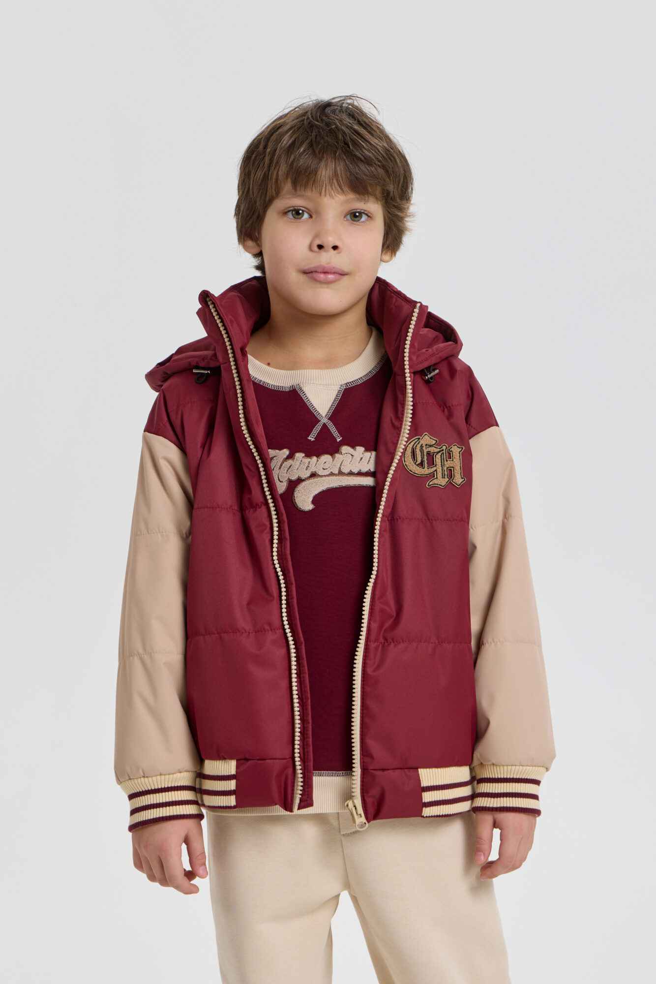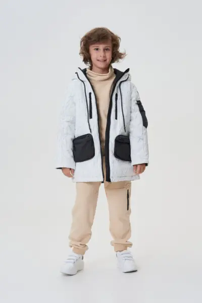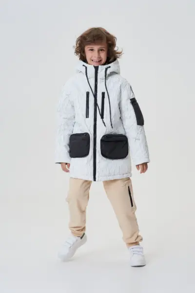 Стильная комбинированная куртка для мальчика станет отличным выбором на каждый день. Модель свободного силуэта, с глубоким капюшоном на кулиске, гармонично дополнит детский гардероб, совмещая удобство и ... модный дизайн. Удлиненные рукава с манжетами и эластичный пояс по нижнему краю изделия обеспечивают идеальную посадку. Удобная застежка на молнию делает использование куртки простым и удобным. В боковых функциональных карманах можно разместить небольшие вещи. Оригинальная аппликация добавляет изюминку и притягивает взгляды. Куртка выполнена в актуальном стиле casual и придется по вкусу юным модникам, желающим выглядеть стильно.